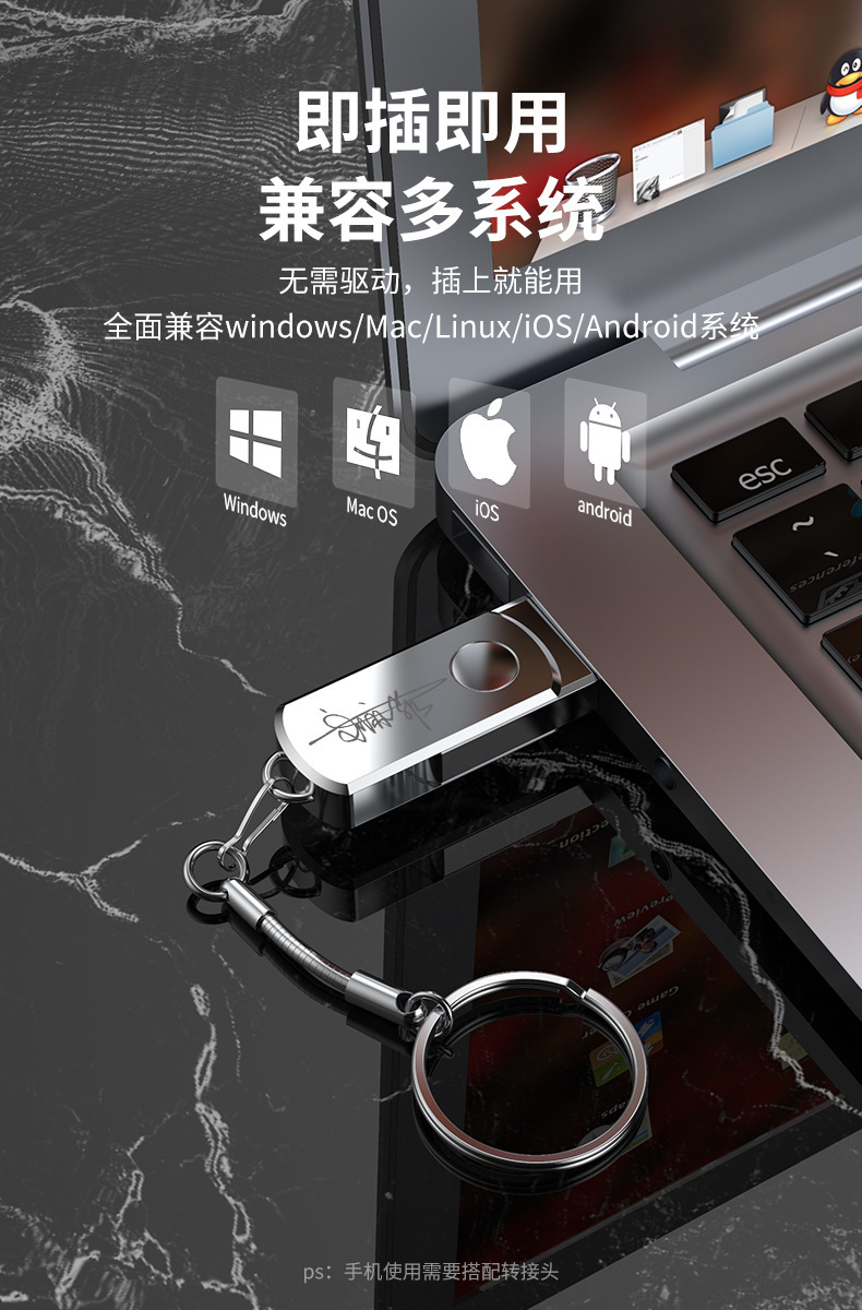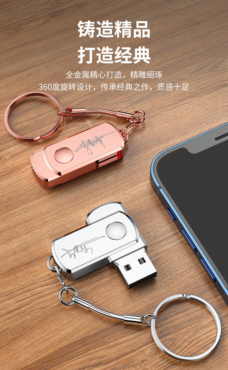 旋转免费刻字u盘批发32g车载高数256大容量金属商务礼品u盘定优盘