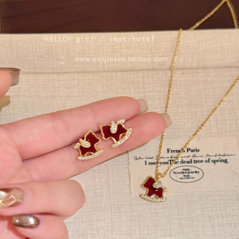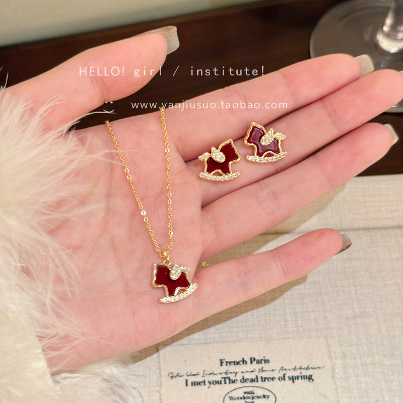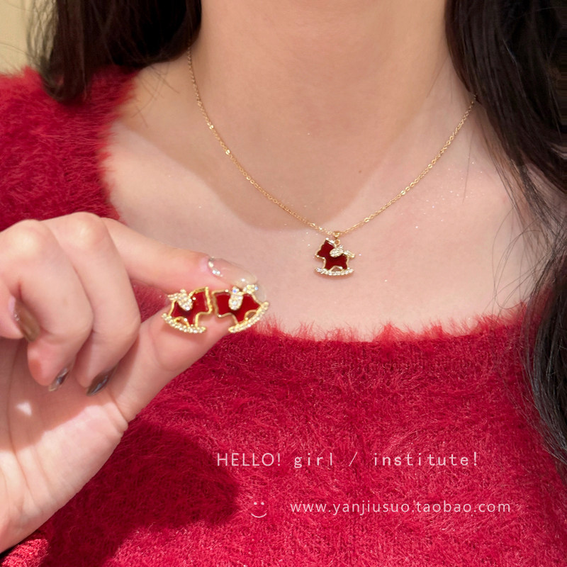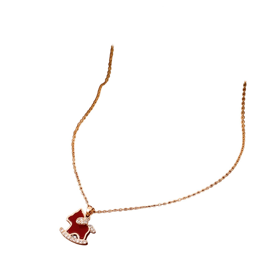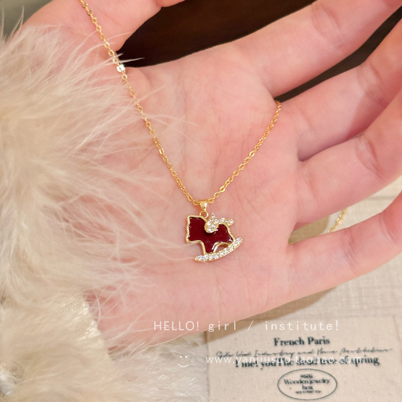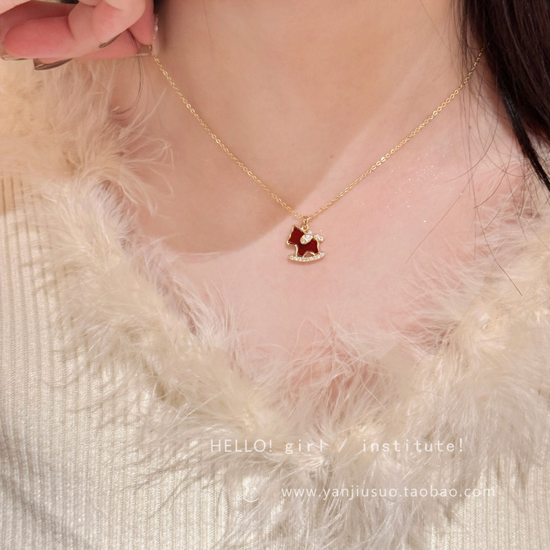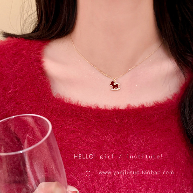 2026年新款港风复古酒红色小马吊坠项链女秋冬款简约气质锁骨链