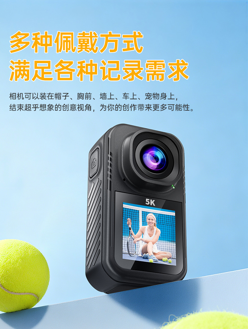 跨境高清5K运动拇指相机磁吸挂脖防抖户外徒步vlog运动相机记录仪