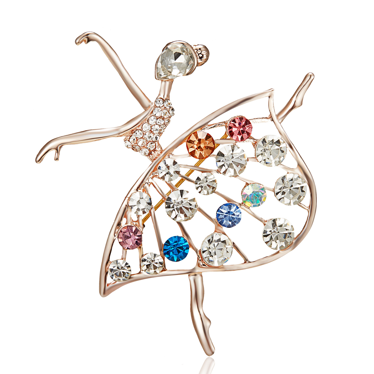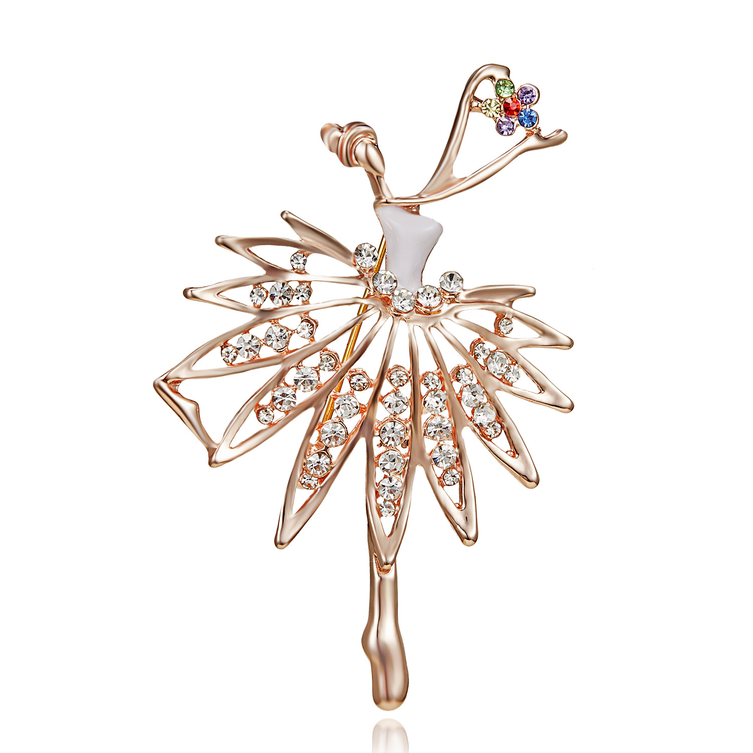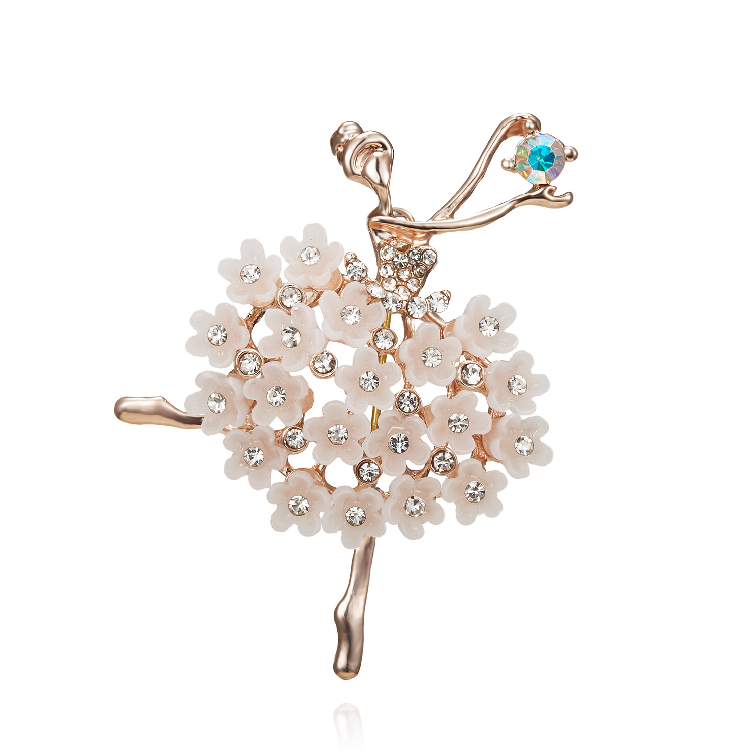 欧美跨境时尚人物胸针创意跳舞女孩珍珠水钻画油胸针百搭配饰批发
