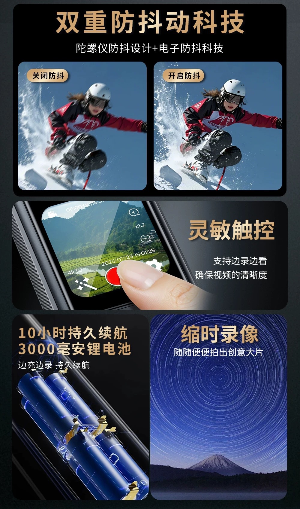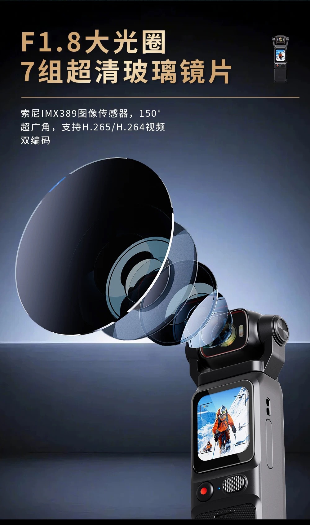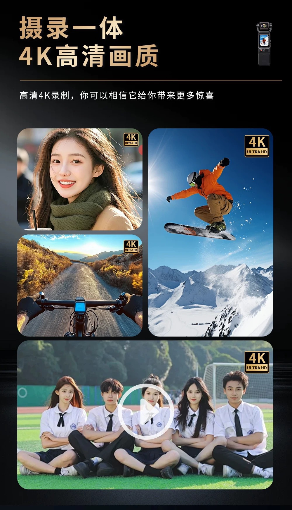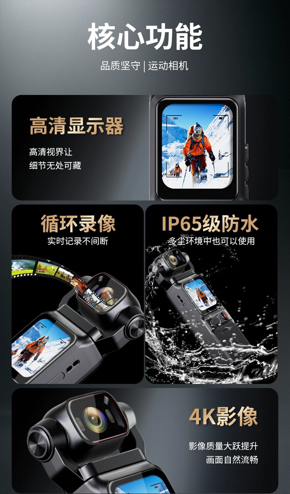 L18真4K真防抖口袋记录仪运动相机户外摄像机手持高清运动摄像