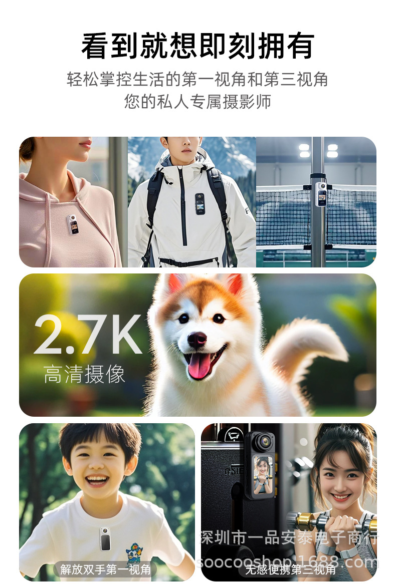 跨境新款2K户外运动相机骑行登山记录仪拇指相机高清摄像机wifi