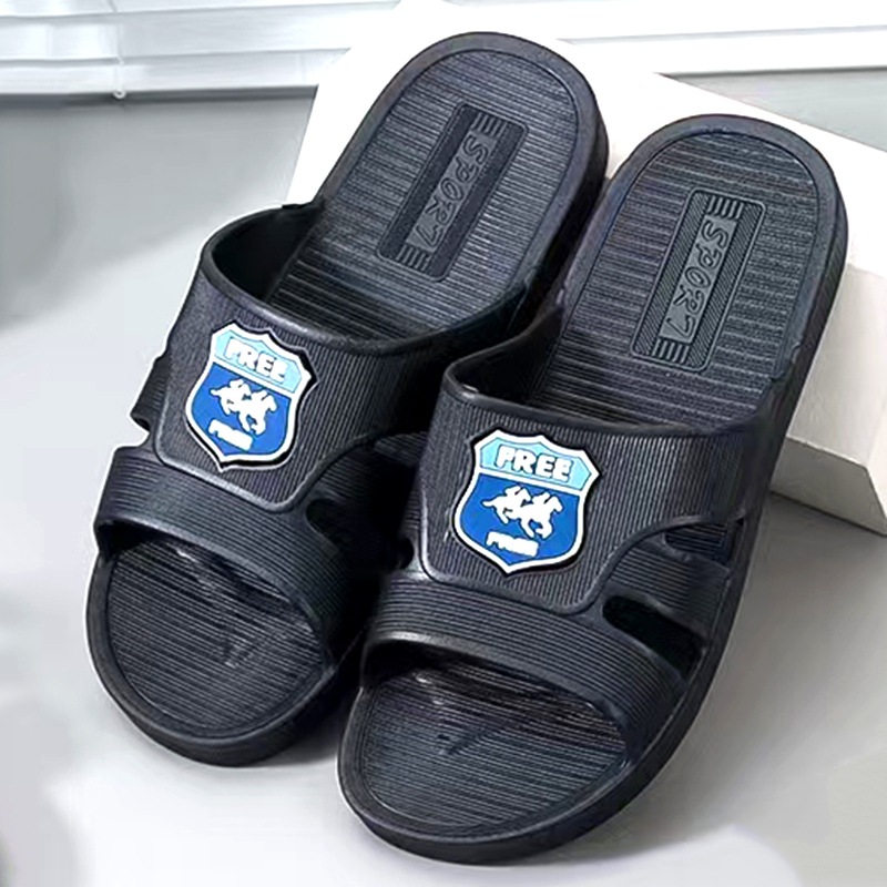 四季舒适PVC塑料鞋马标图案居家户外沙滩凉拖鞋透气休闲一字拖男