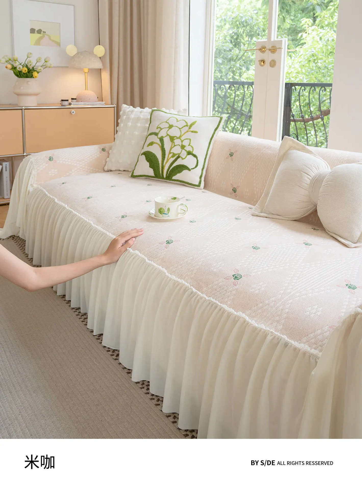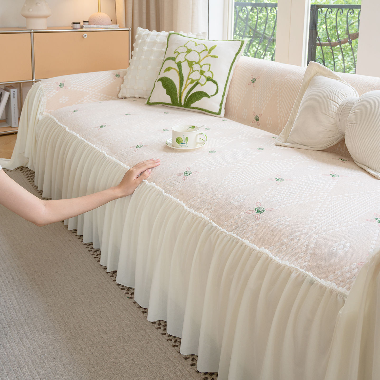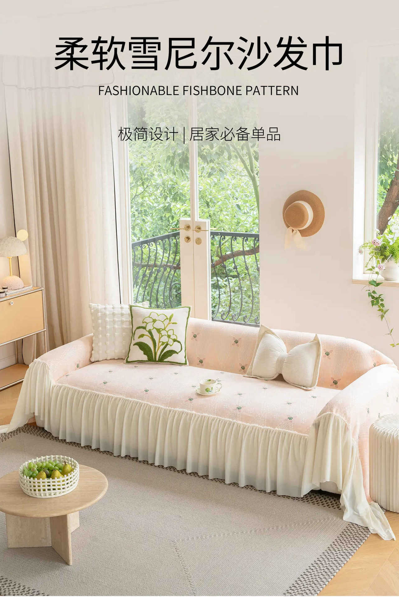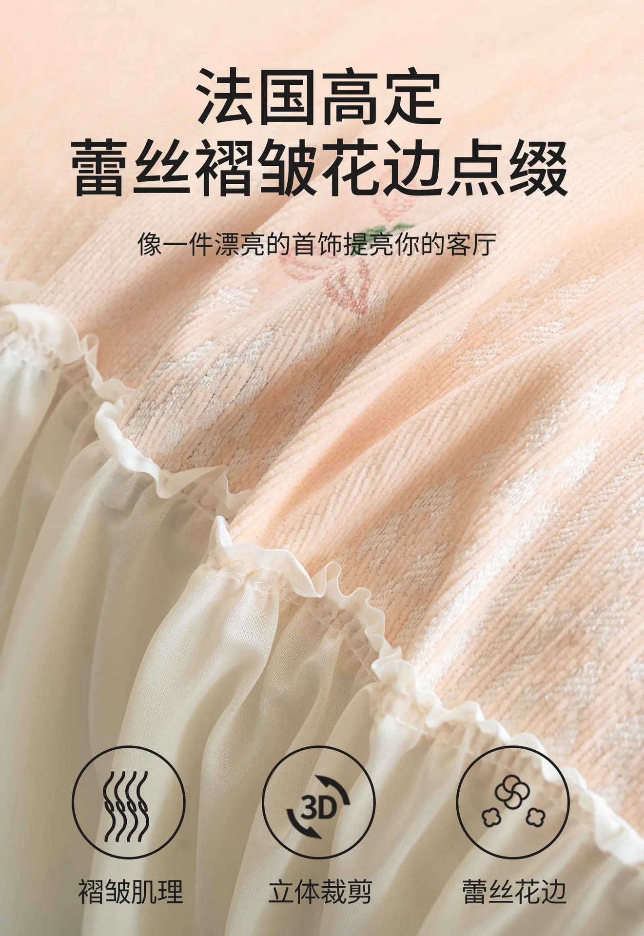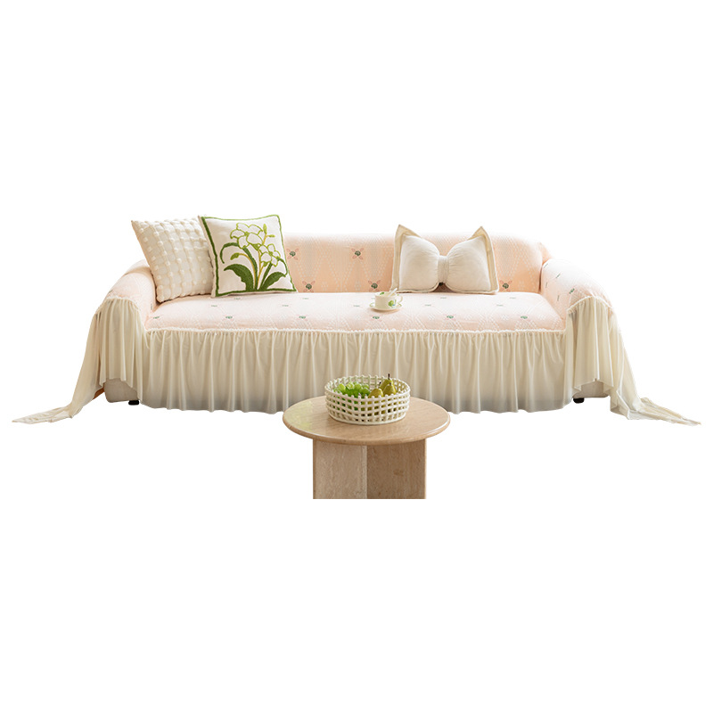 雪尼尔奶油风沙发巾蕾丝裙边2025新款防滑盖布懒人一片式沙发套罩