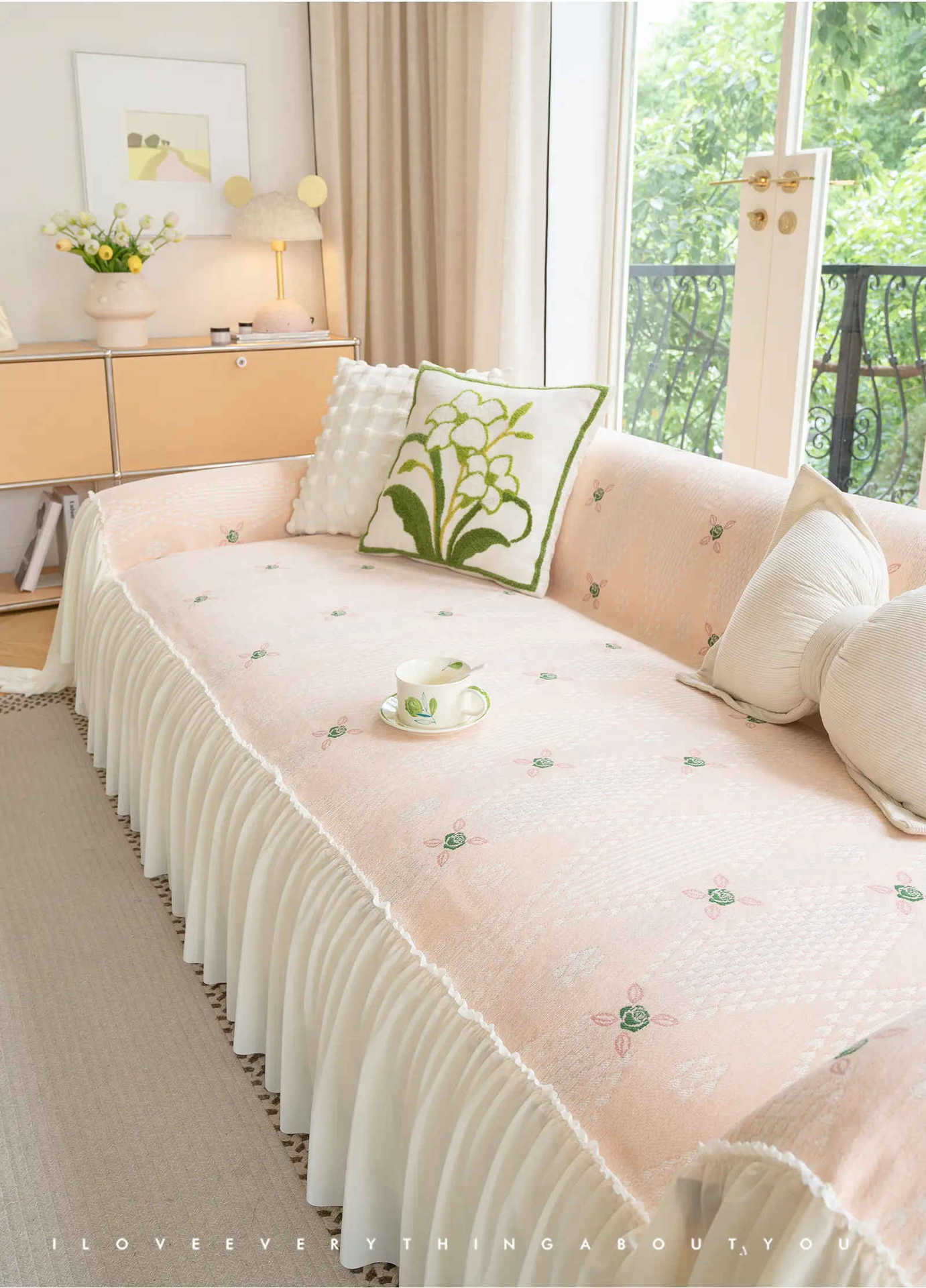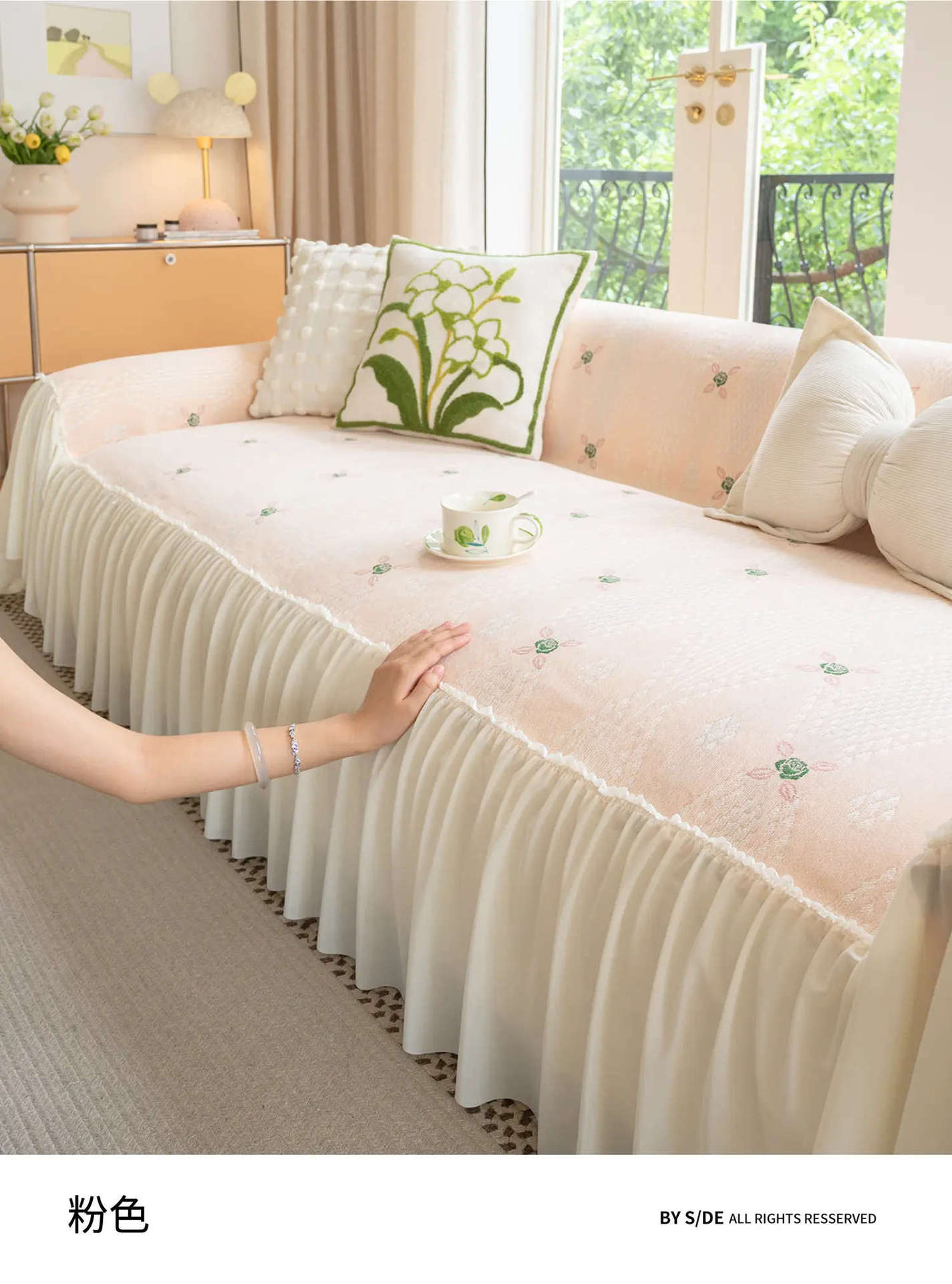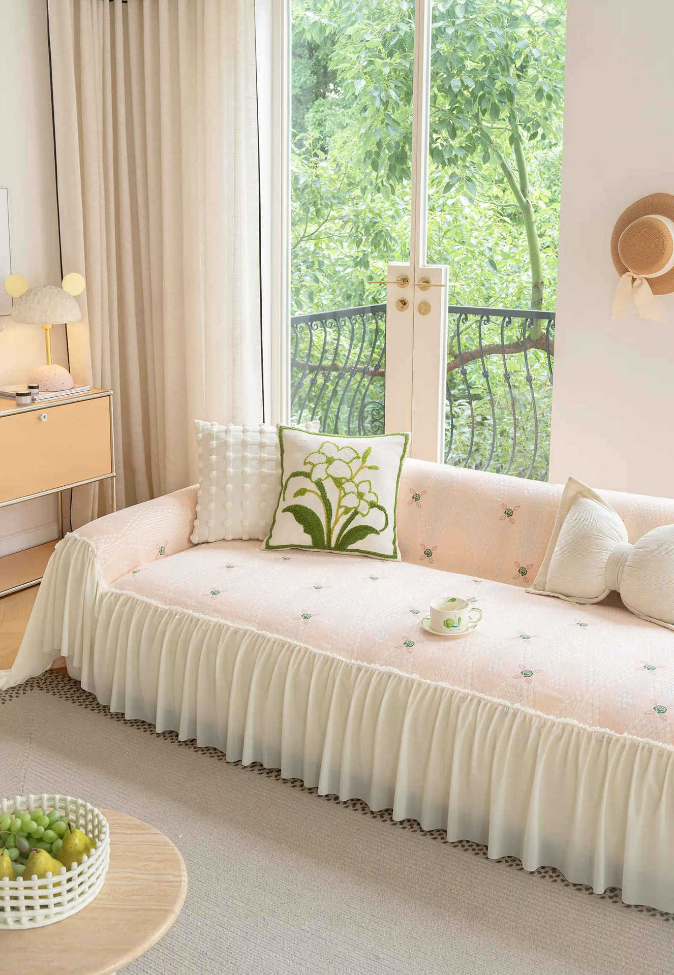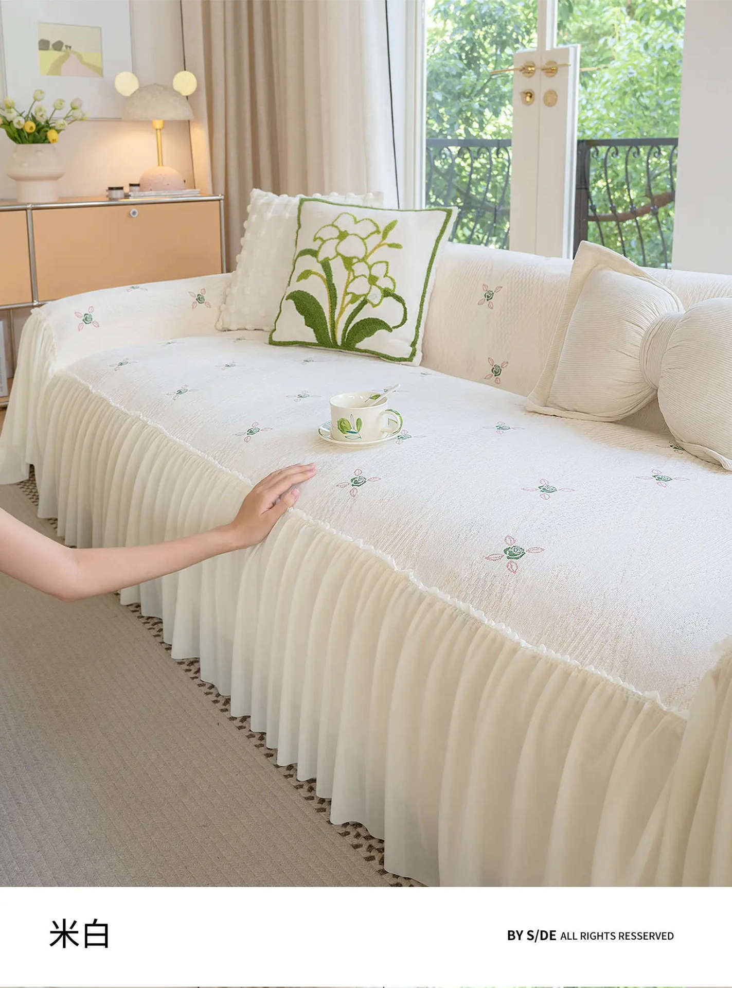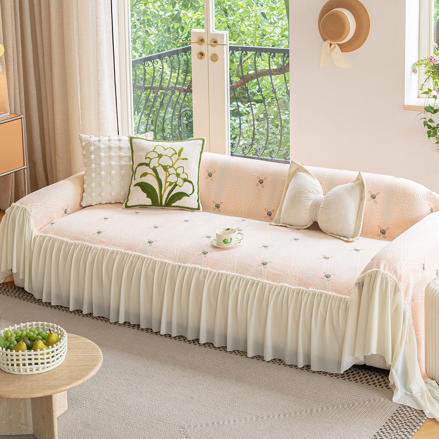 雪尼尔奶油风沙发巾蕾丝裙边2025新款防滑盖布懒人一片式沙发套罩