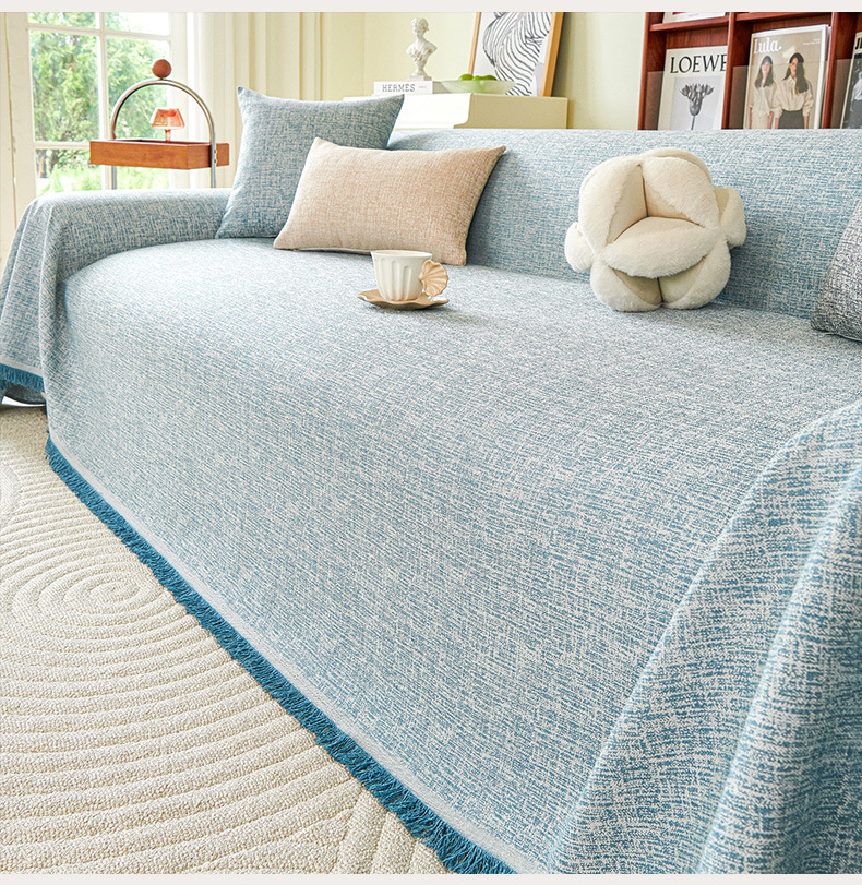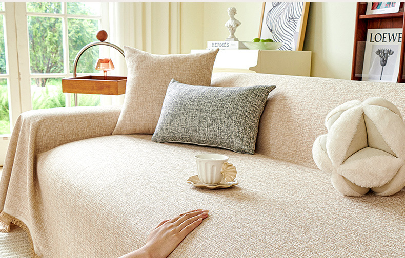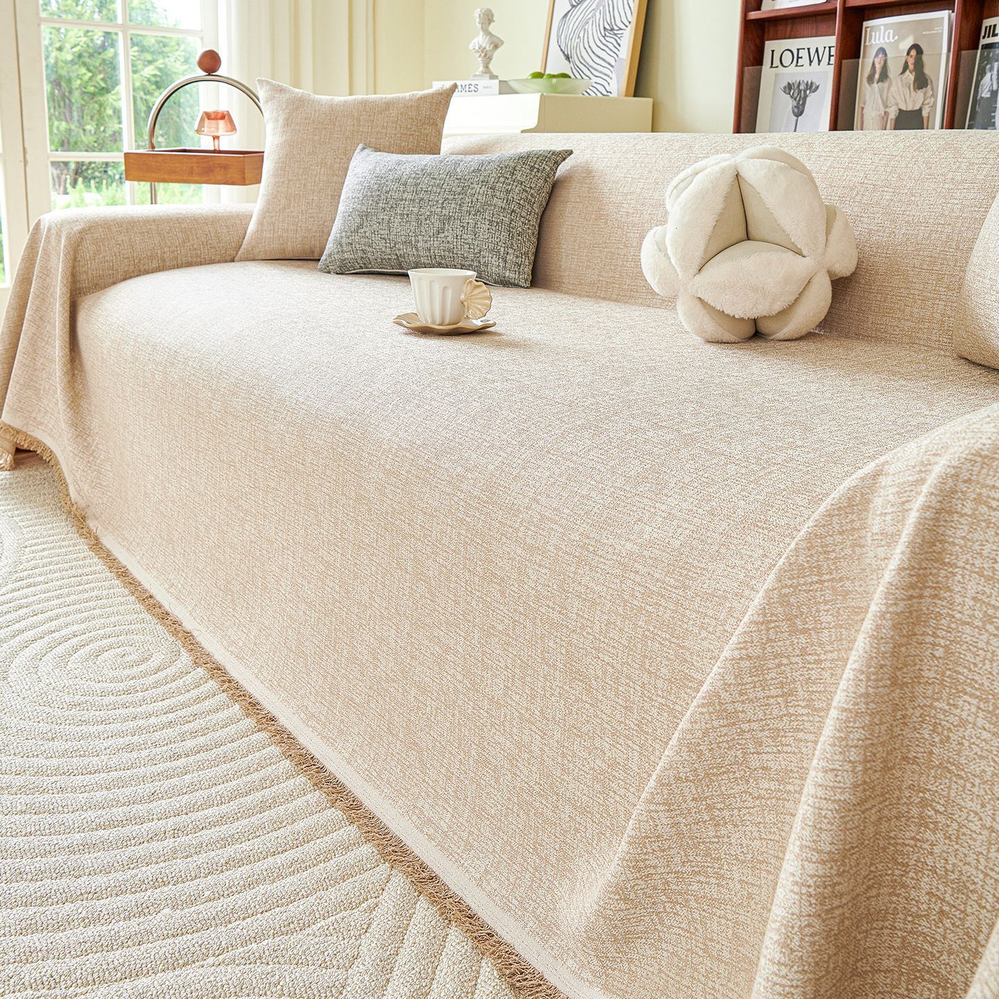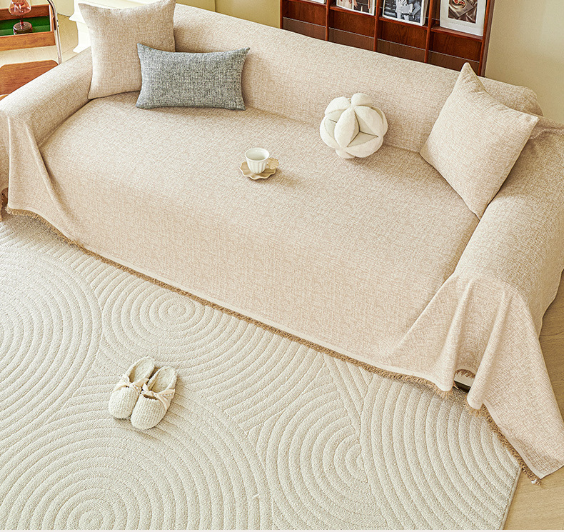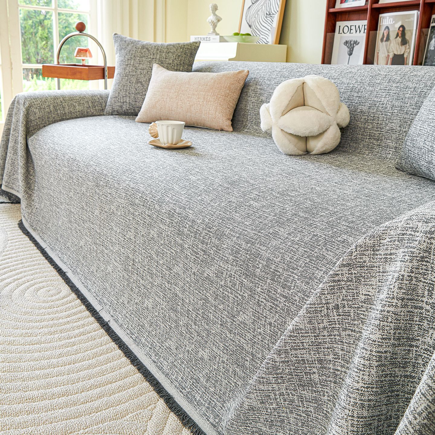 日式棉麻老粗布沙发盖布四季通用一整张全盖套罩防猫抓不粘毛盖巾