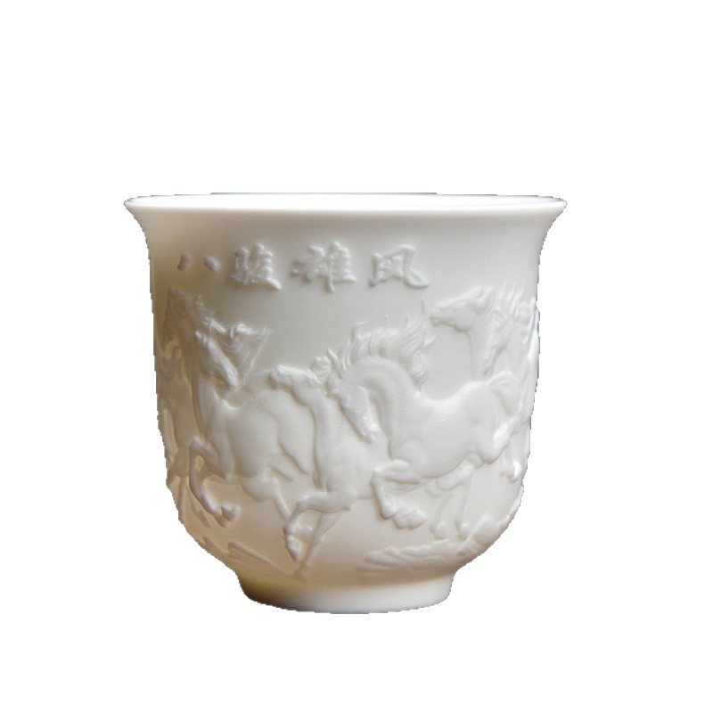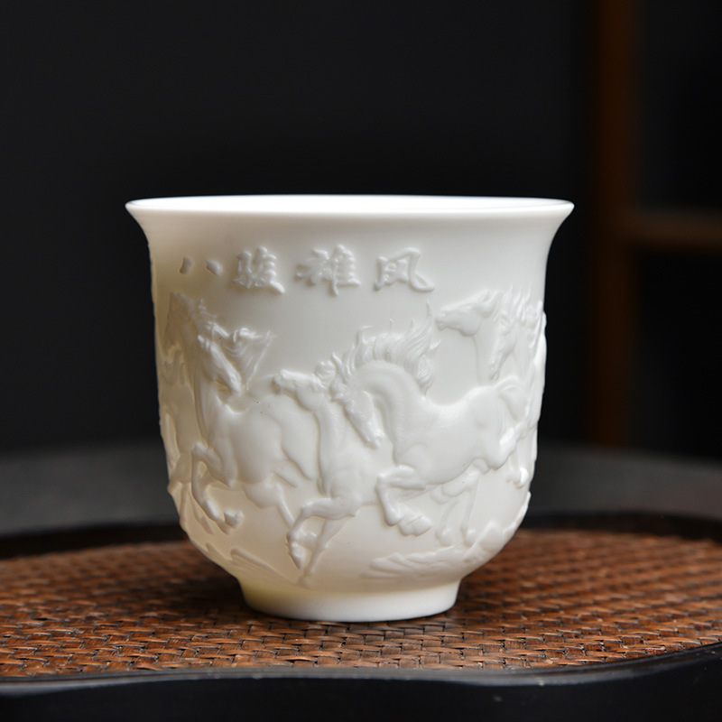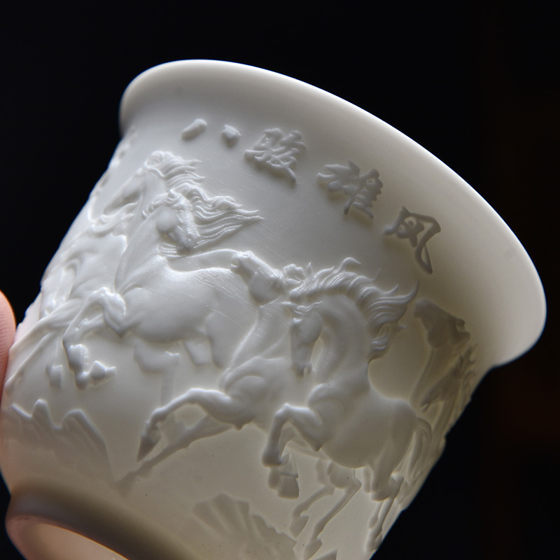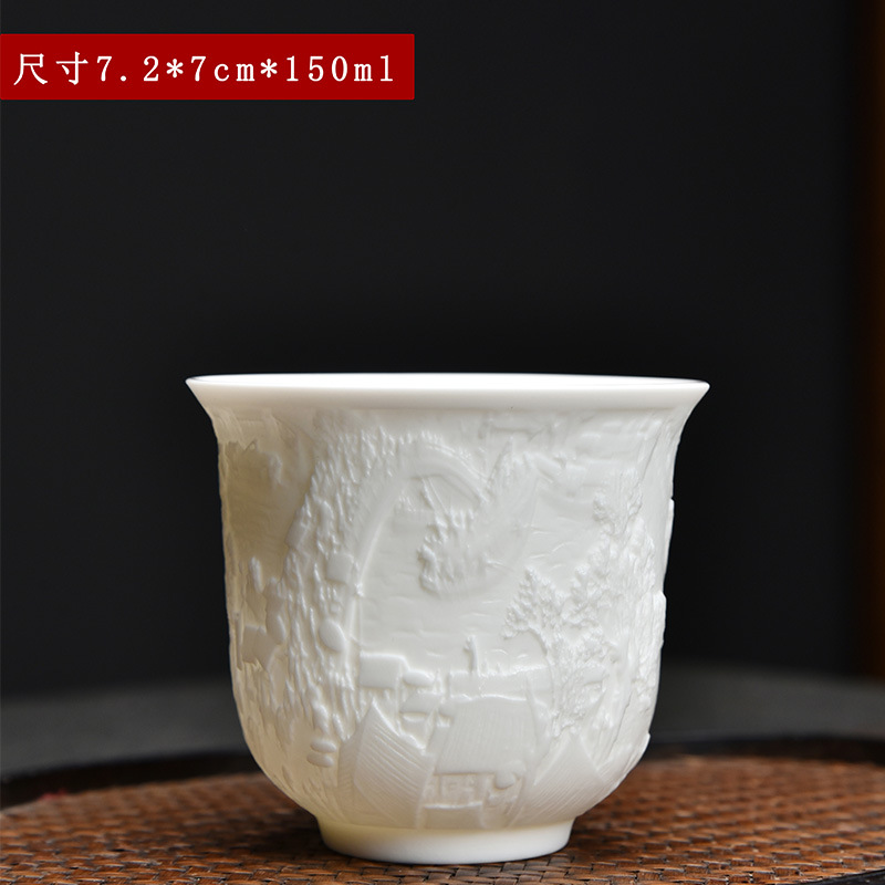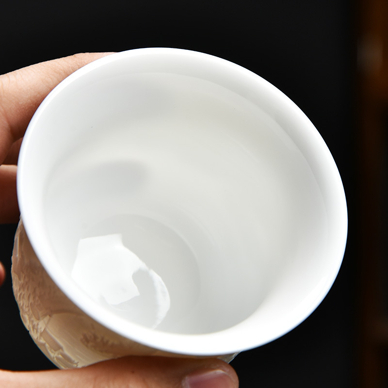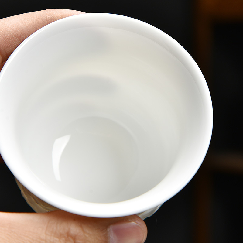 德化白瓷主人杯功夫茶杯浮雕茶具品茗茶盏简约个人专用茶杯福利品