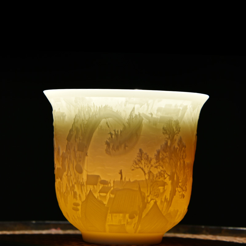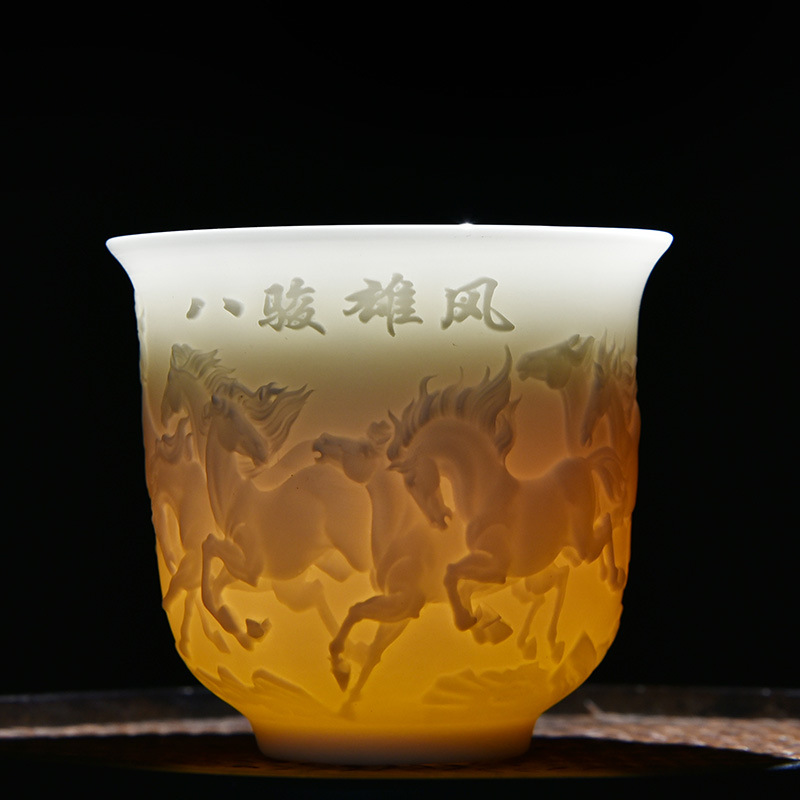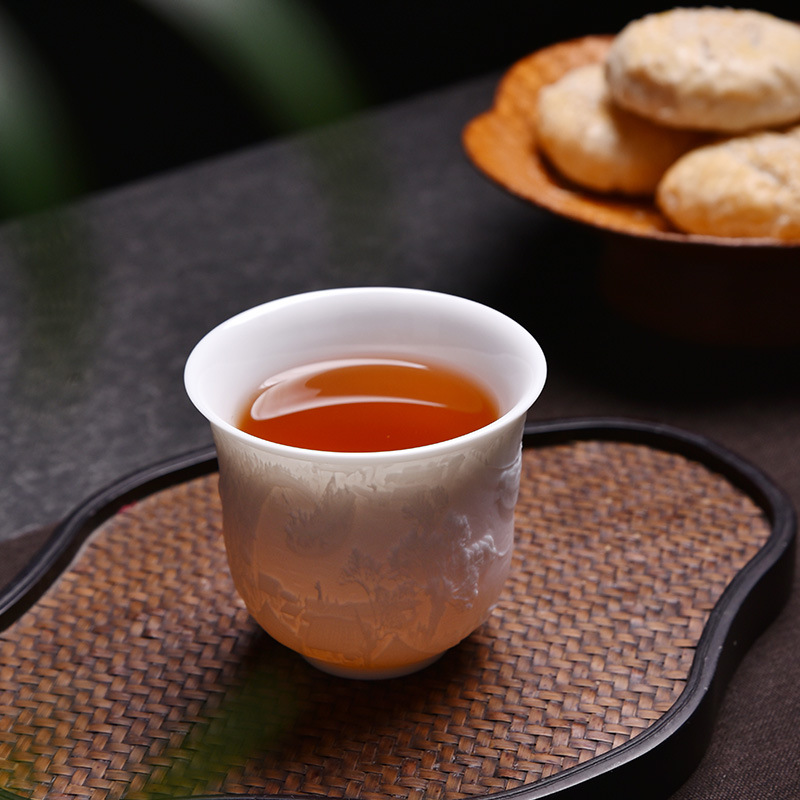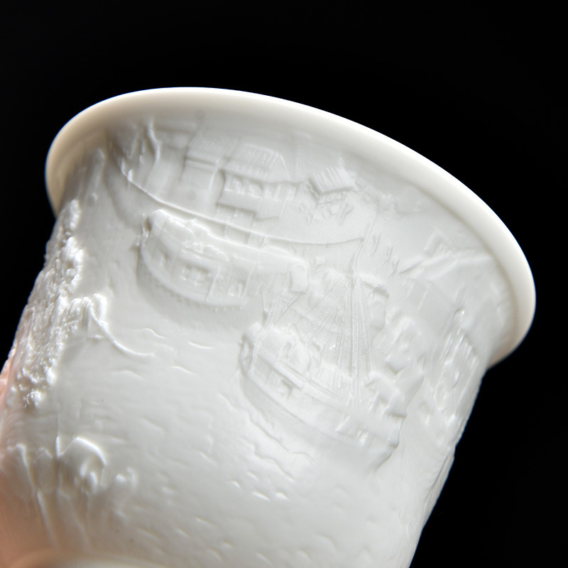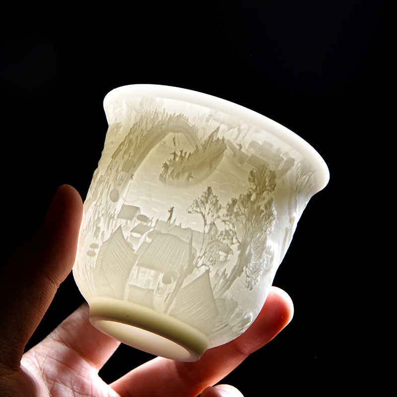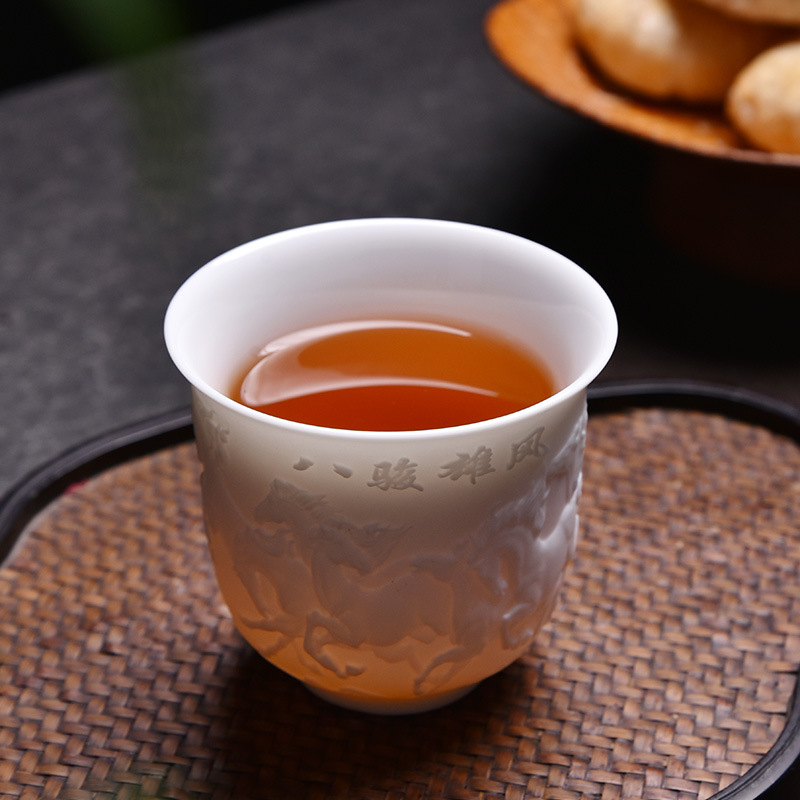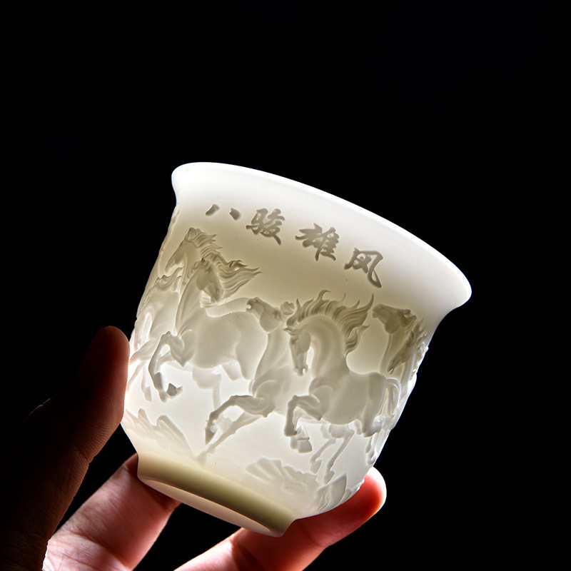 德化白瓷主人杯功夫茶杯浮雕茶具品茗茶盏简约个人专用茶杯福利品