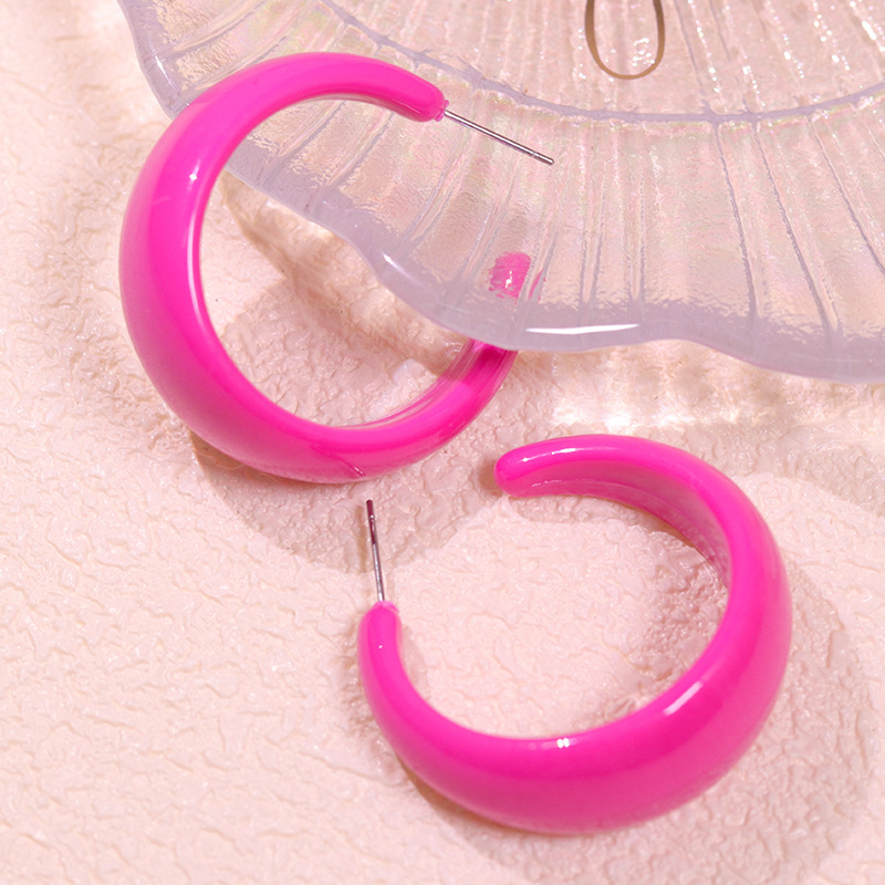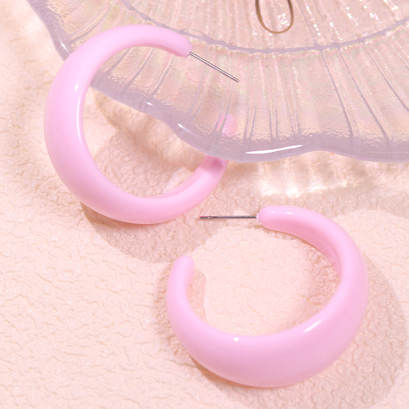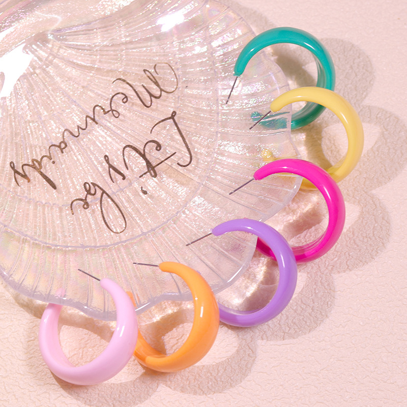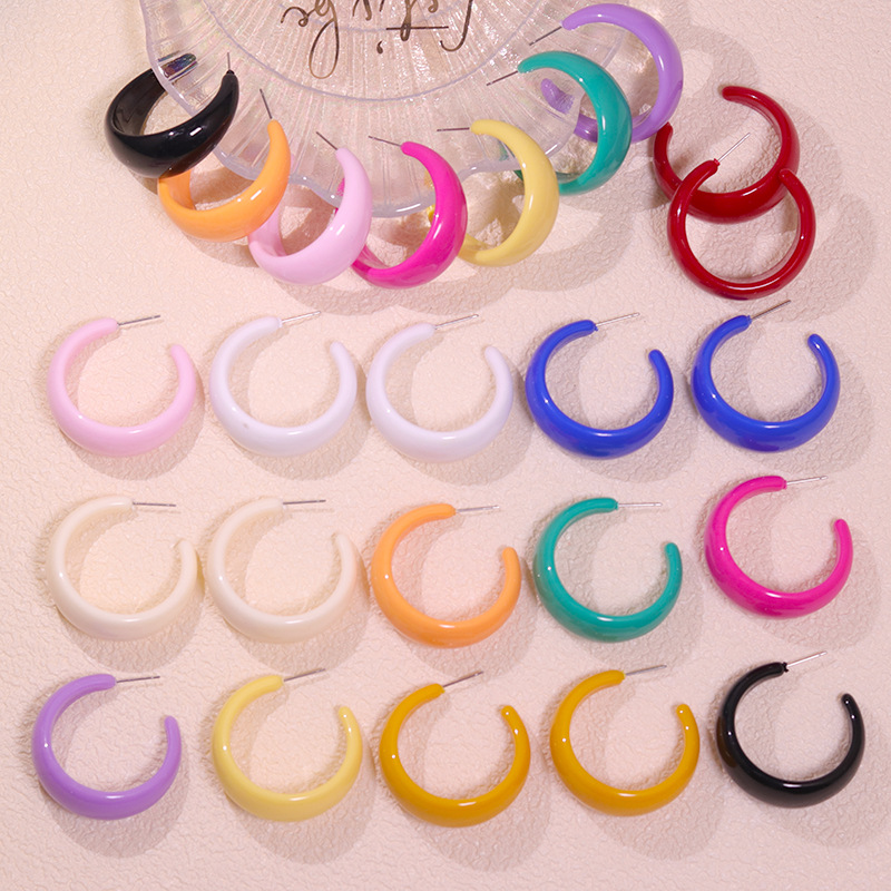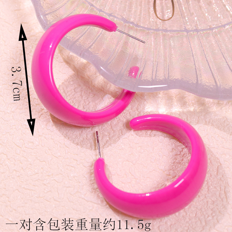 欧美设计感大C形亚克力耳钉耳环彩色马卡龙几何个性耳坠耳饰品女