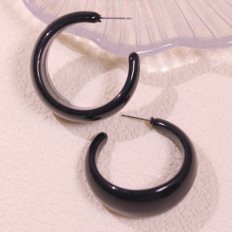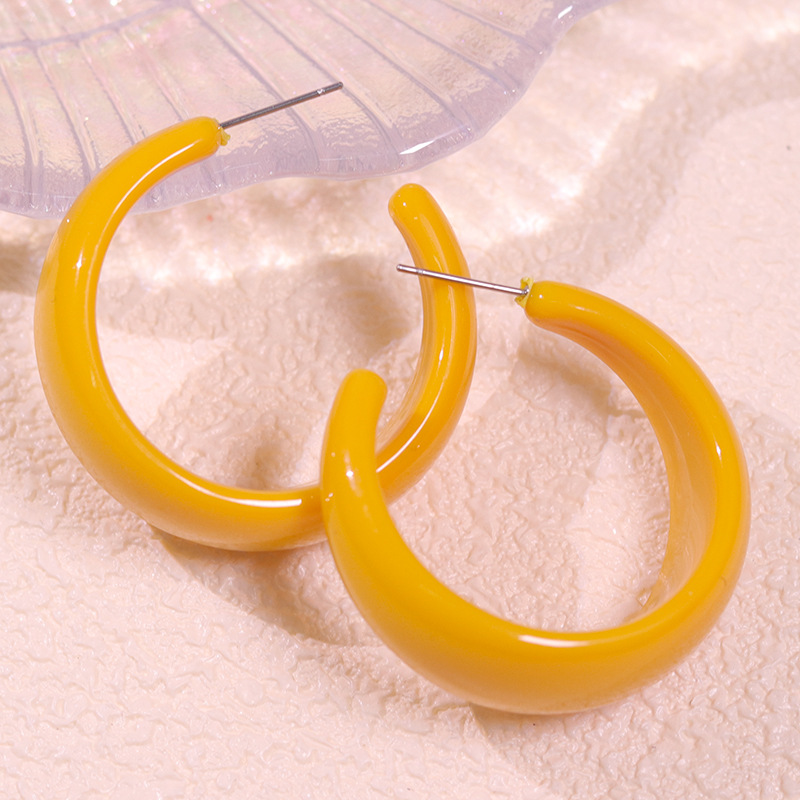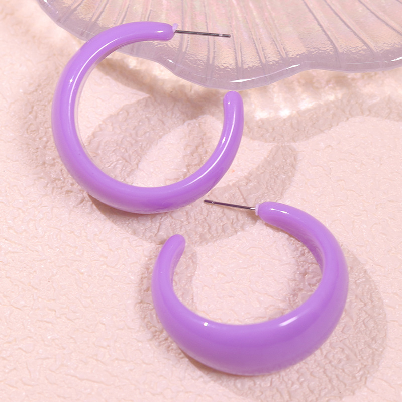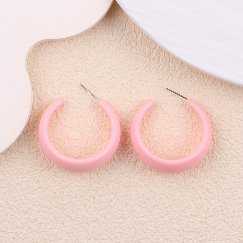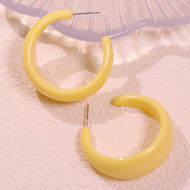 欧美设计感大C形亚克力耳钉耳环彩色马卡龙几何个性耳坠耳饰品女