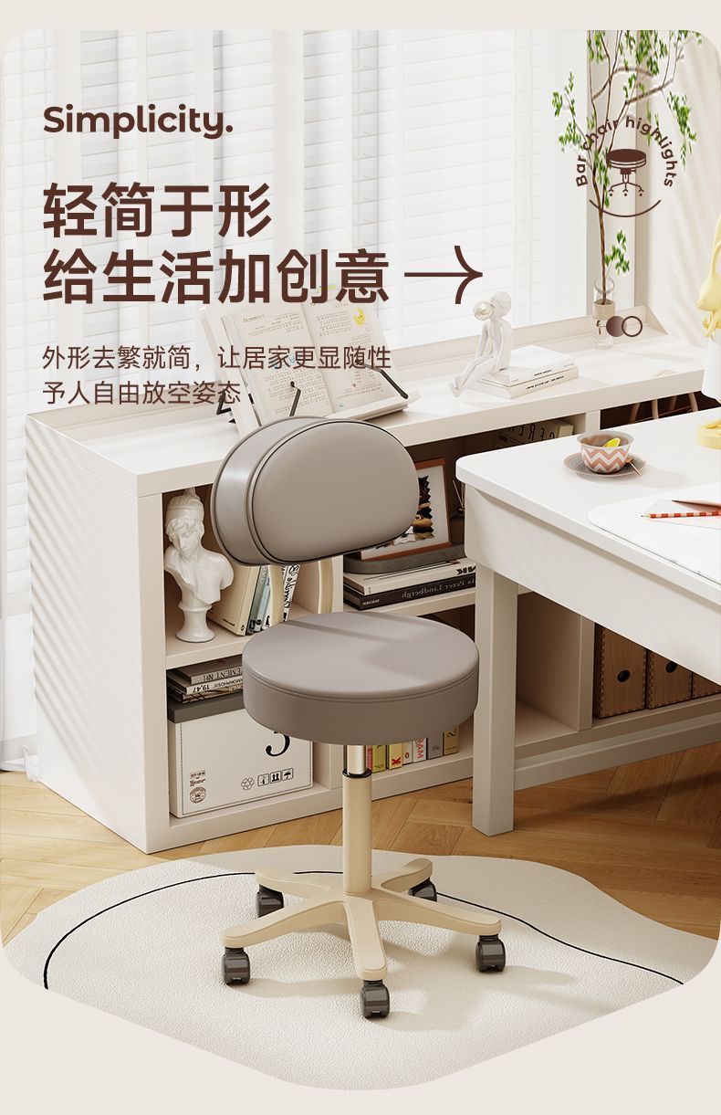 美容院凳子家用靠背椅滑轮椅子办公椅美甲化妆椅圆凳电脑椅吧台椅
