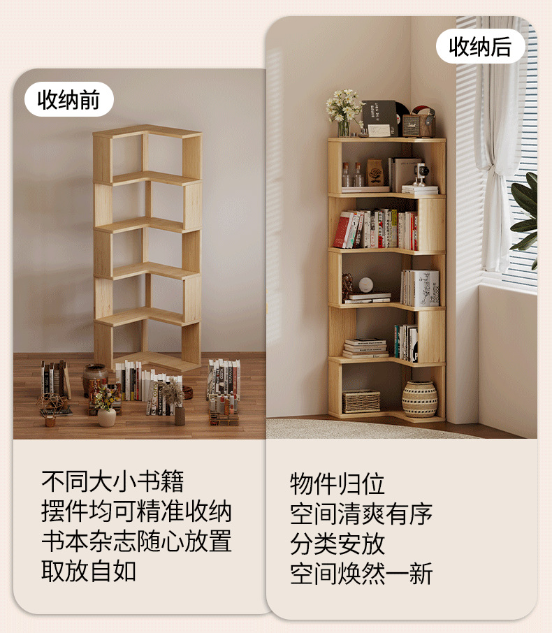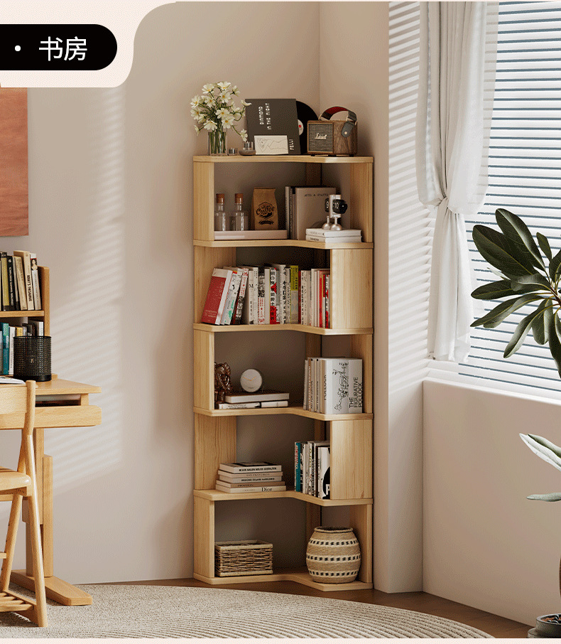 实木角柜转角置物架收纳柜一体靠墙90度小户型书架落地置物架书柜