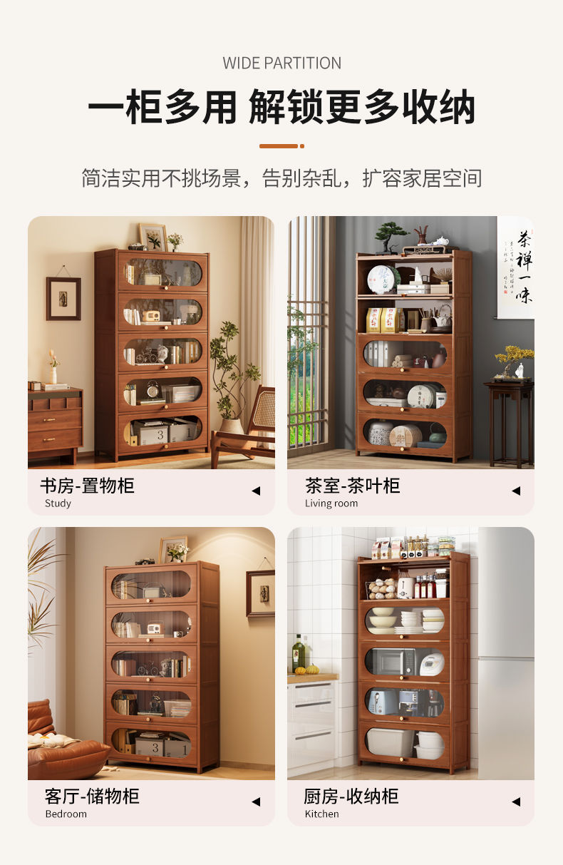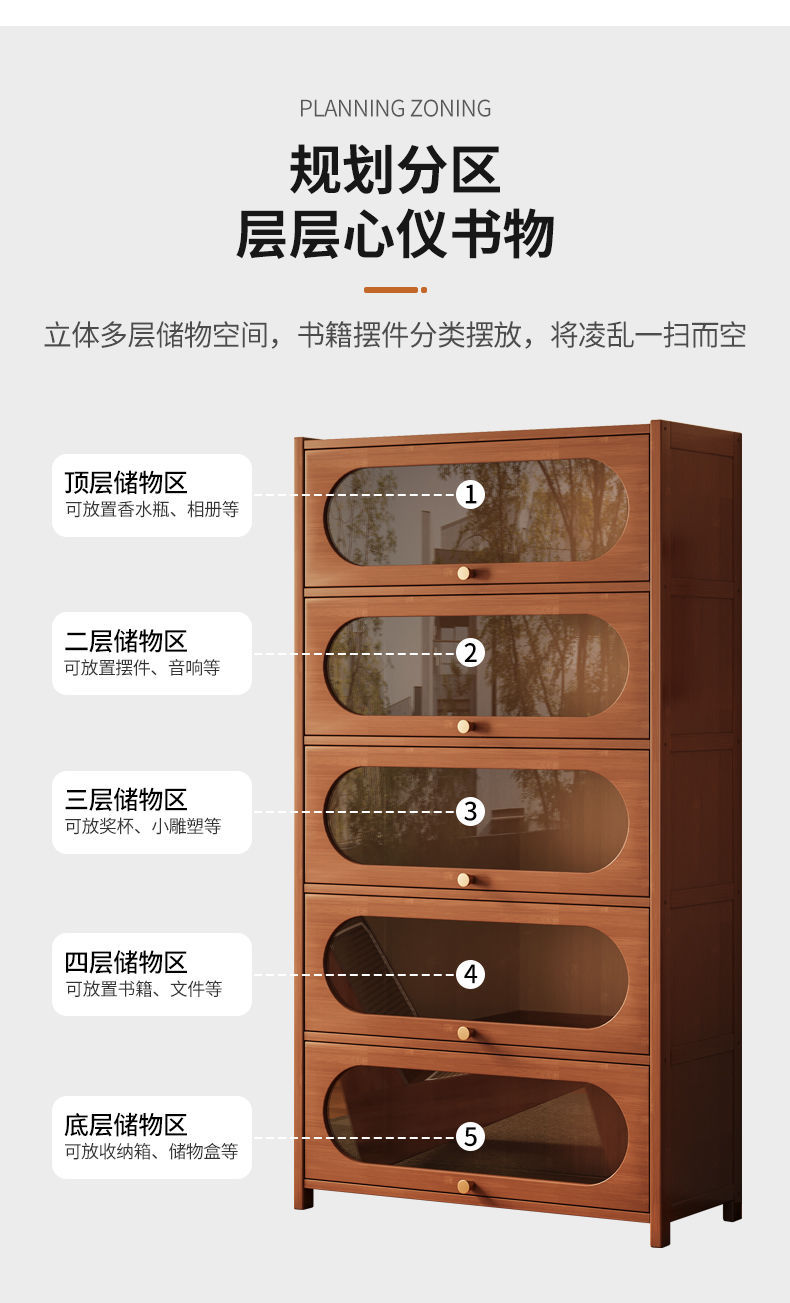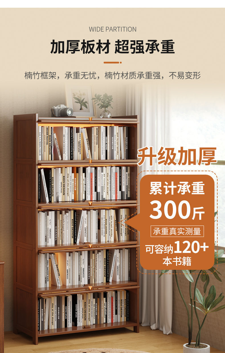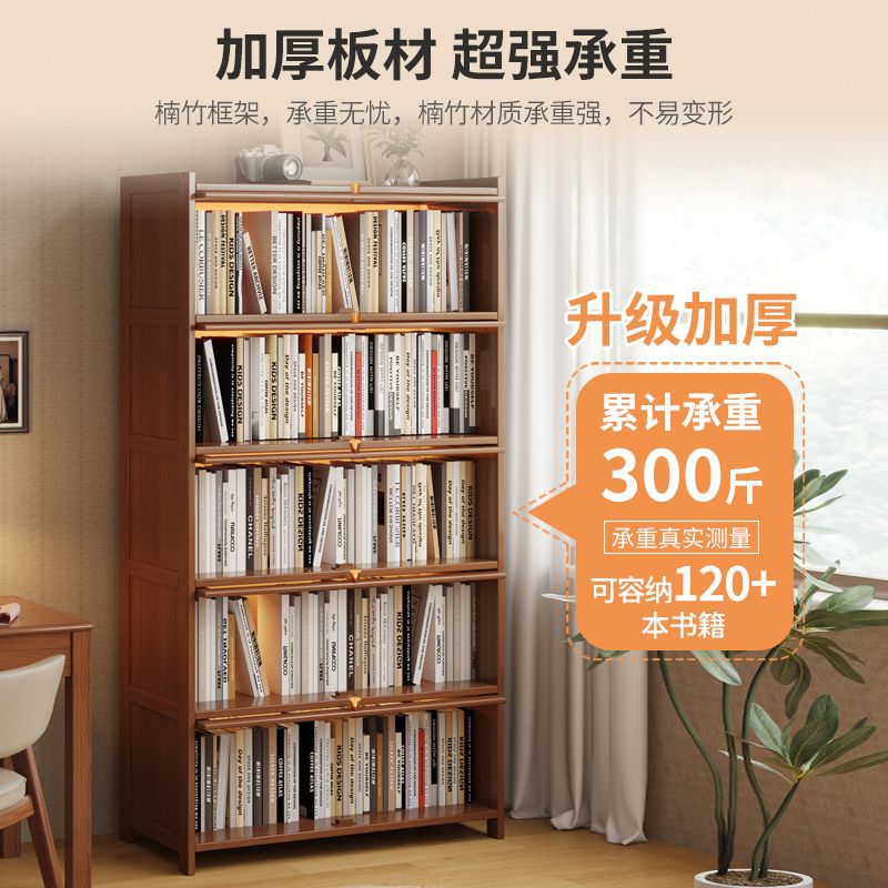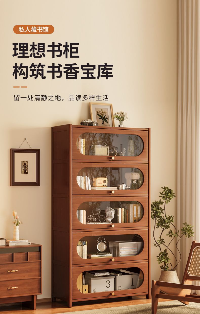 书架置物架落地书柜储物柜一体靠墙收纳家用实木带门防尘展示柜子