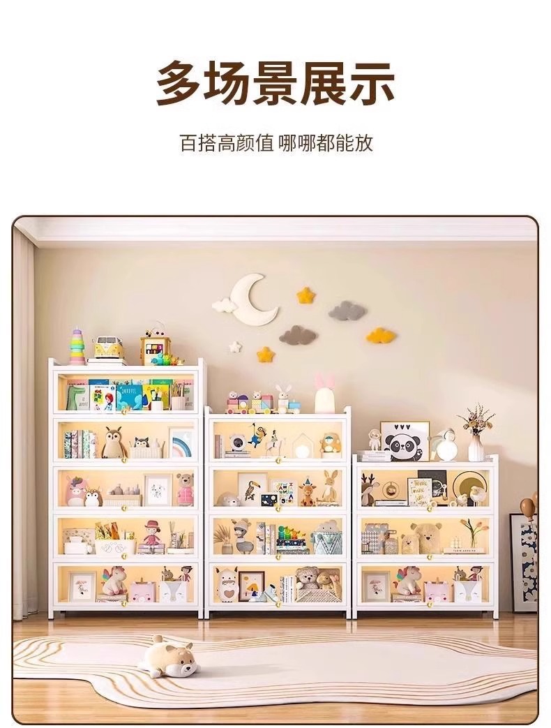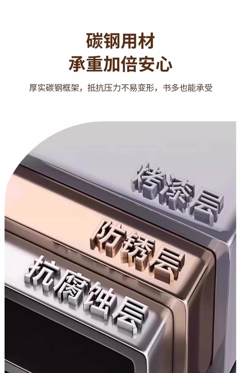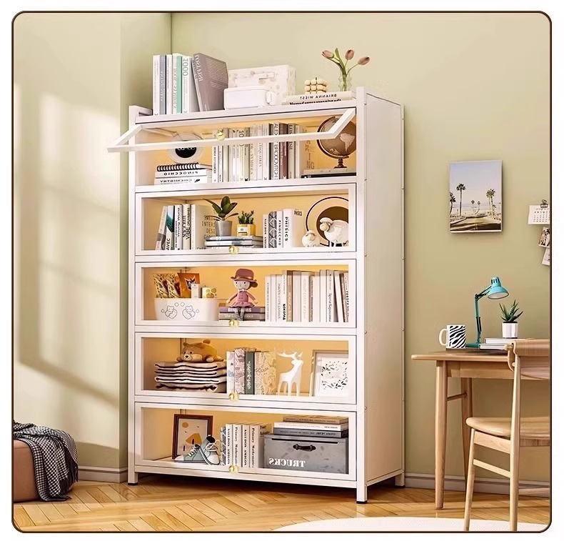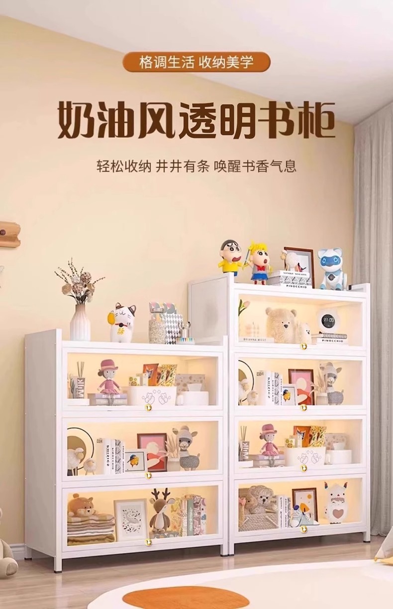 漫欧钢制书架带玻璃门防尘书柜客厅落地多层储物柜铁皮手办展示柜