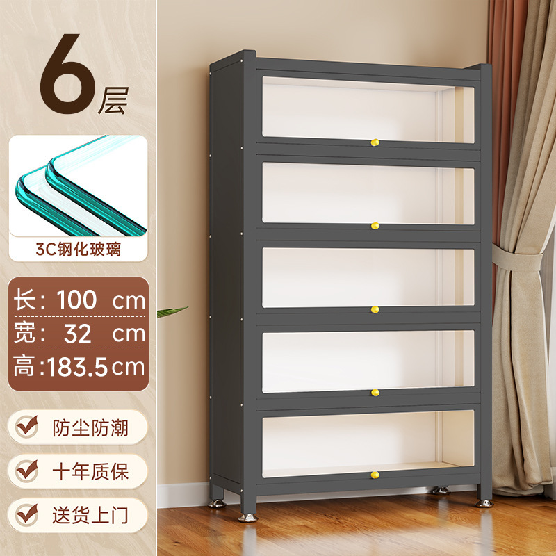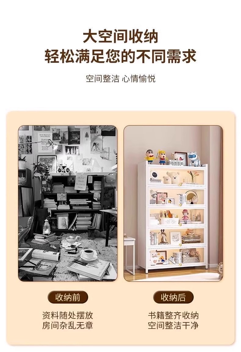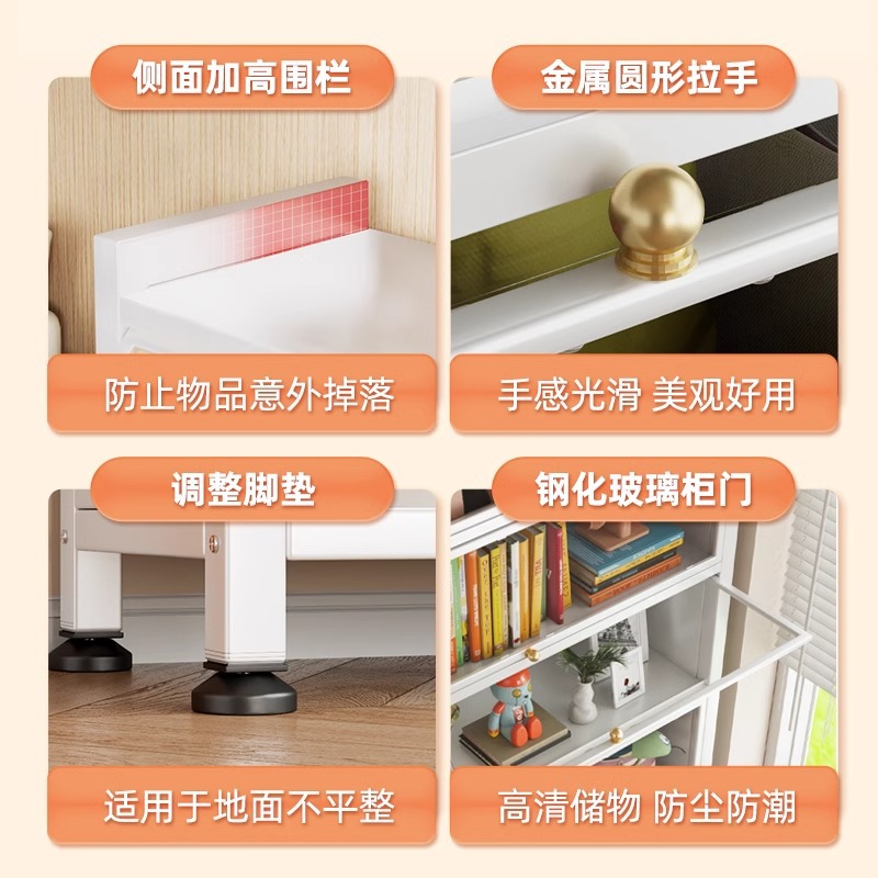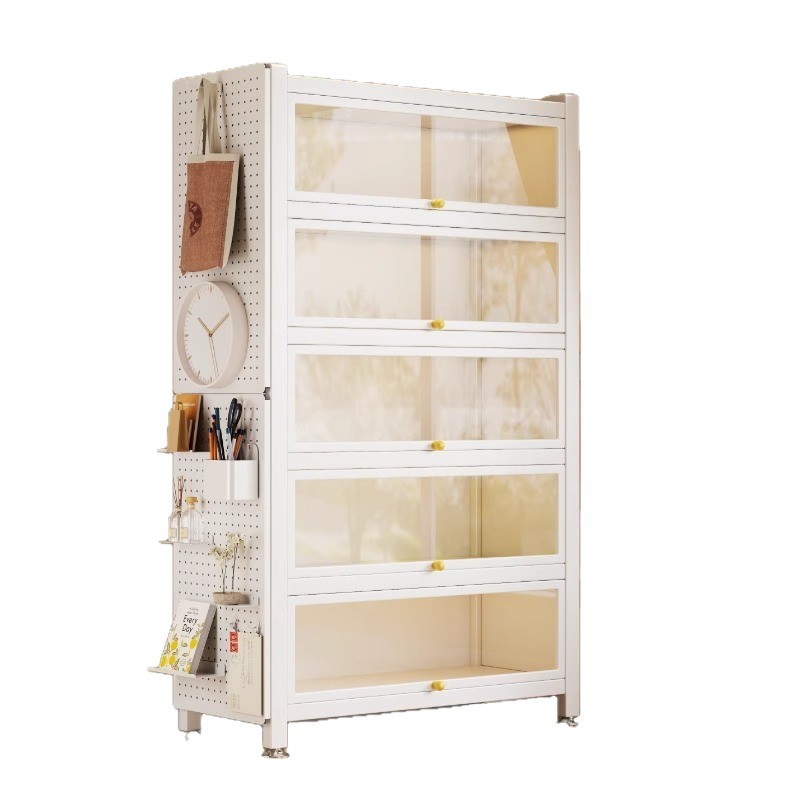 漫欧钢制书架带玻璃门防尘书柜客厅落地多层储物柜铁皮手办展示柜