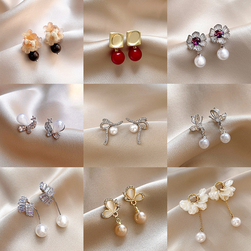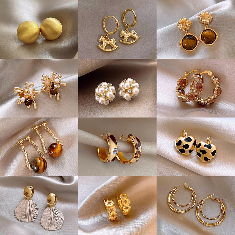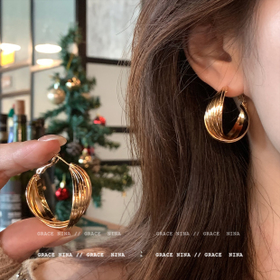 S925银针网红金色耳环轻奢高级感气质珍珠耳钉女个性爆款耳饰秋冬