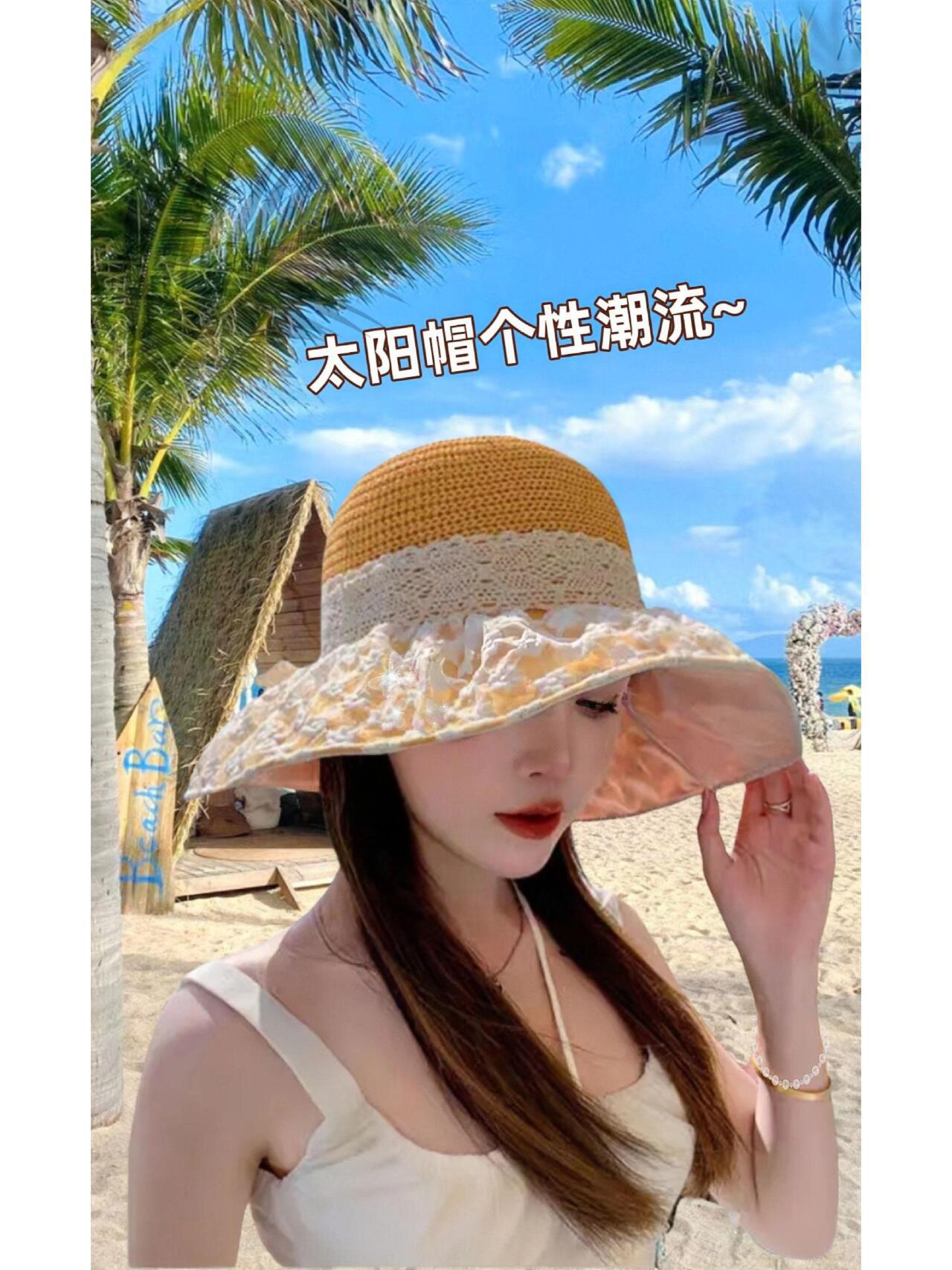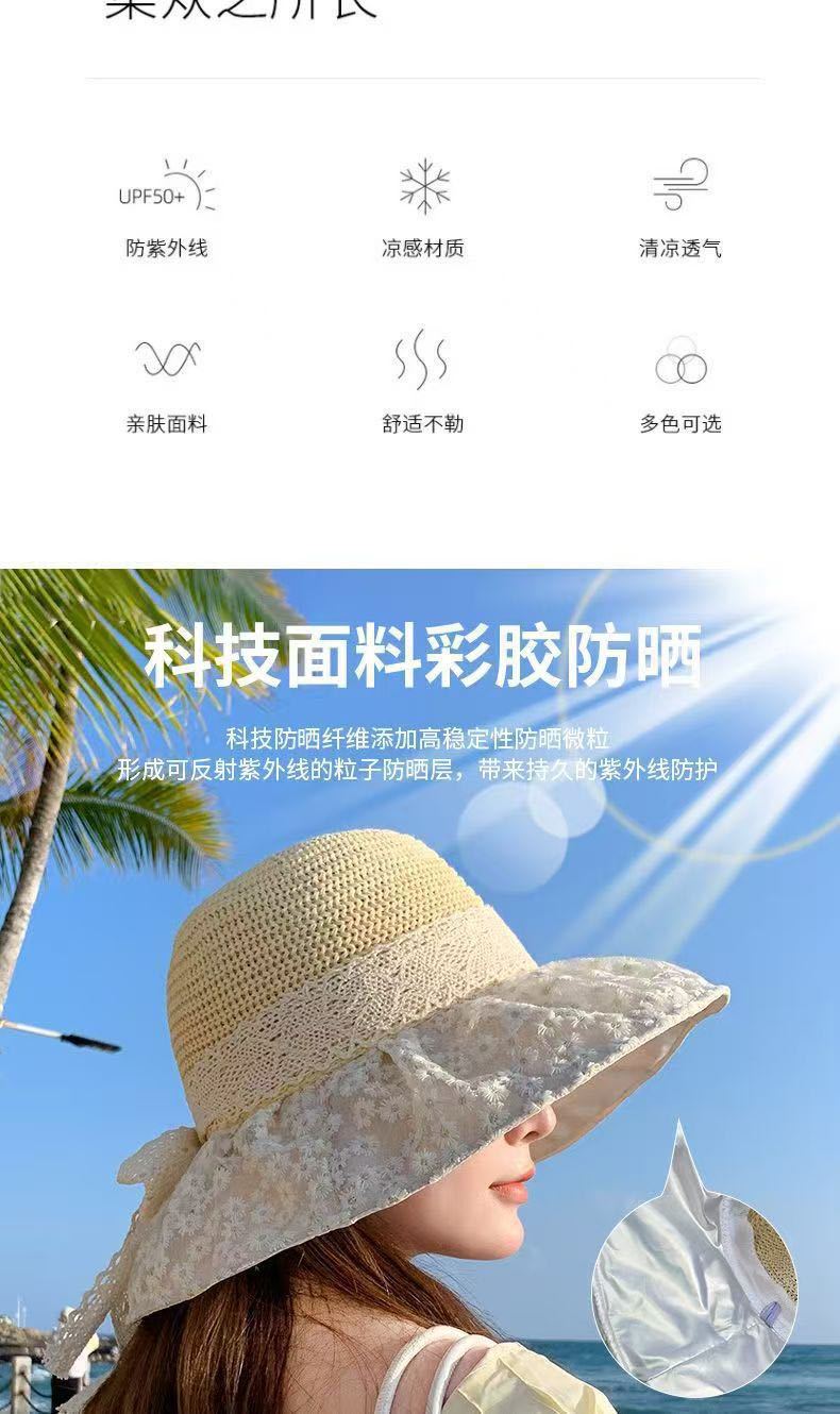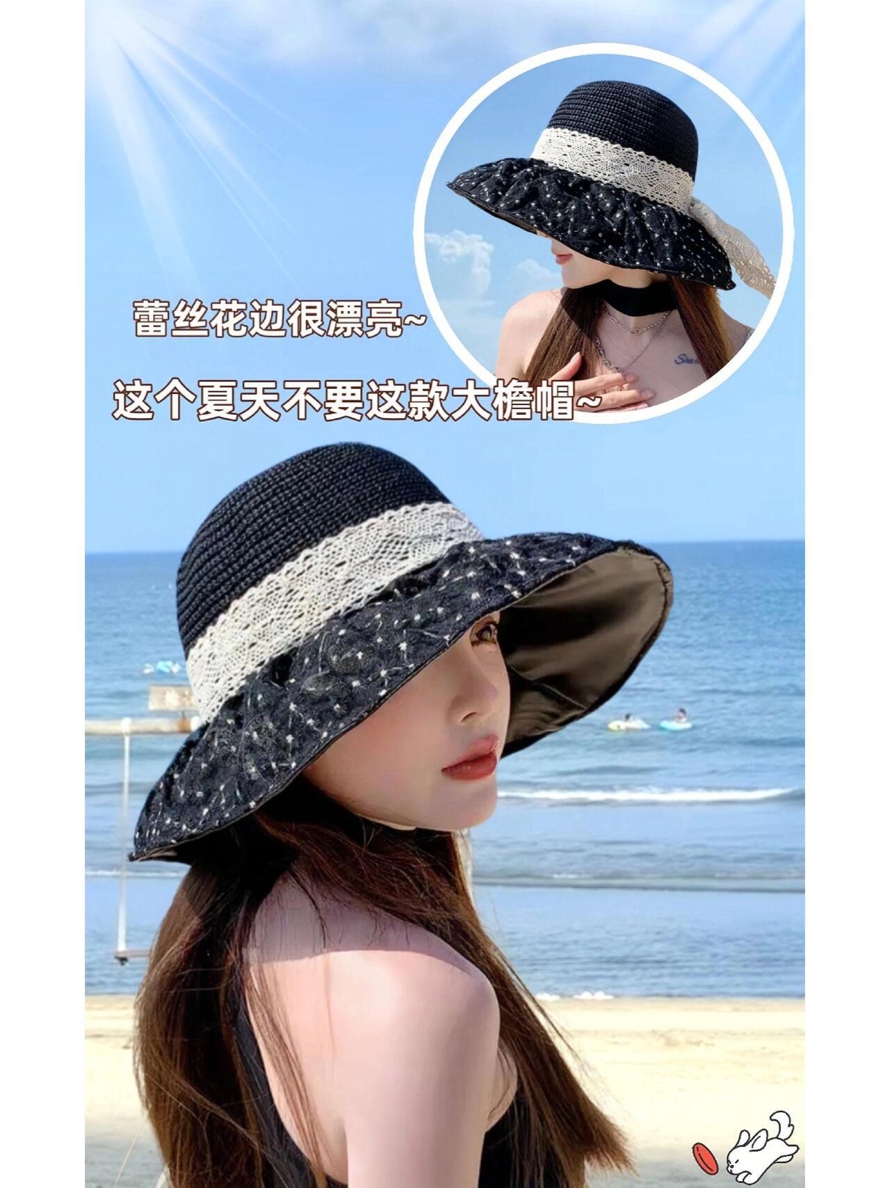 遮阳帽子女夏季黑胶镂空太阳帽防紫外线大帽檐渔夫帽2025新款女帽