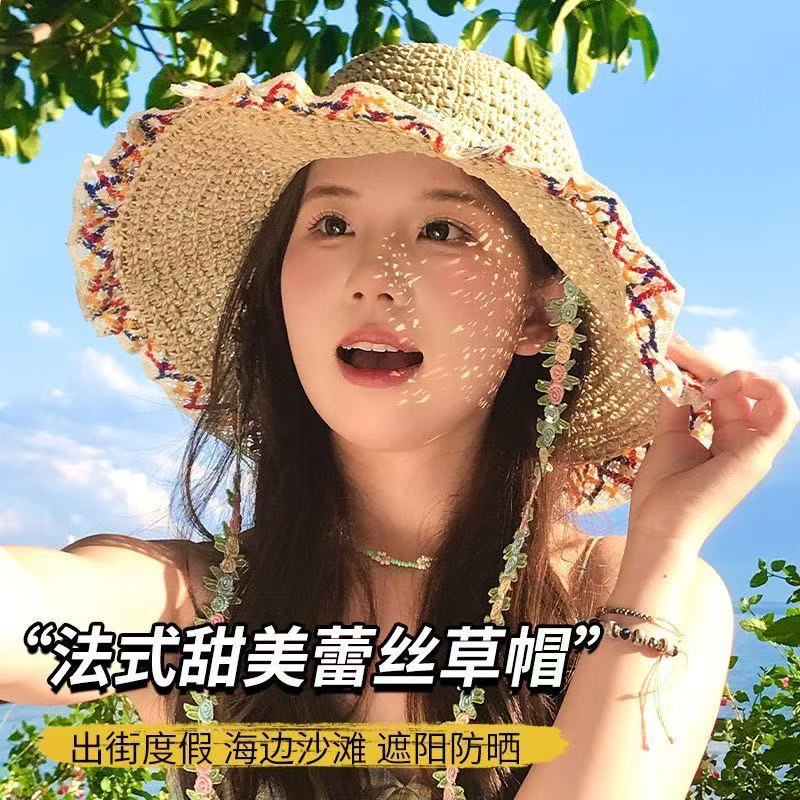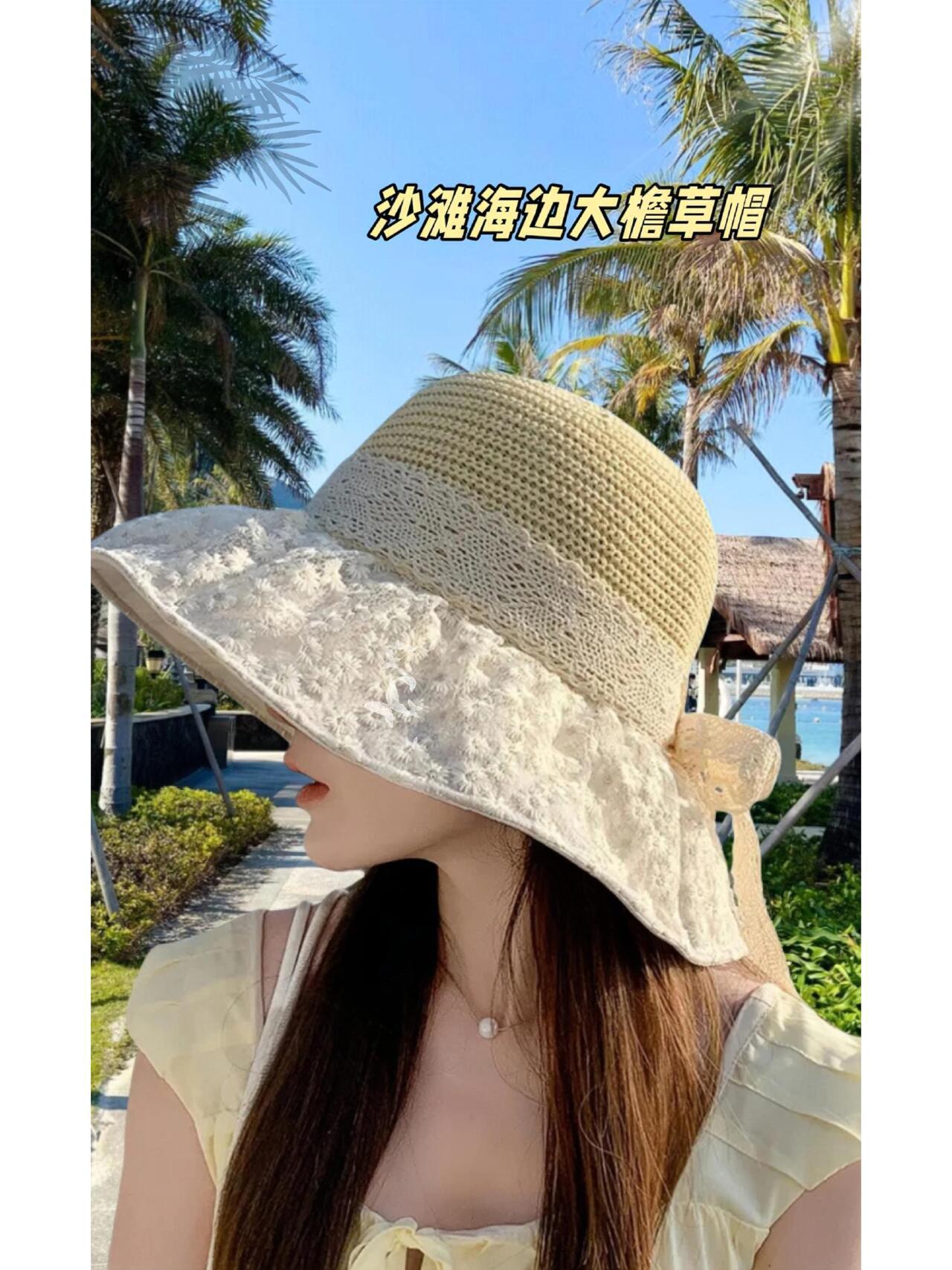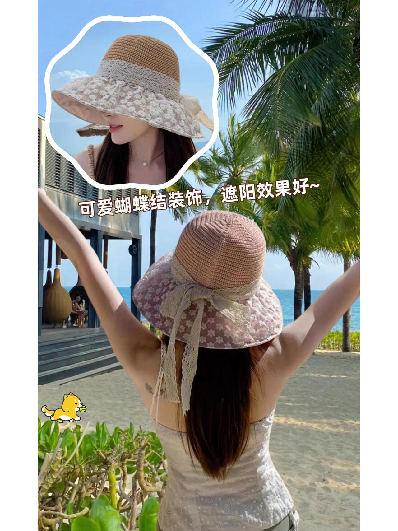遮阳帽子女夏季黑胶镂空太阳帽防紫外线大帽檐渔夫帽2025新款女帽