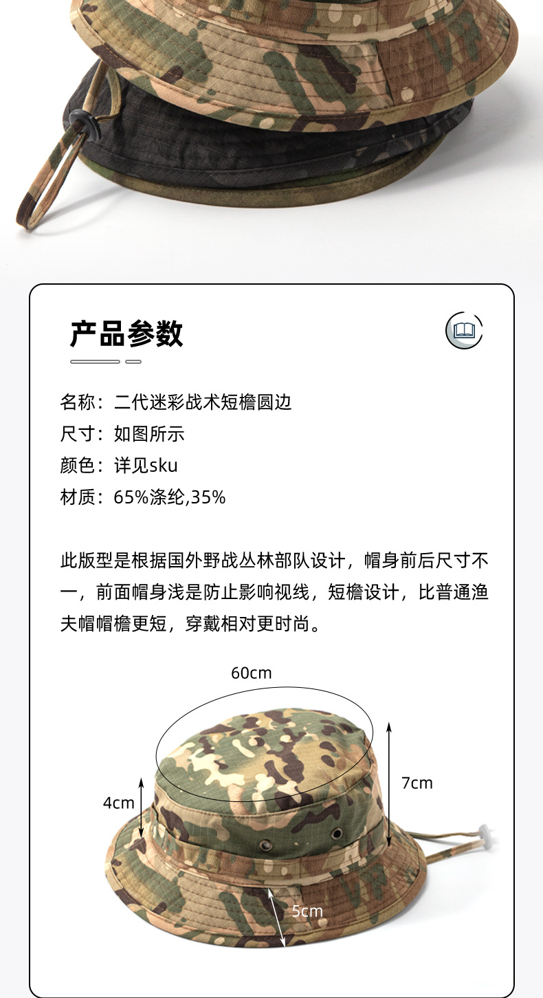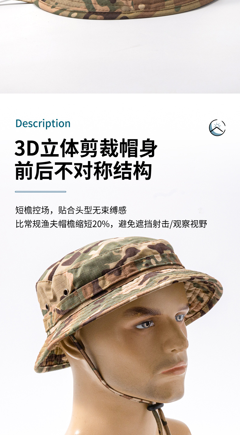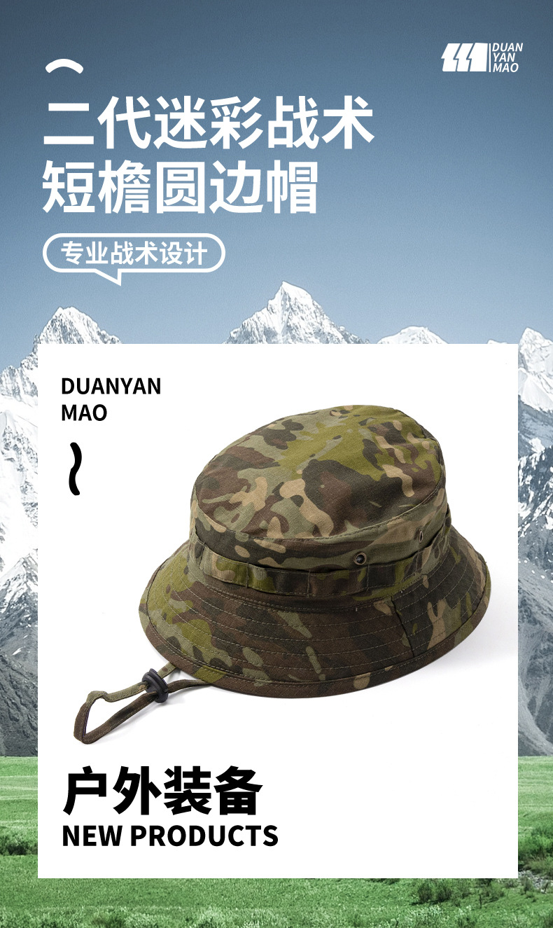 迷彩帽子迷彩奔尼帽户外战术夏季遮阳帽短檐个性渔夫帽防晒钓鱼帽
