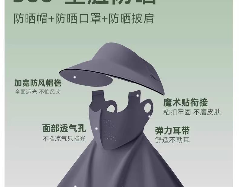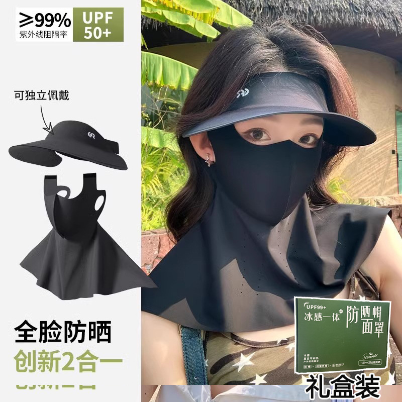 防晒面罩帽子女全脸防紫外线夏季户外开车骑行口罩帽子一体遮阳帽