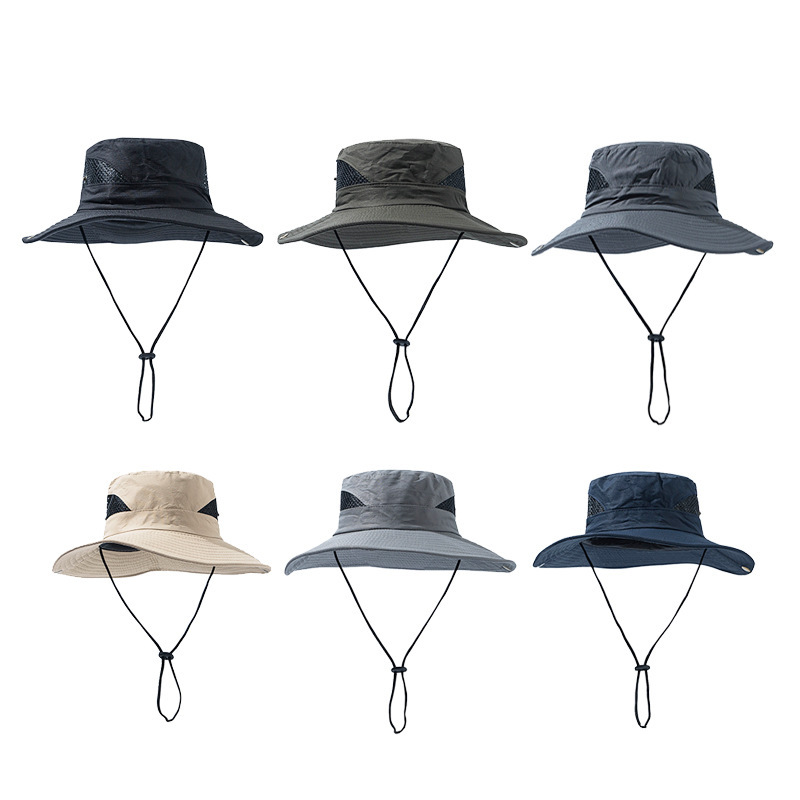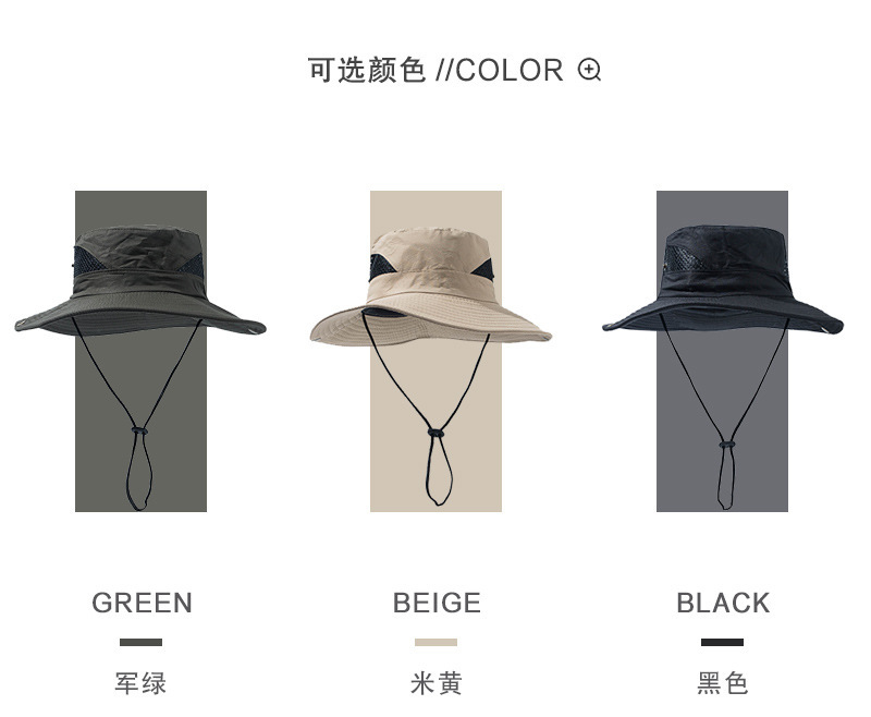 跨境速干渔夫帽子西部牛仔帽遮阳户外运动登山抽绳徒步防晒帽批发