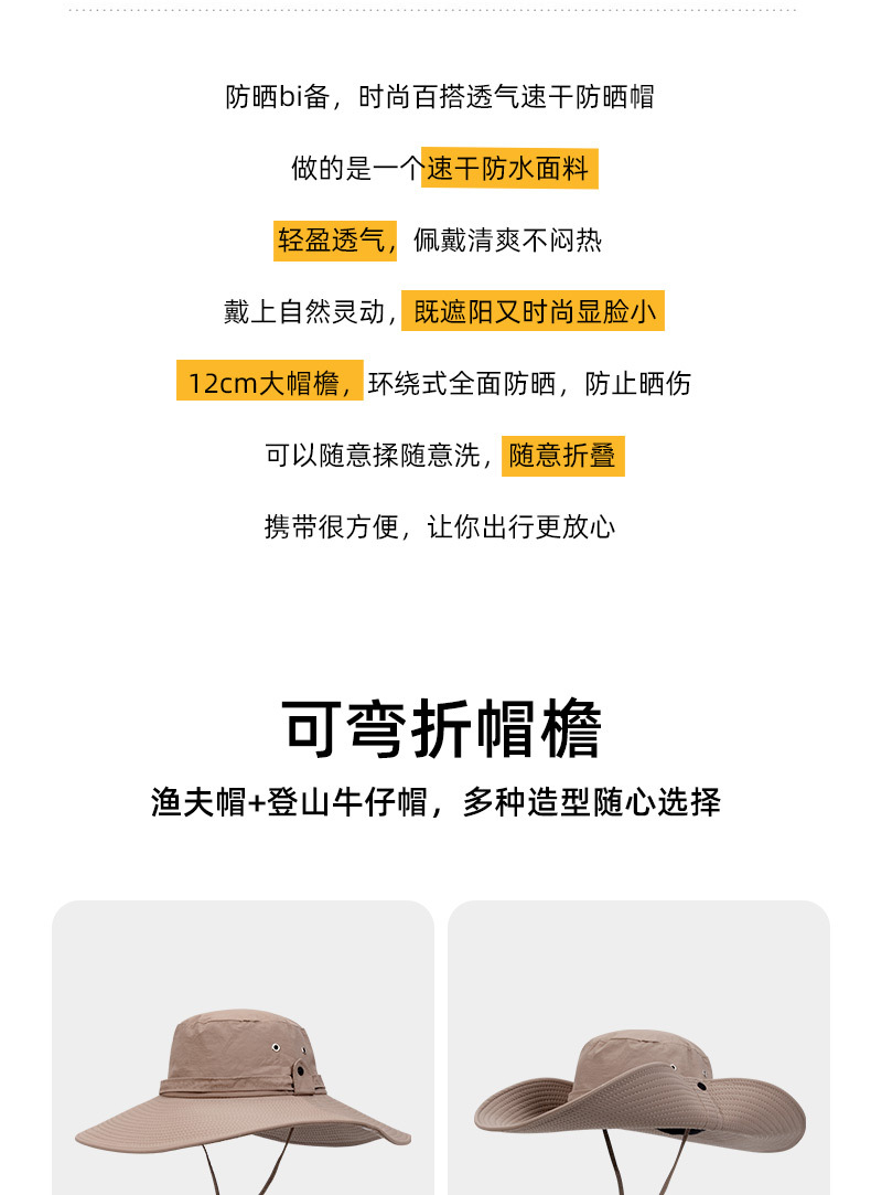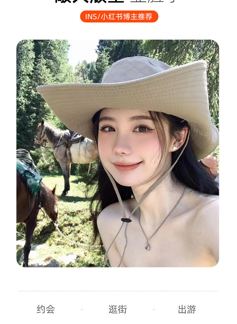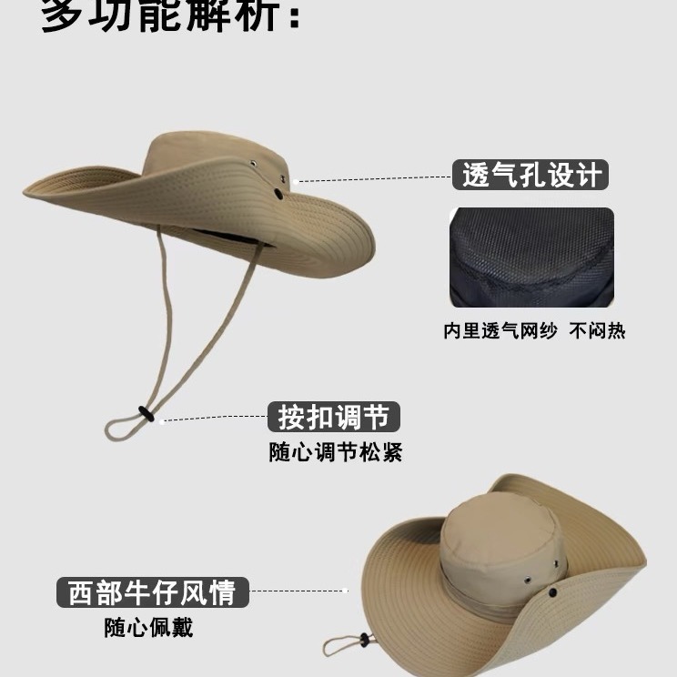 春秋季户外露营登山帽帽西部牛仔帽帽子女款夏季渔夫帽遮阳帽