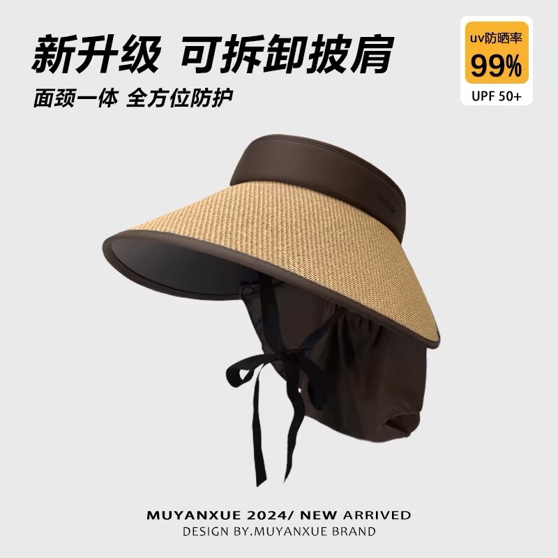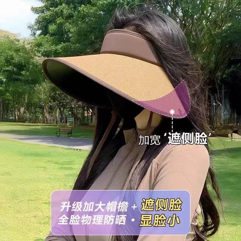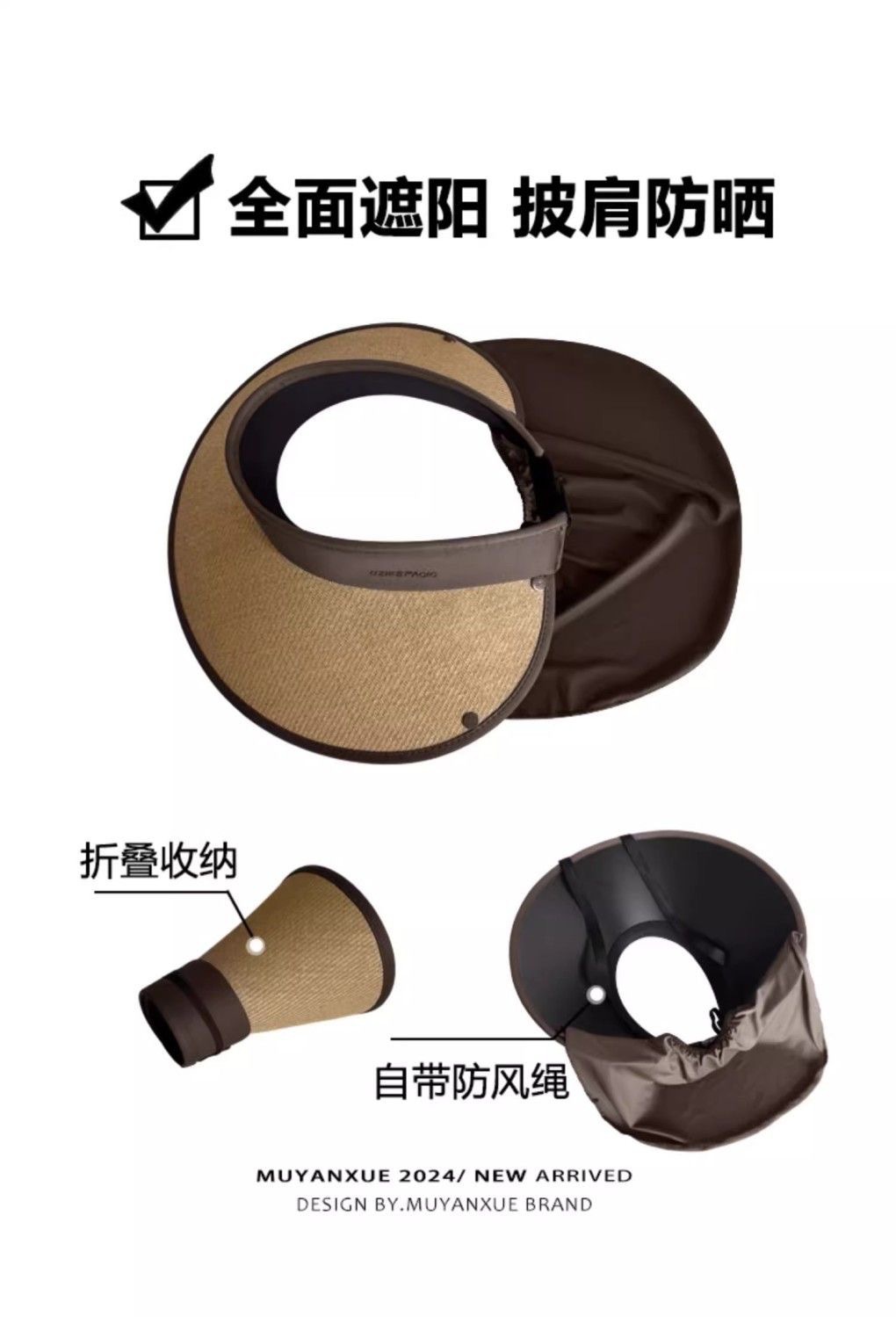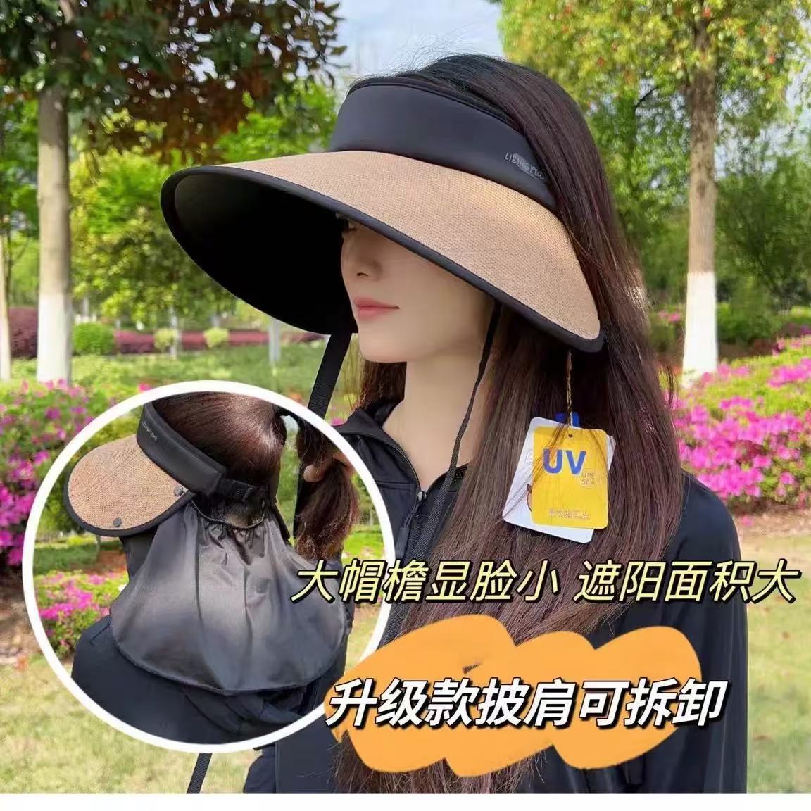 加大帽檐新款防晒帽女护披肩遮阳帽防紫外线草编空顶太阳帽可折叠