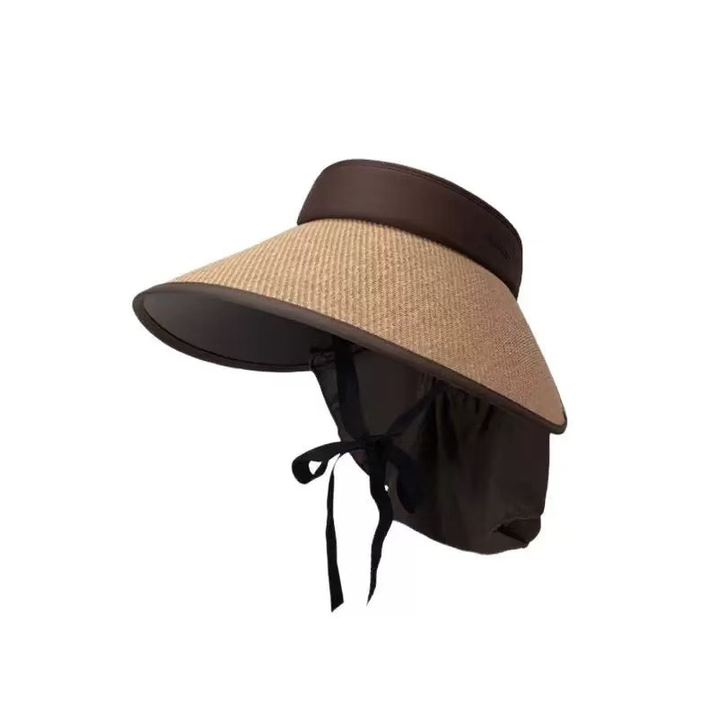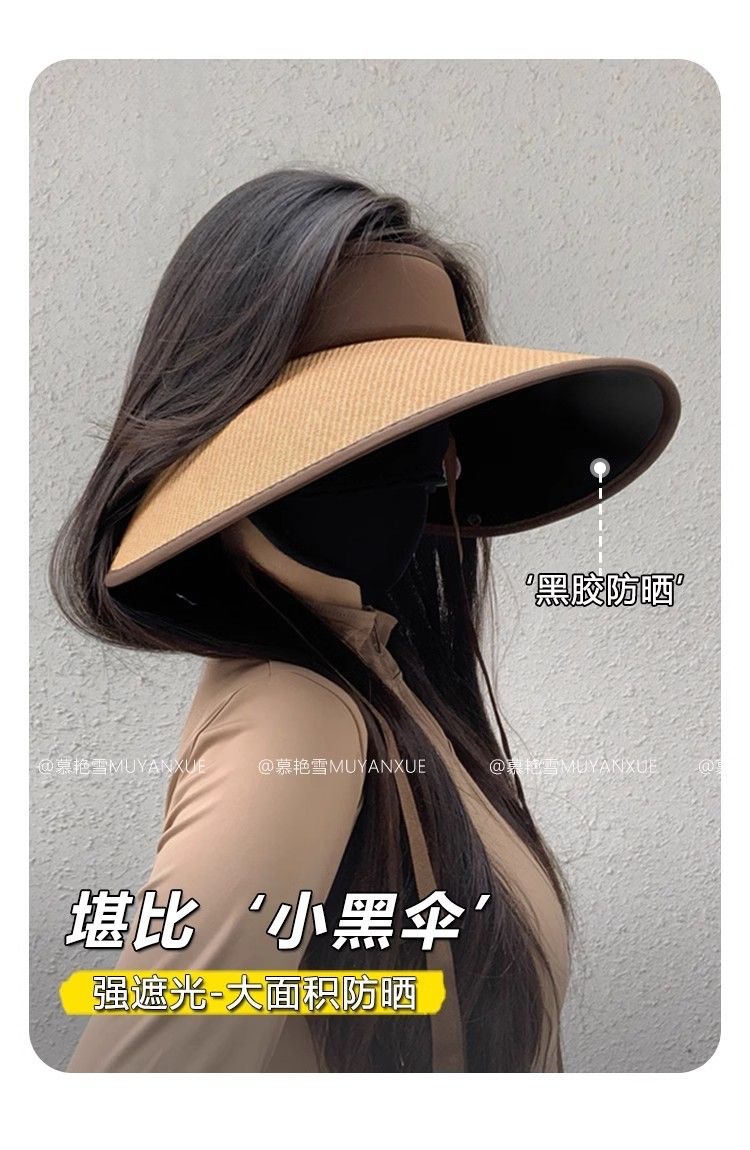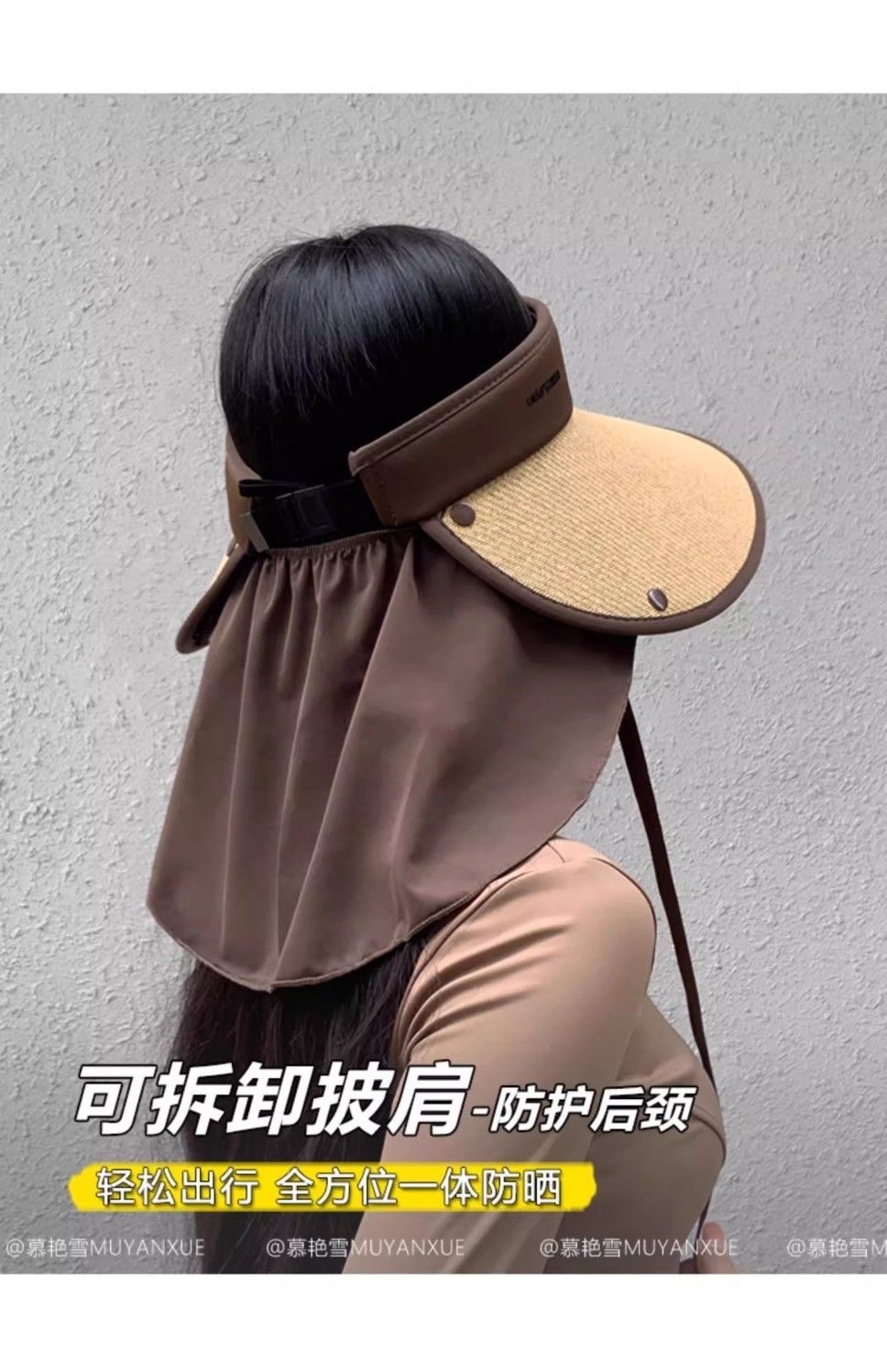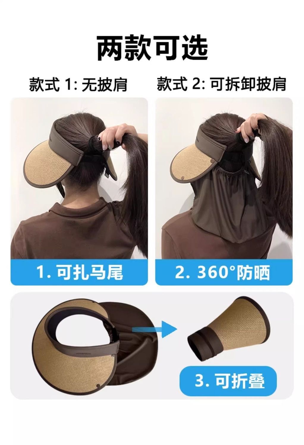 加大帽檐新款防晒帽女护披肩遮阳帽防紫外线草编空顶太阳帽可折叠