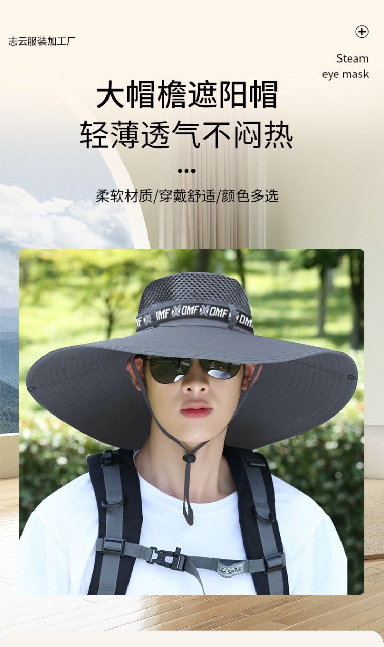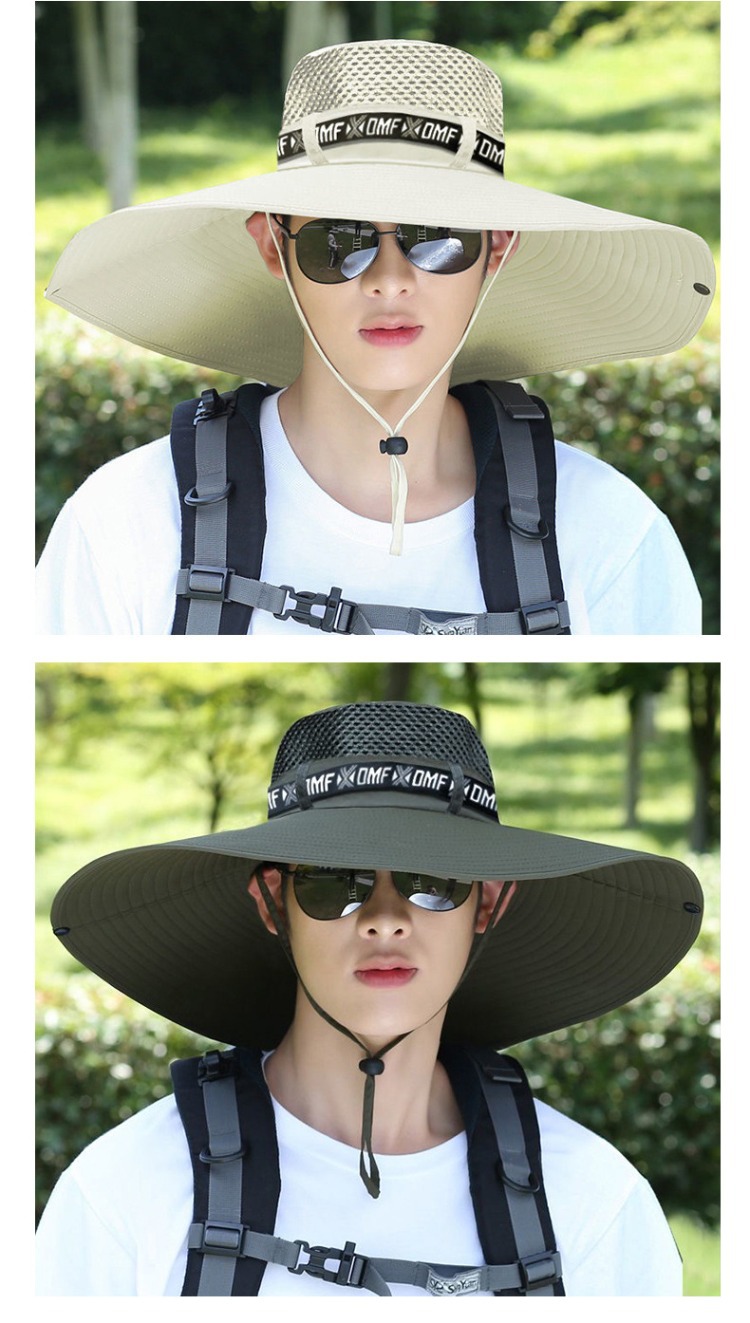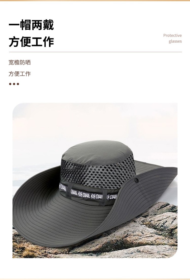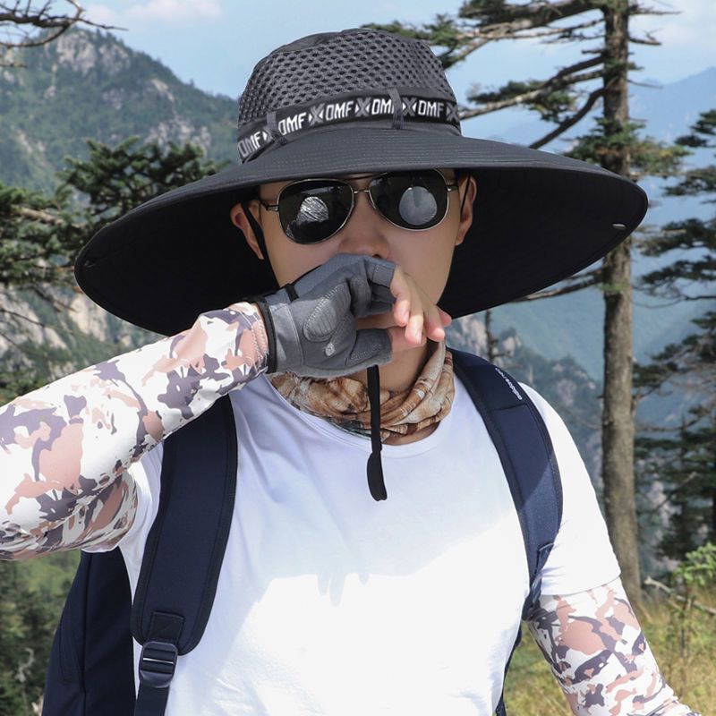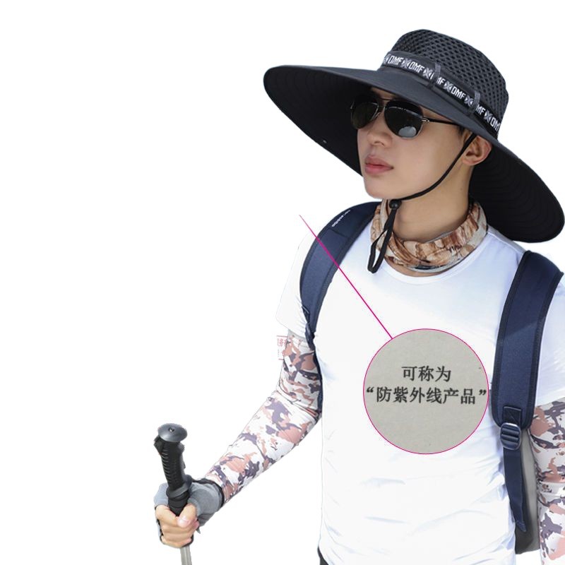 新遮阳帽男夏季户外防晒面罩钓鱼太阳帽大檐透气草帽凉帽渔夫帽