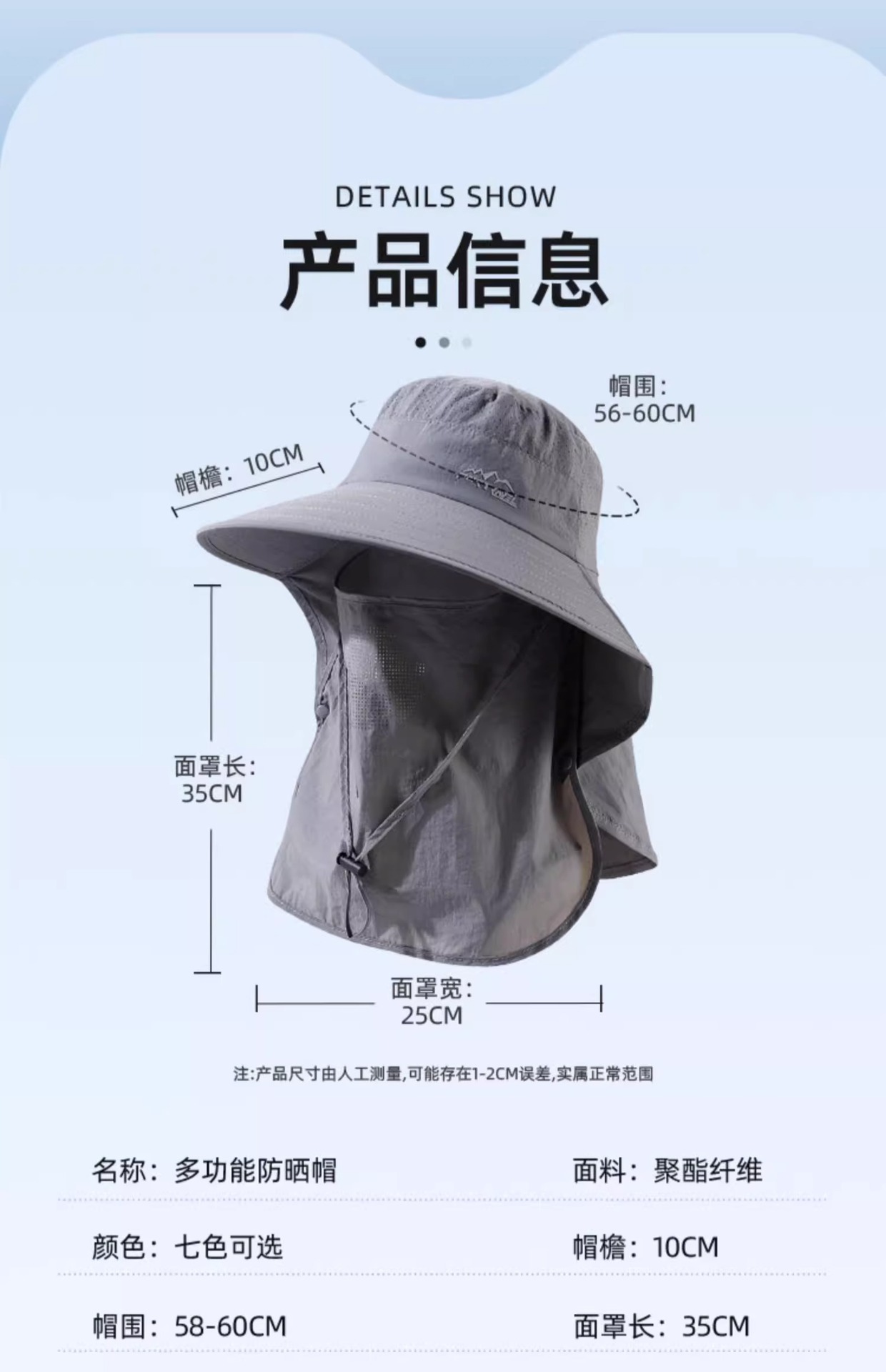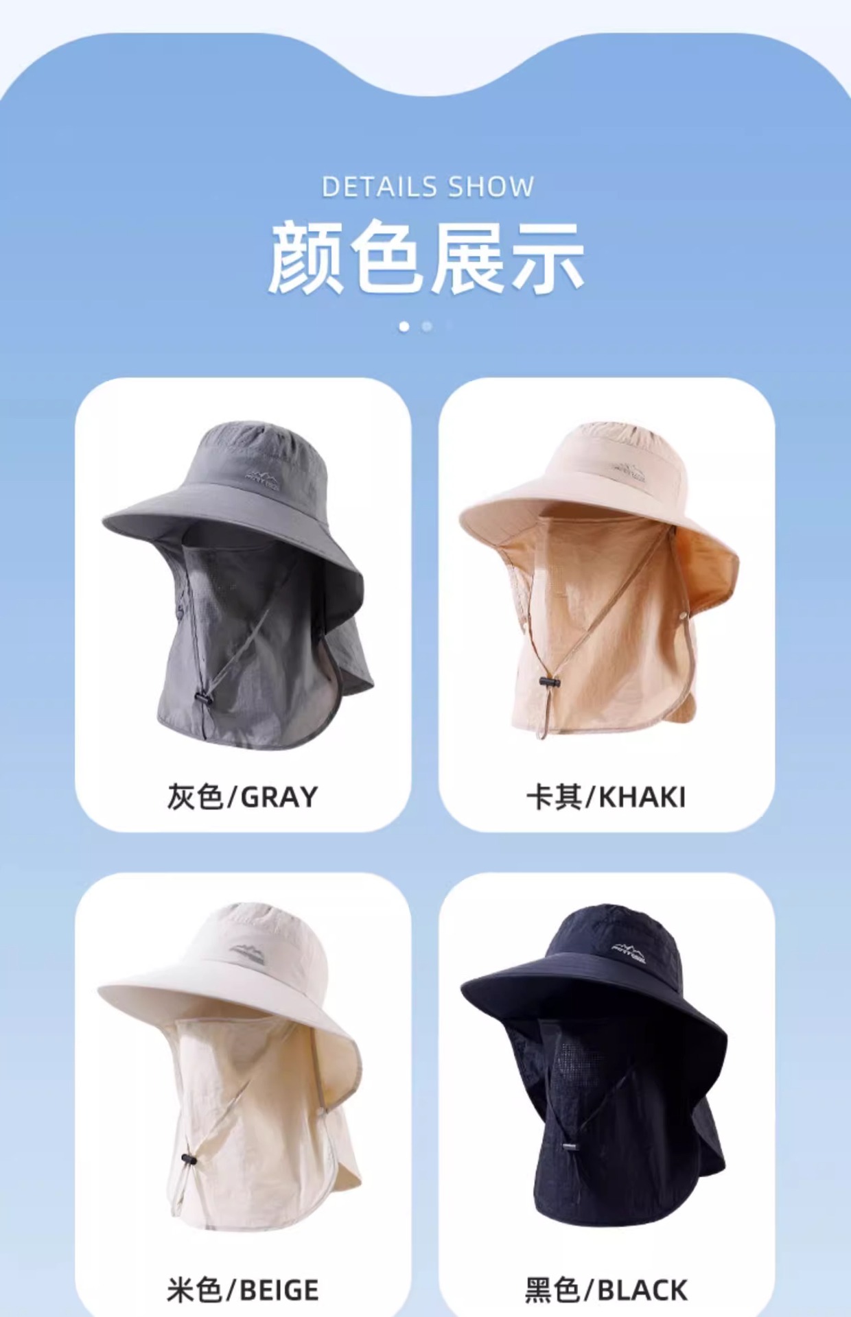 防晒遮阳帽男女夏季遮全脸面罩户外登山太阳帽防紫外线钓鱼渔夫帽