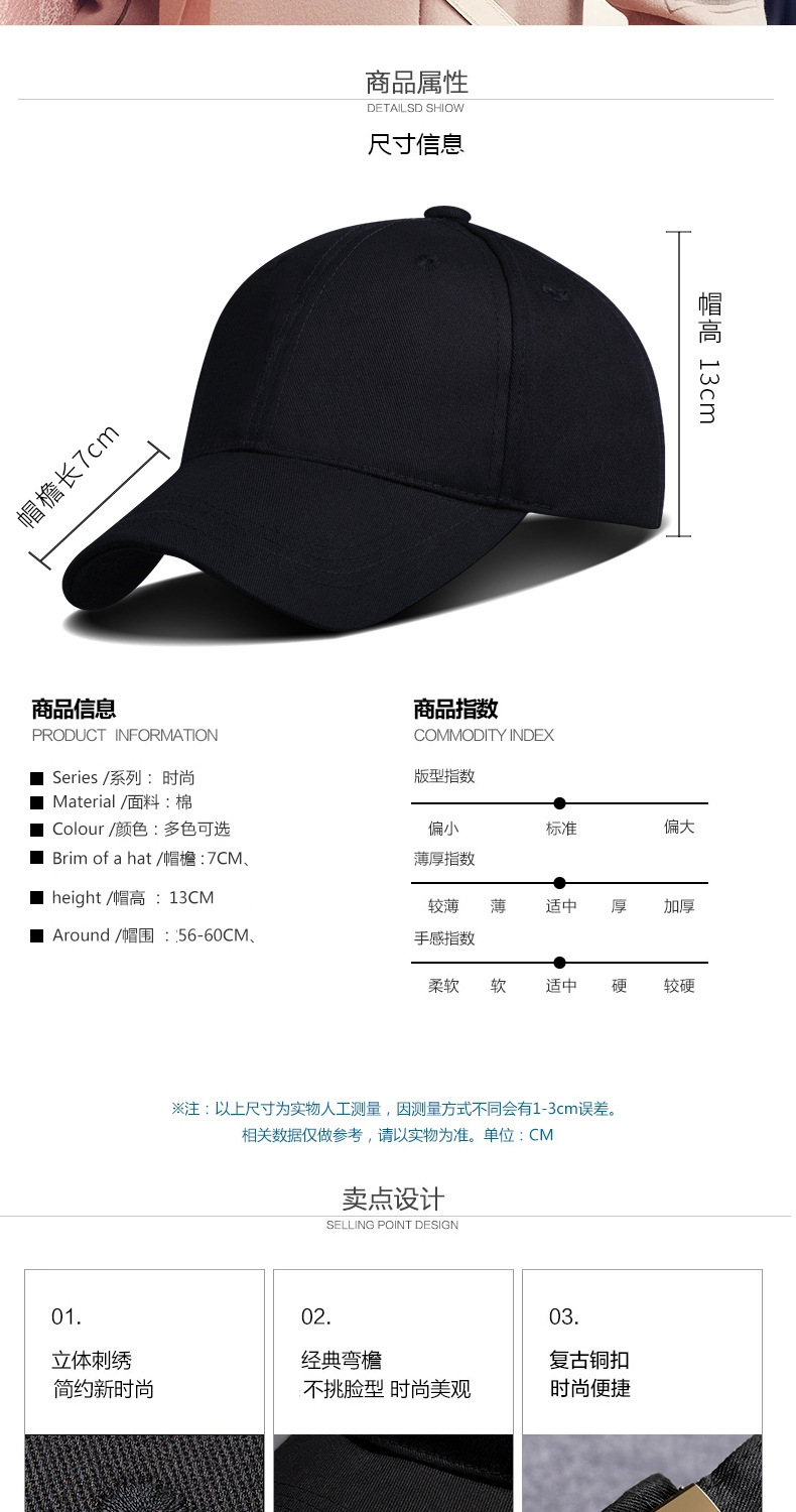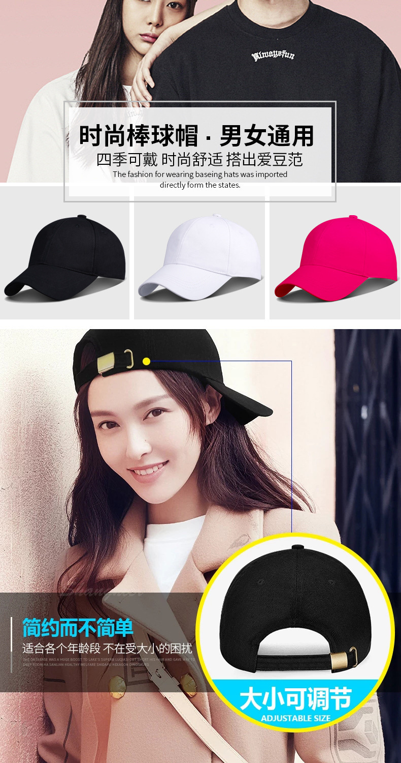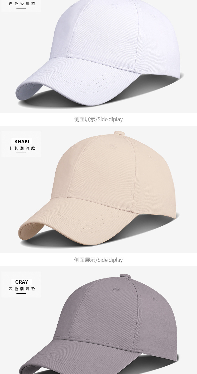 高品质升级水洗棉硬顶棒球帽男大头围帽子防晒遮阳鸭舌帽韩版简约