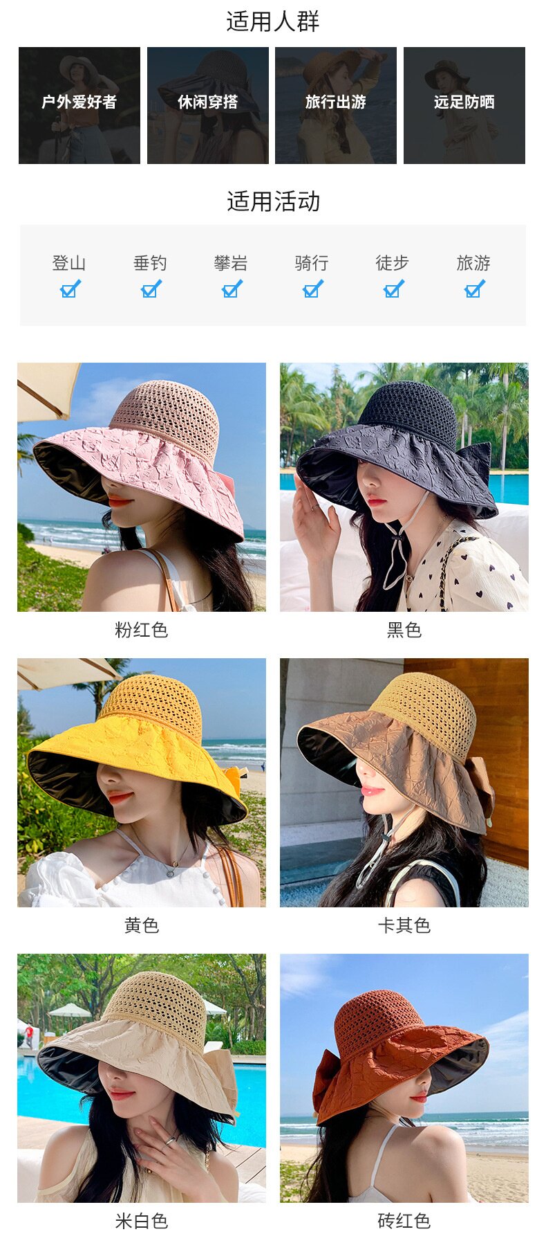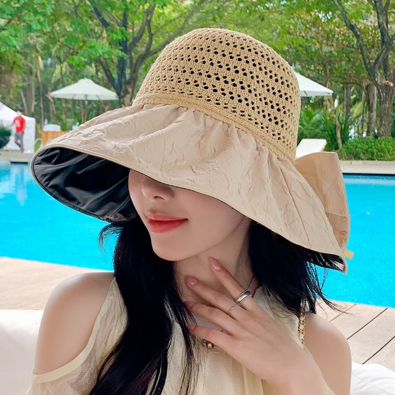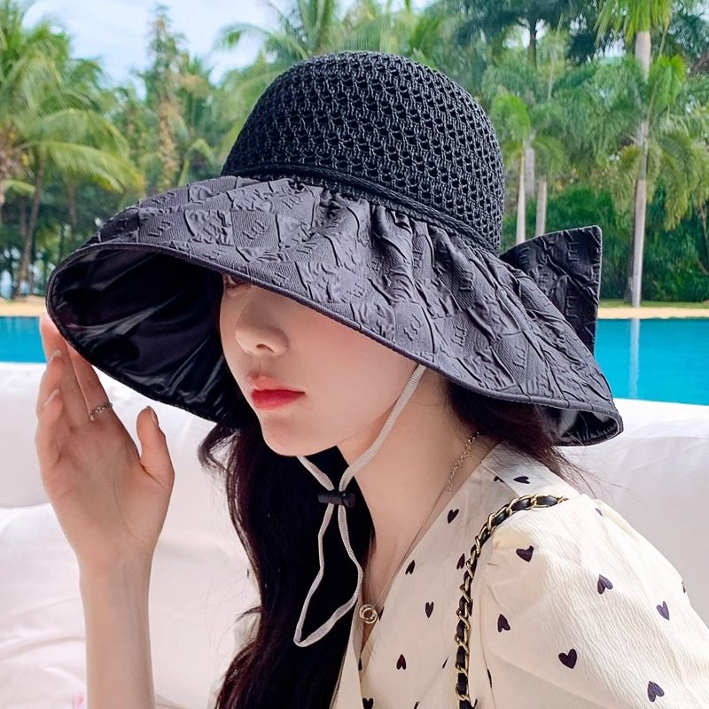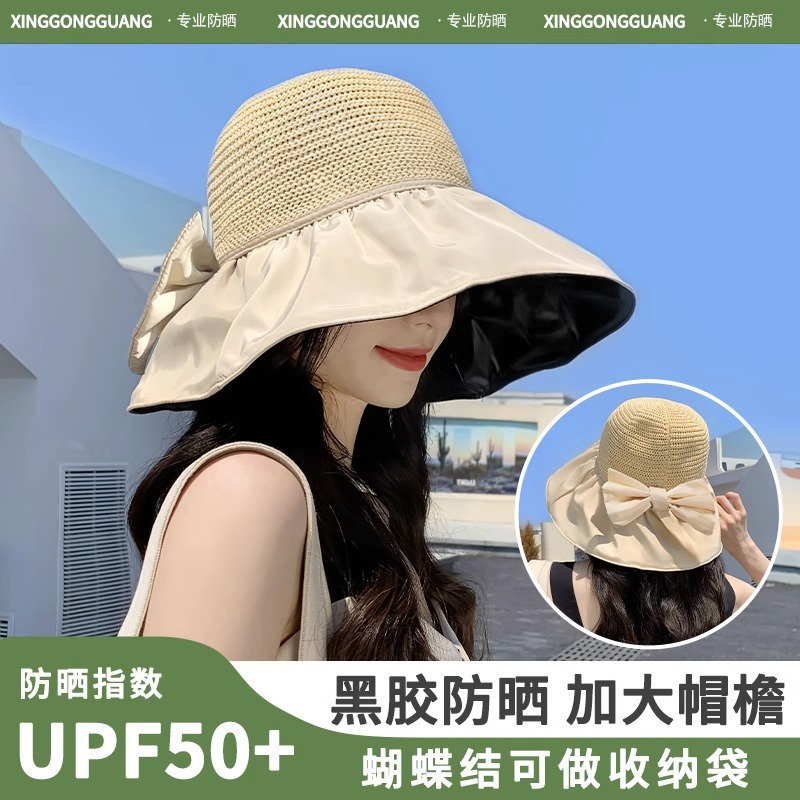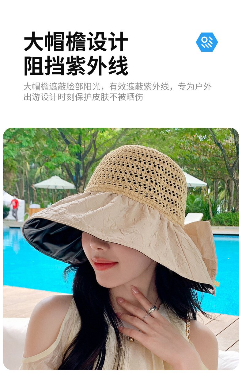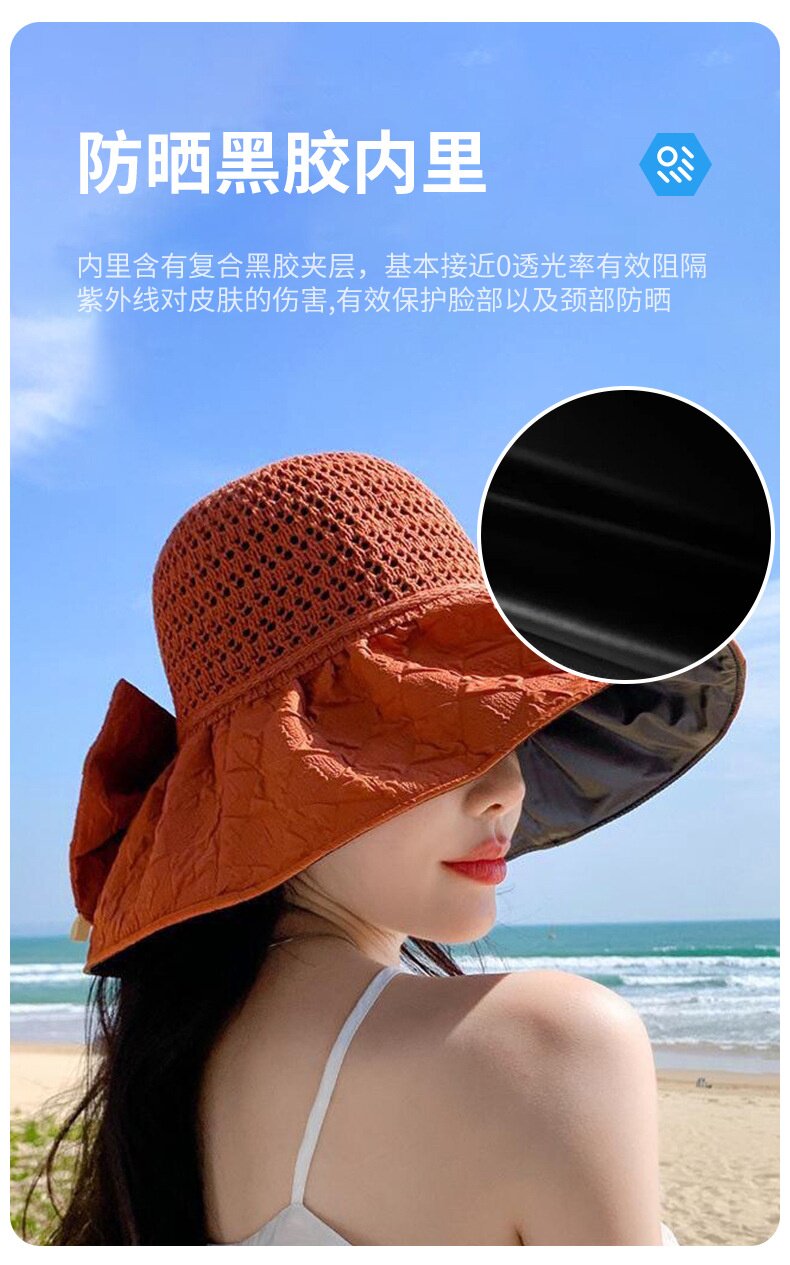 黑胶遮阳帽女防晒防紫外线海边沙滩渔夫帽大脸显脸小大帽檐可叠