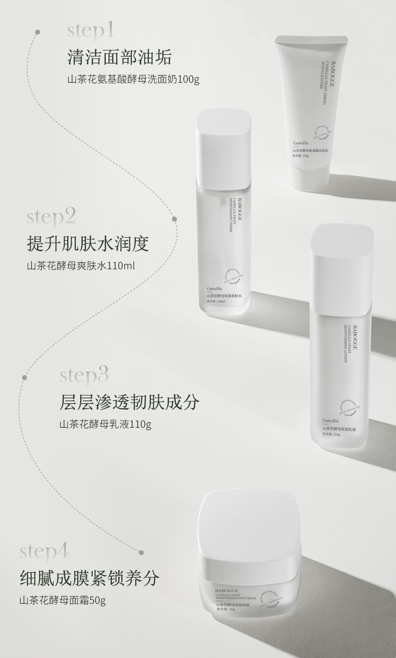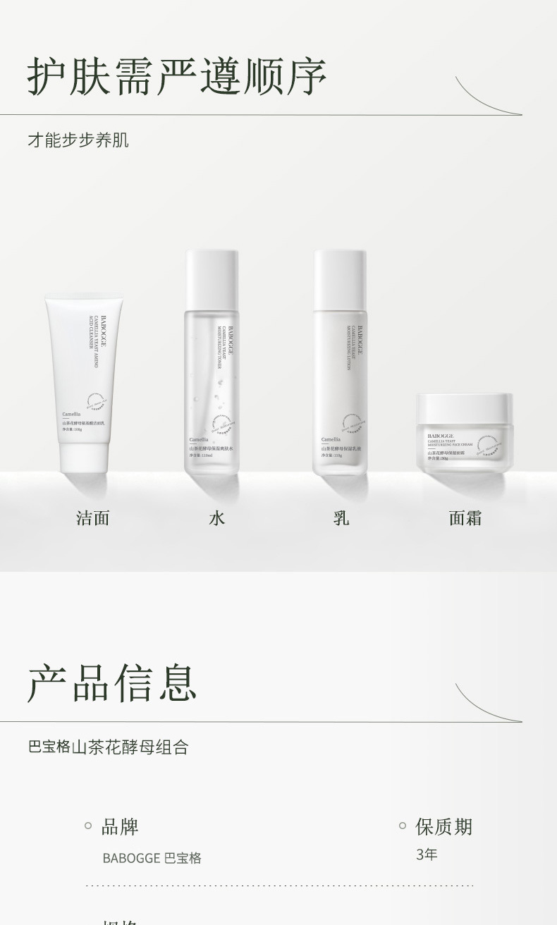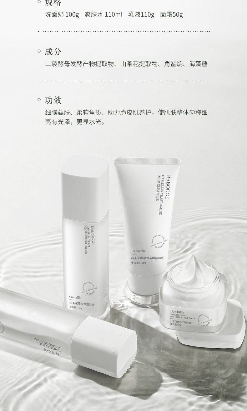 巴宝格山茶花酵母爽肤水乳液面霜洗面奶保湿水滋润补水清爽护肤品