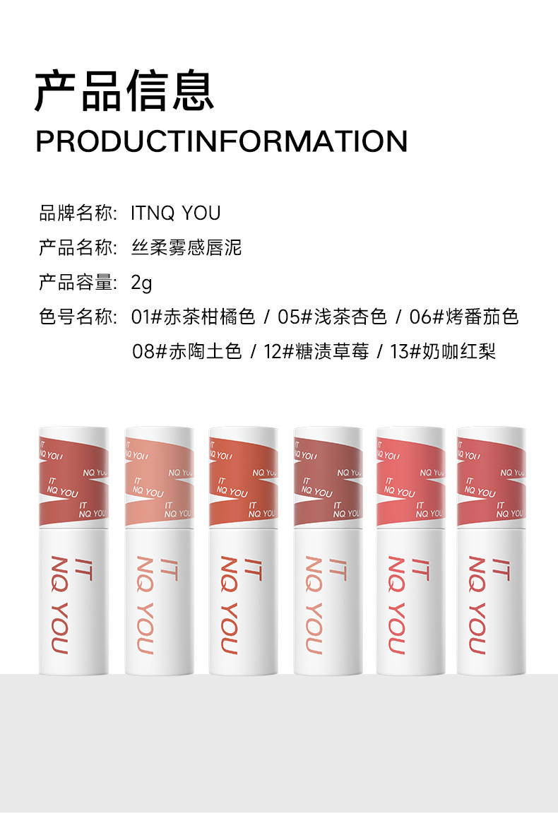 ITNQYOU丝柔雾感唇泥雾面哑光丝绒口红不易掉色显白唇釉唇彩学生