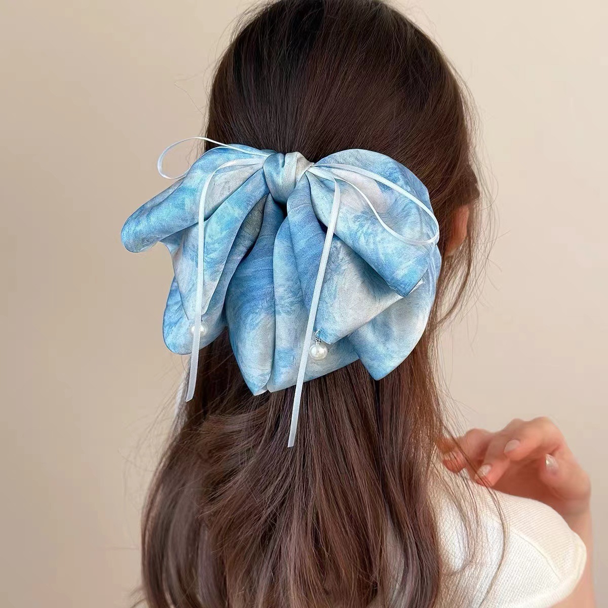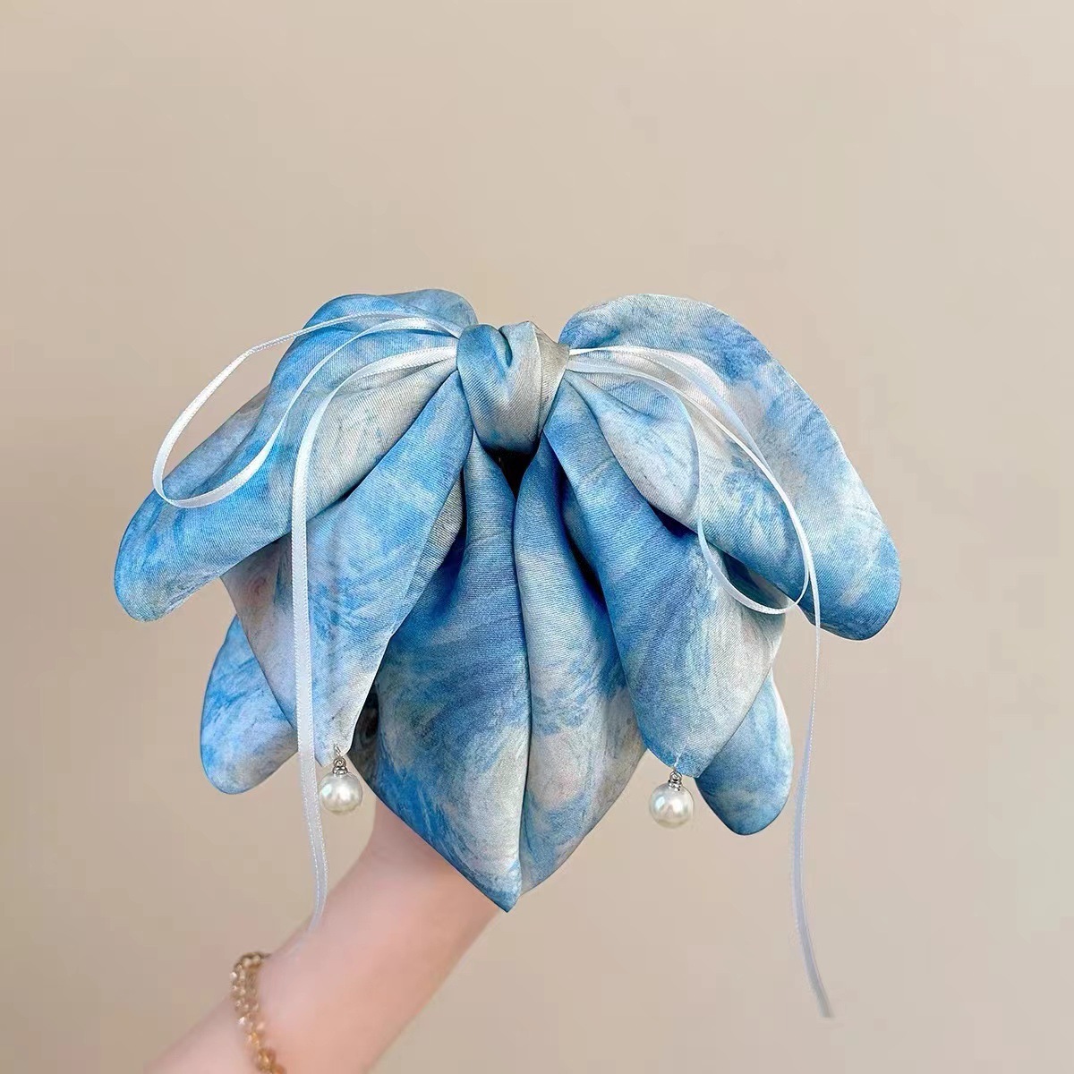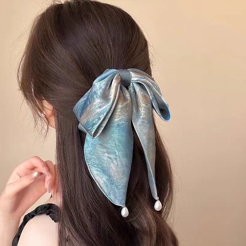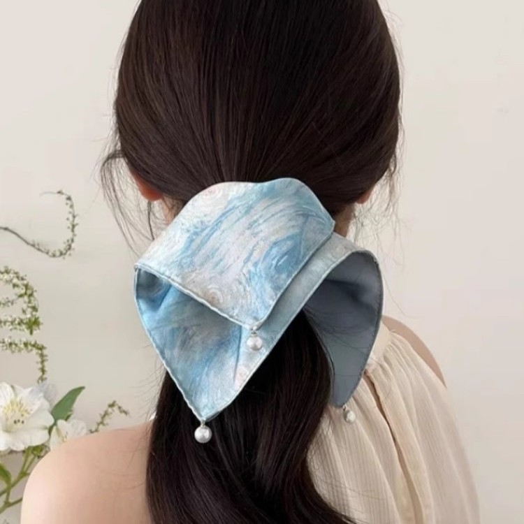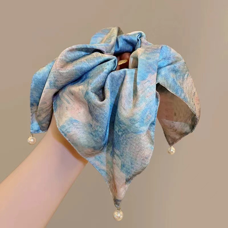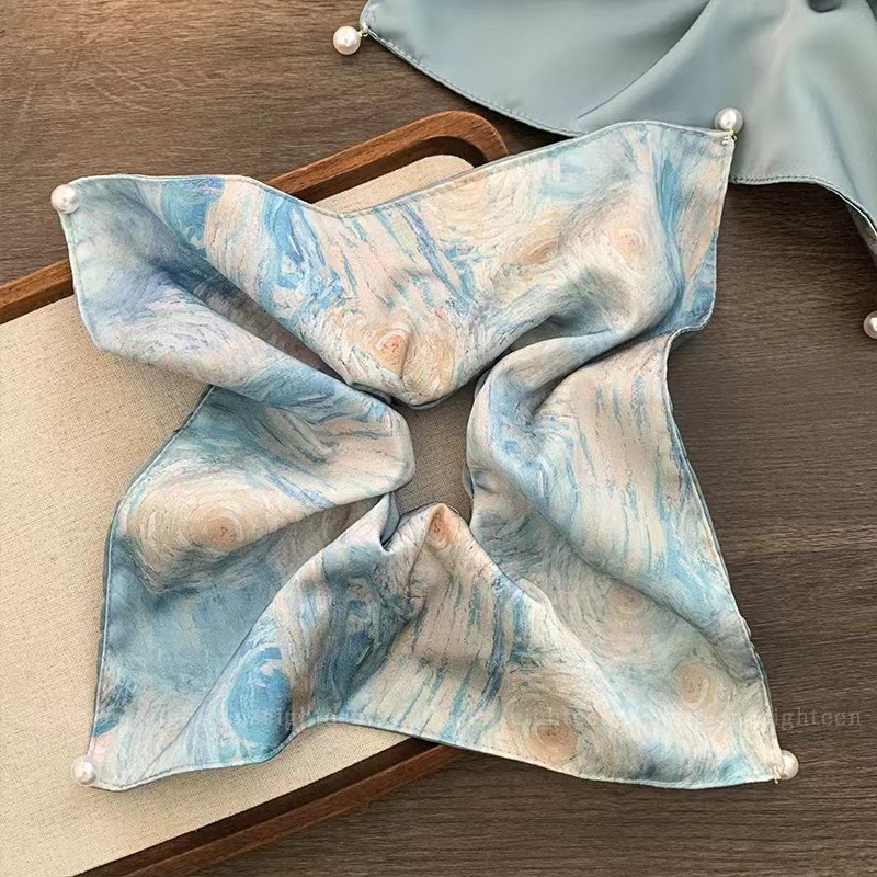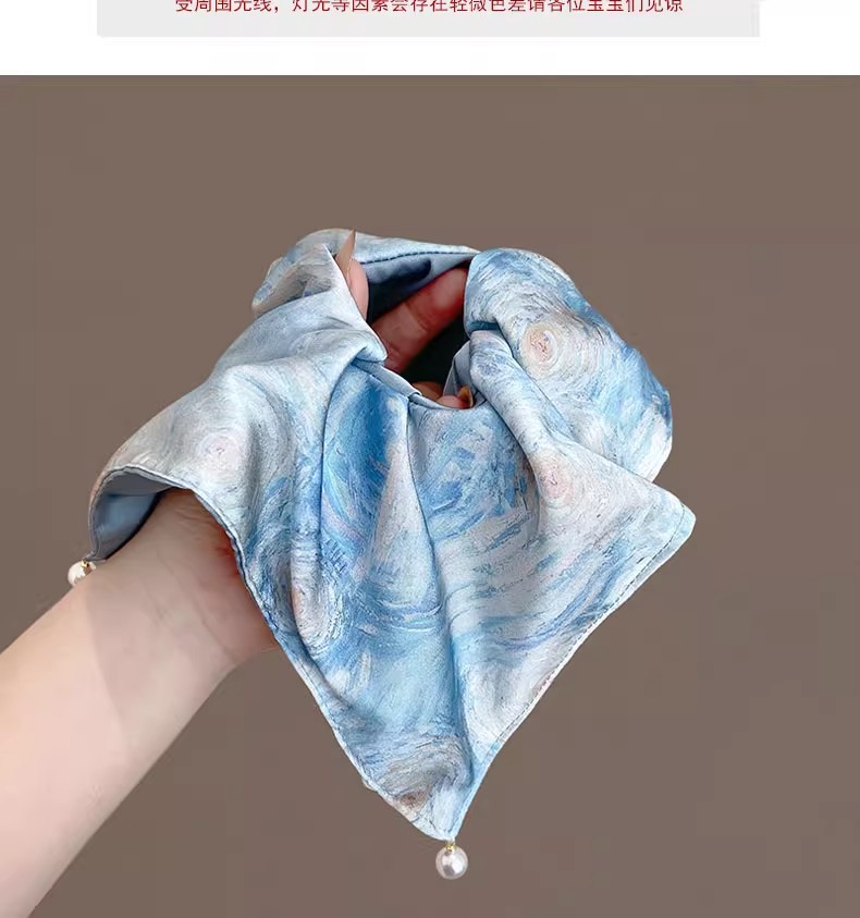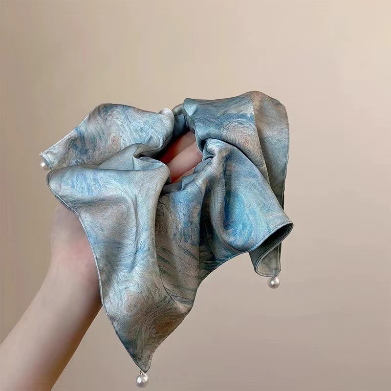 梵高星空方巾发圈女高级感油画风缎面方巾大肠发圈头绳古风马尾发