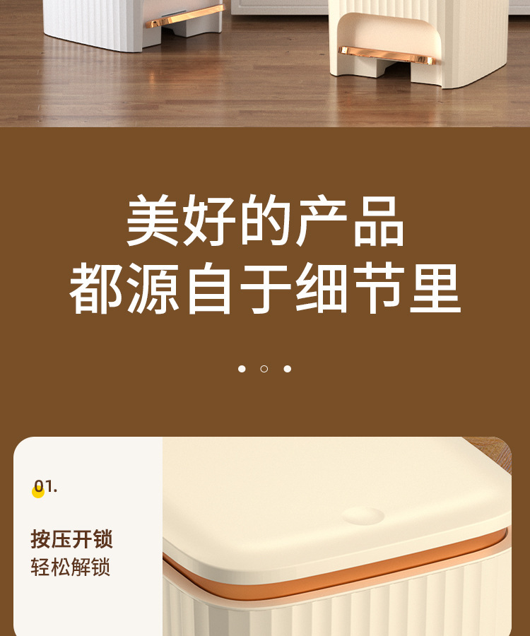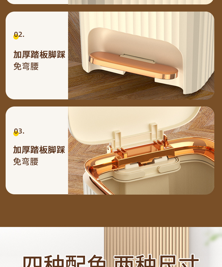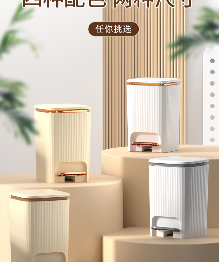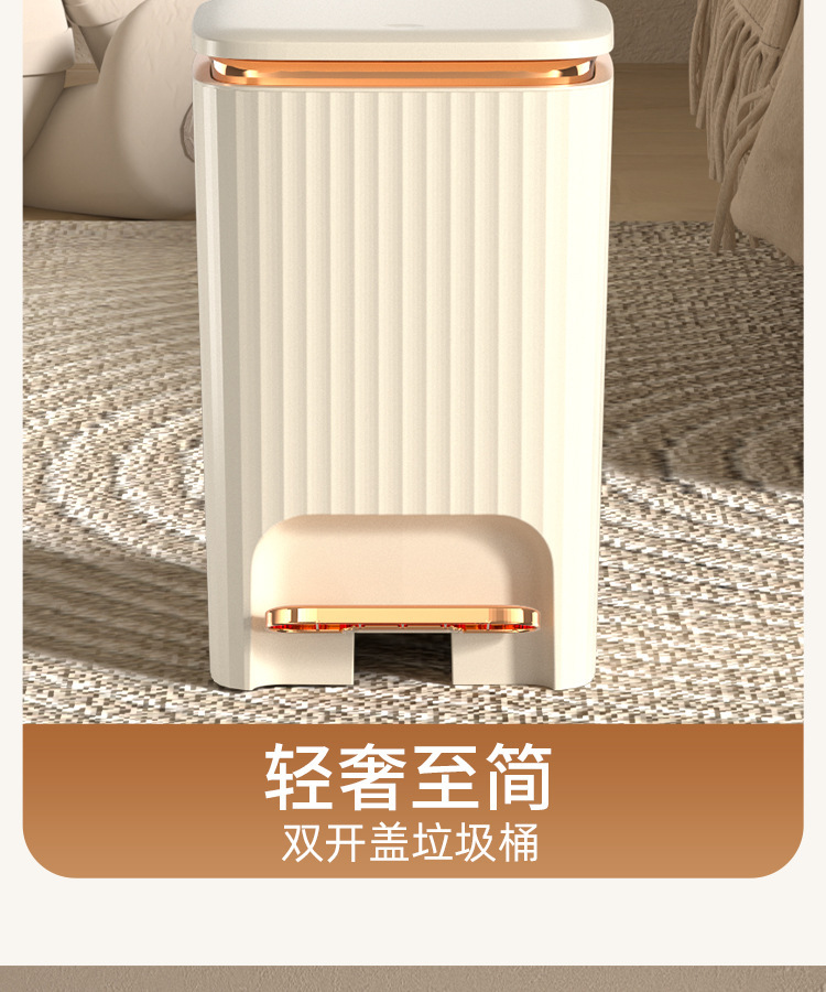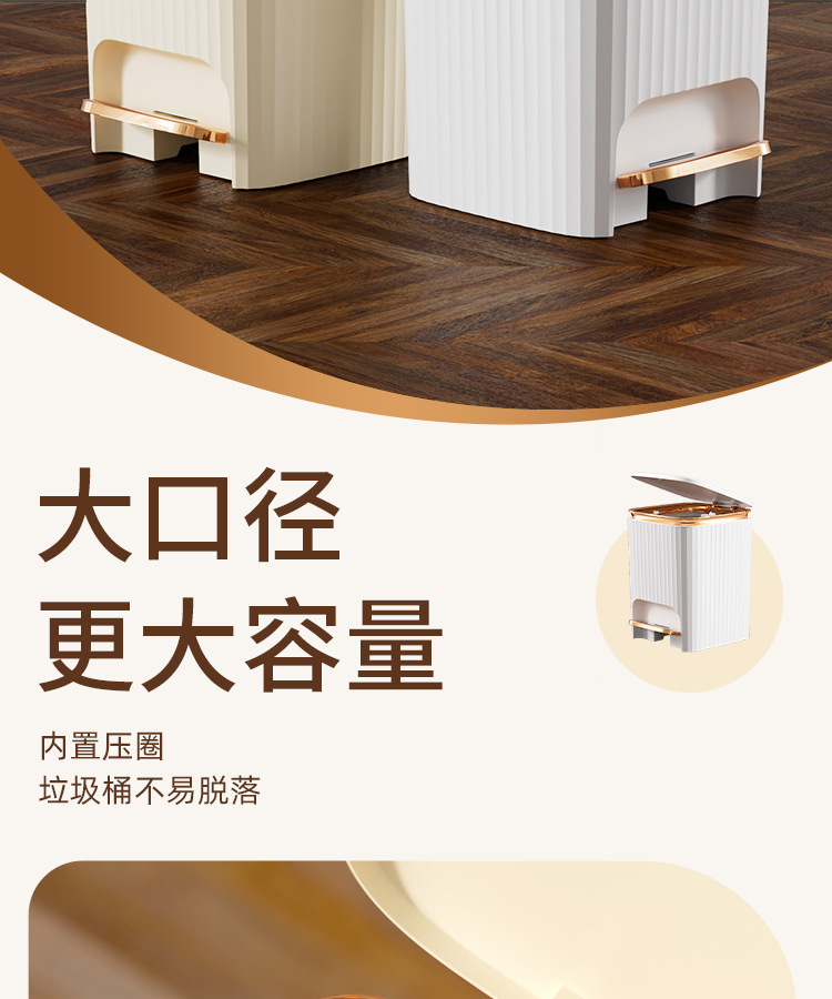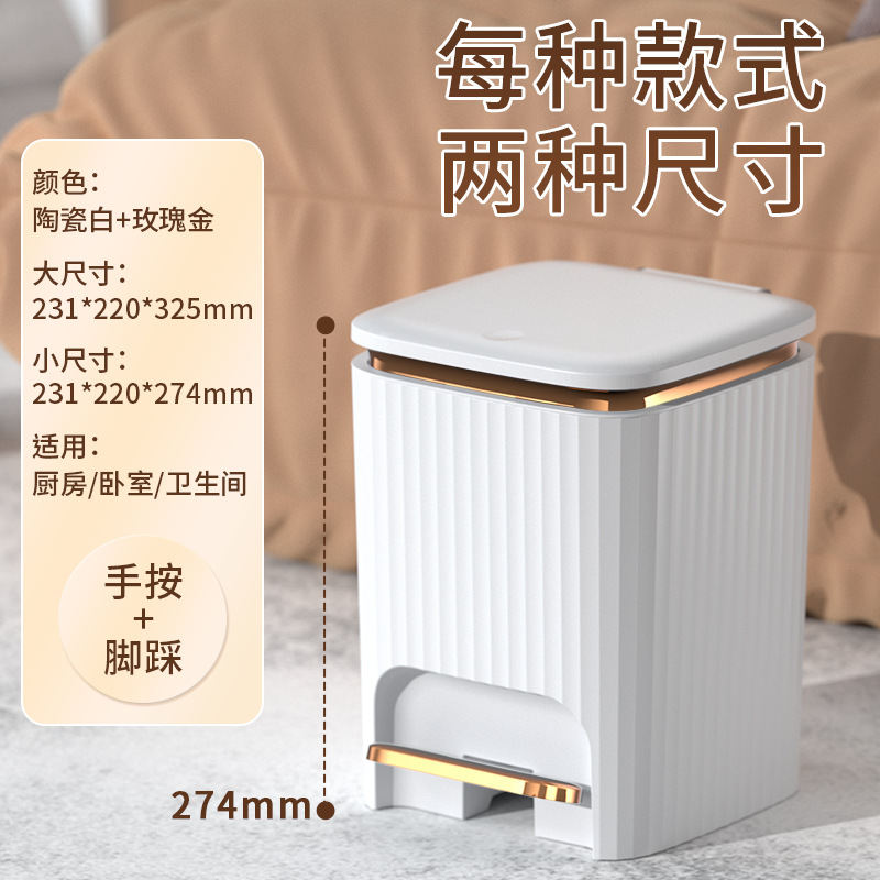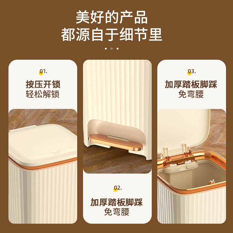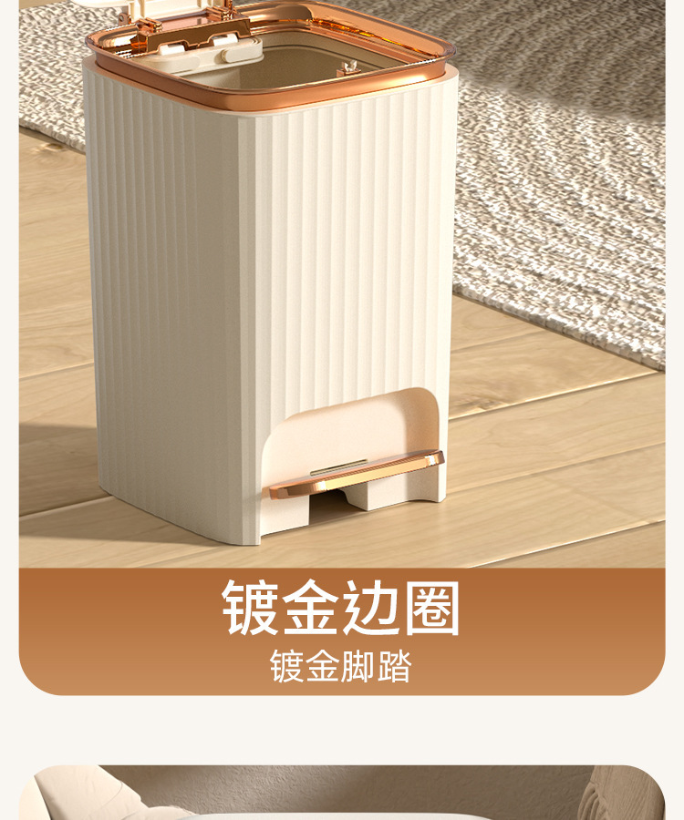 家用新款ins高颜值镀金带盖垃圾桶 卧室多功能按压大容量脚踏纸篓