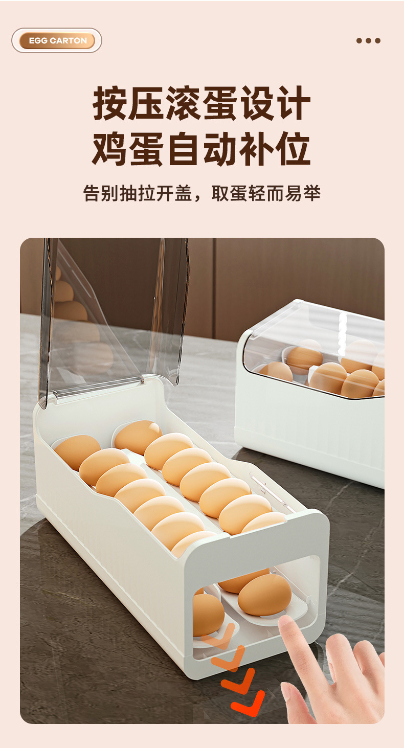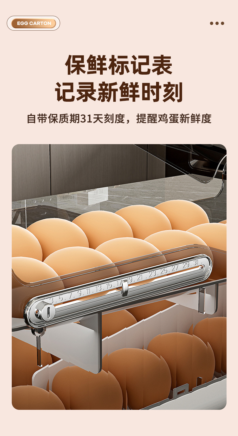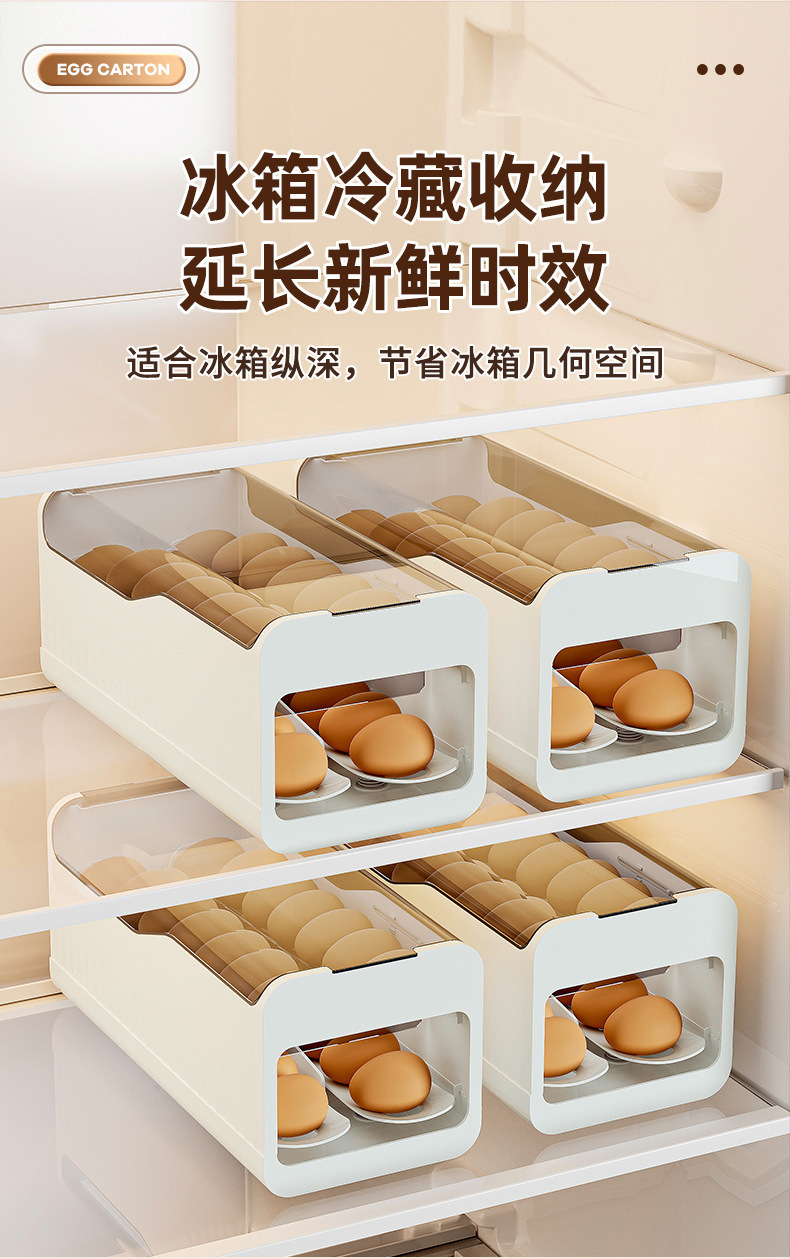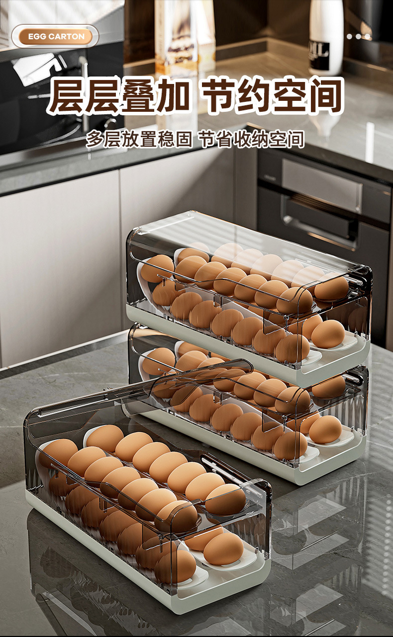 鸡蛋盒滑梯式滚蛋器抽屉式双层鸡蛋架冰箱侧门鸡蛋保鲜收纳盒厨房