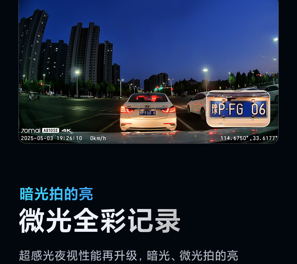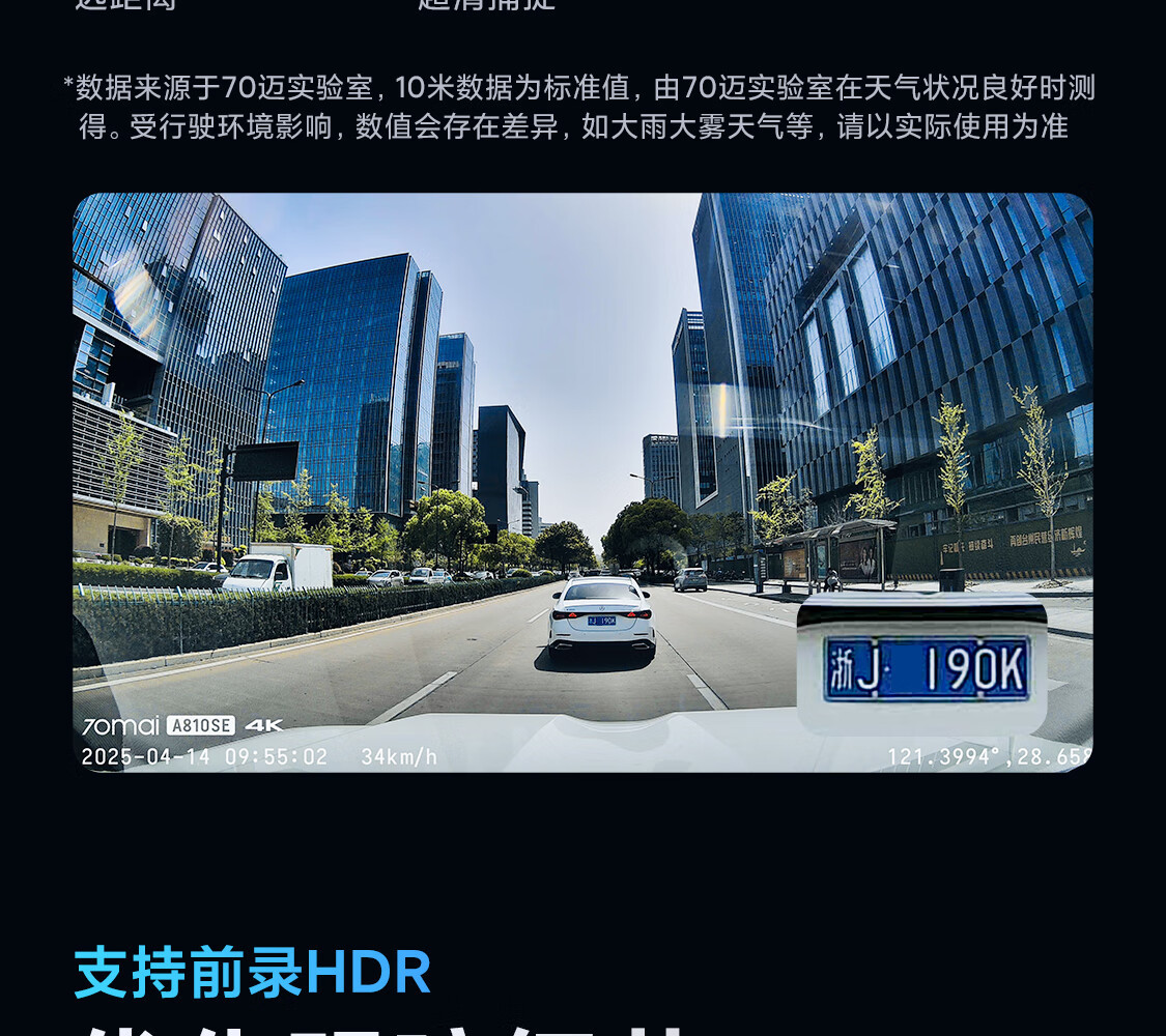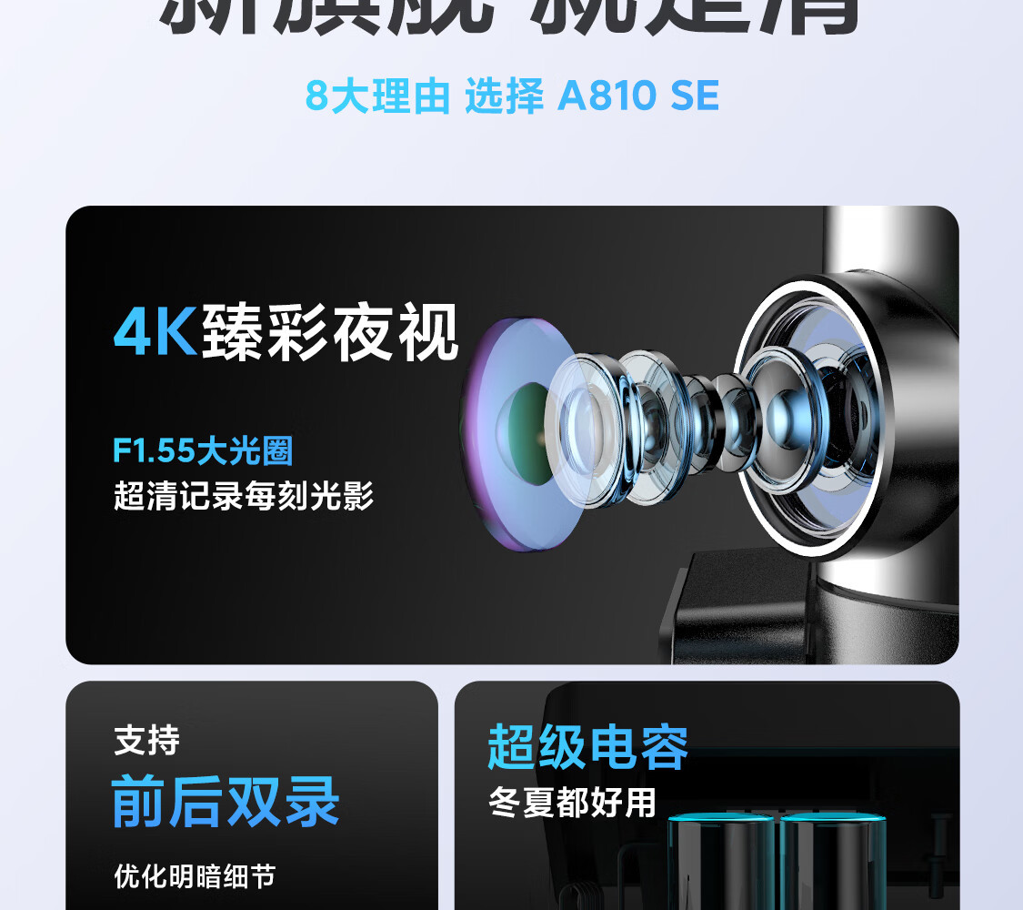 70迈行车记录仪A810SE4K高清内置GPS电子狗前后双录WIFI夜视