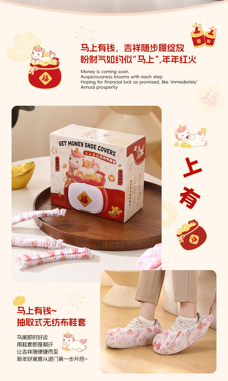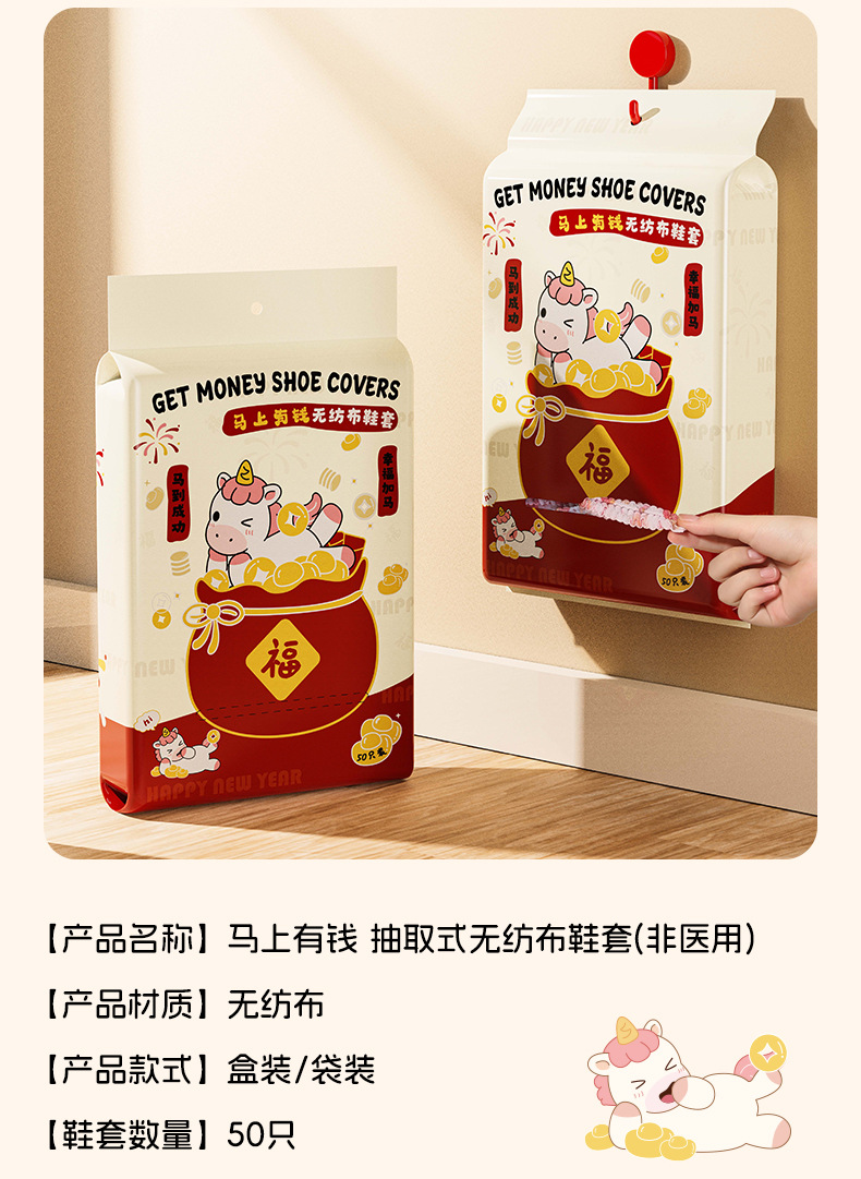 【原创】新款马上有钱鞋套家用加厚耐磨款室内客厅通用一次性鞋套