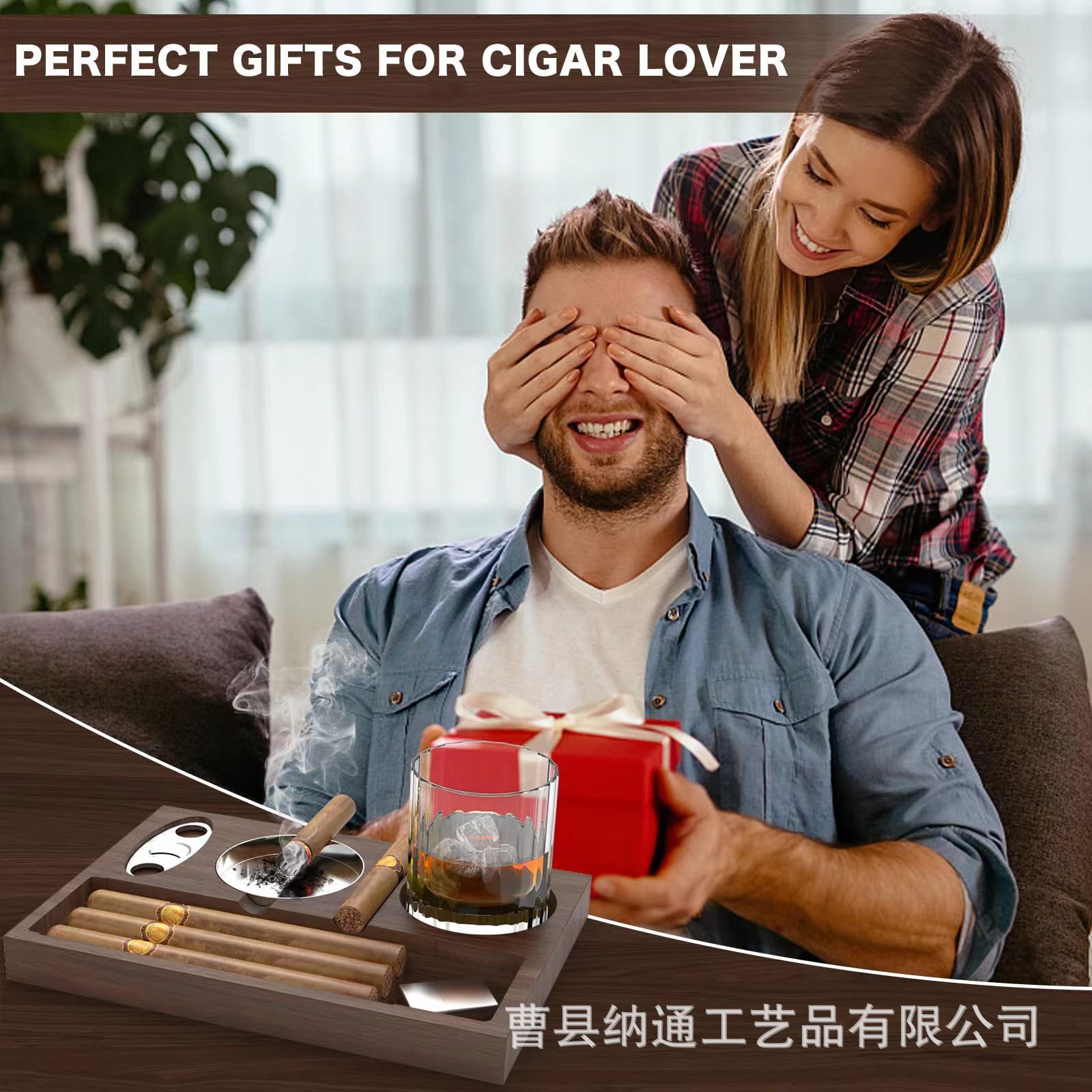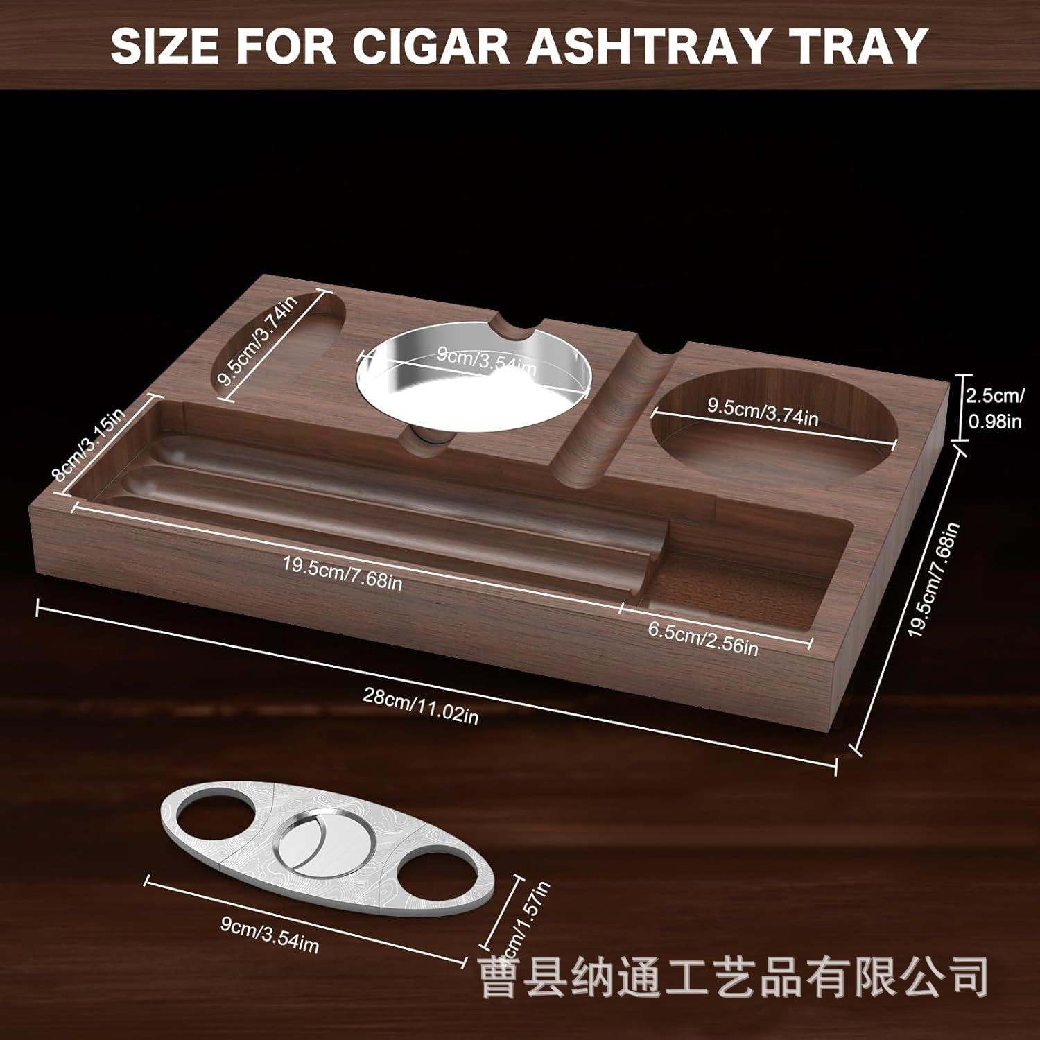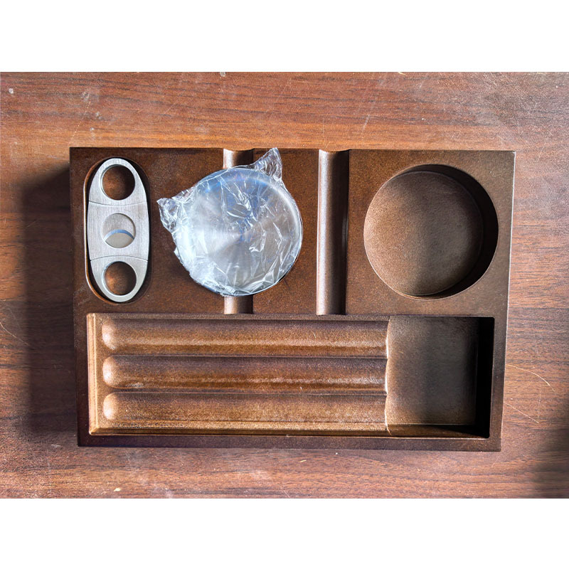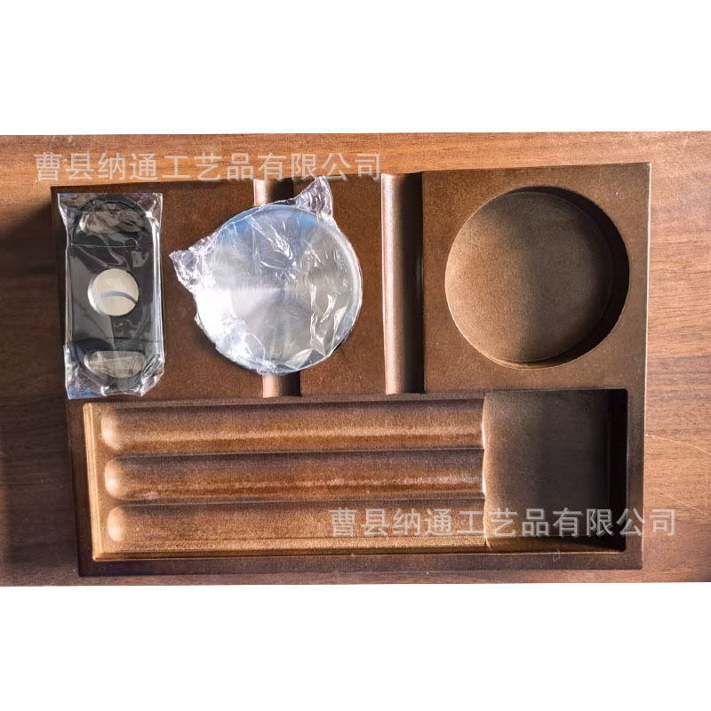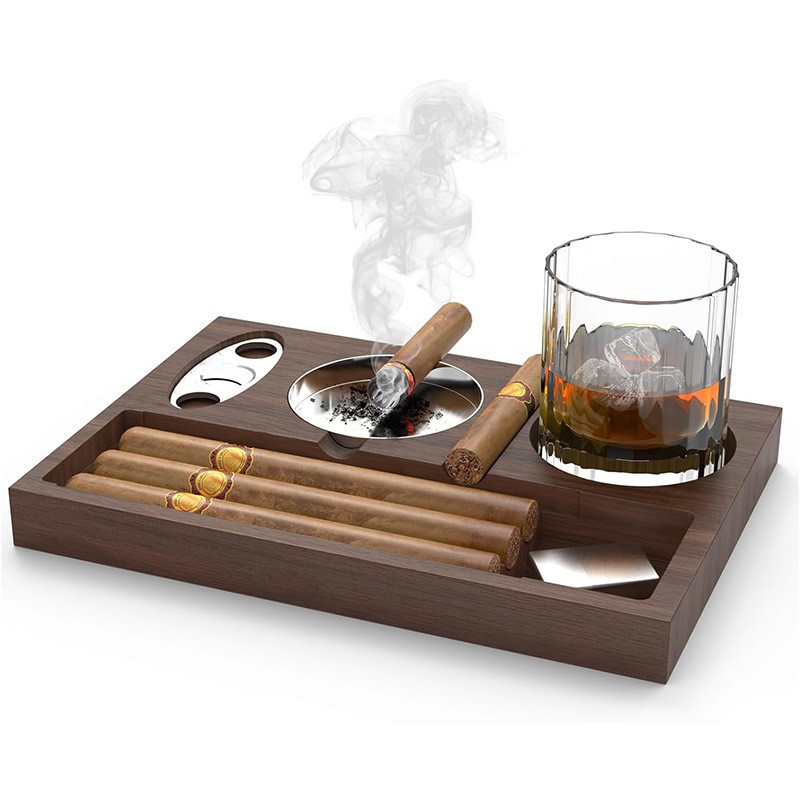 木制烟灰缸 桌面雪茄托盘 雪茄收纳盘带酒杯架 户外烟灰缸装饰盘