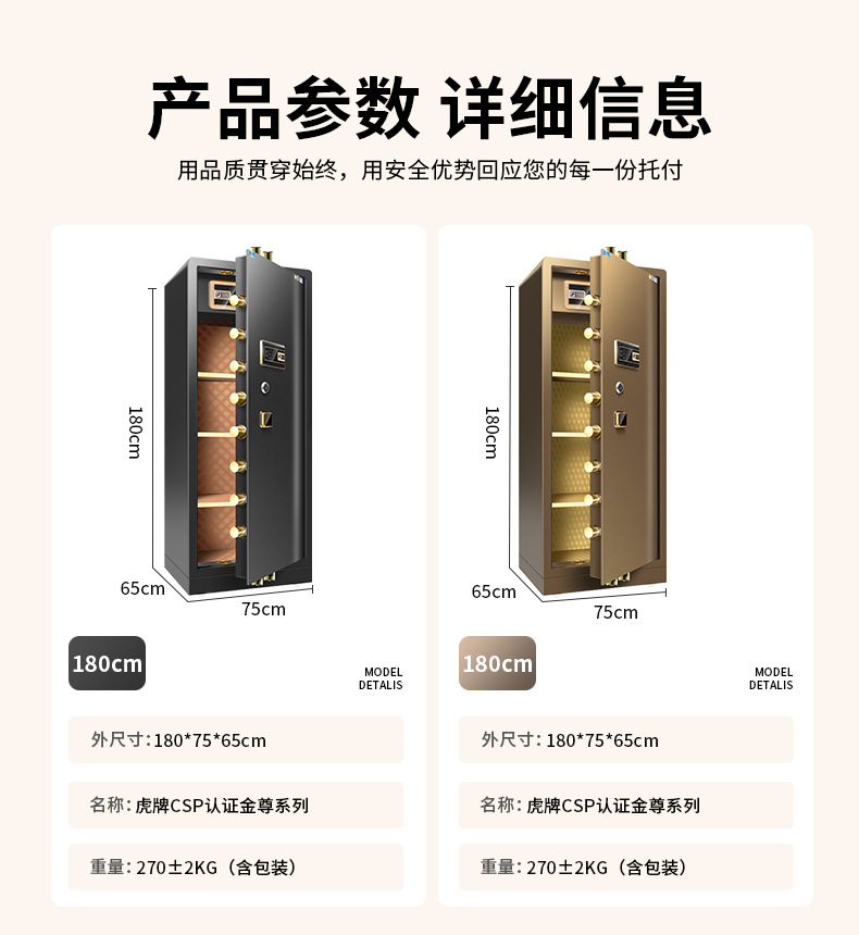 虎牌指纹密码180cm全钢保险箱 CSP认证家用办公酒店保险柜定 制