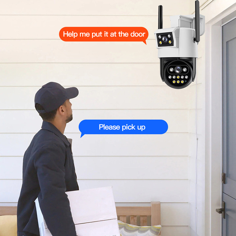 定制手机远程360无死角高清夜视户外双画面监控摄像头4G无网国外