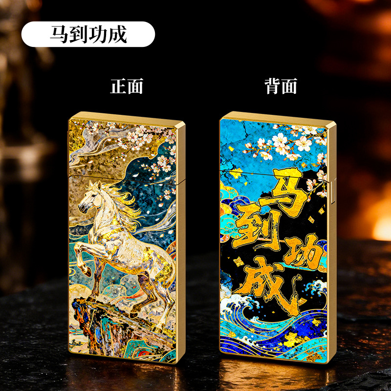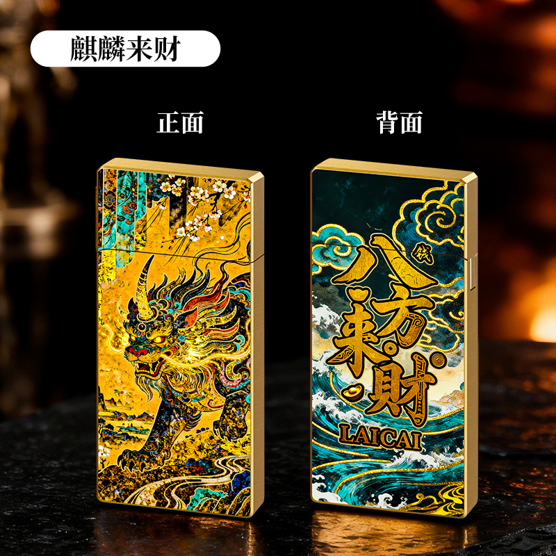跨境热销爆款双面神龙鎏金彩绘创意高档煤油打火机超薄新款送礼