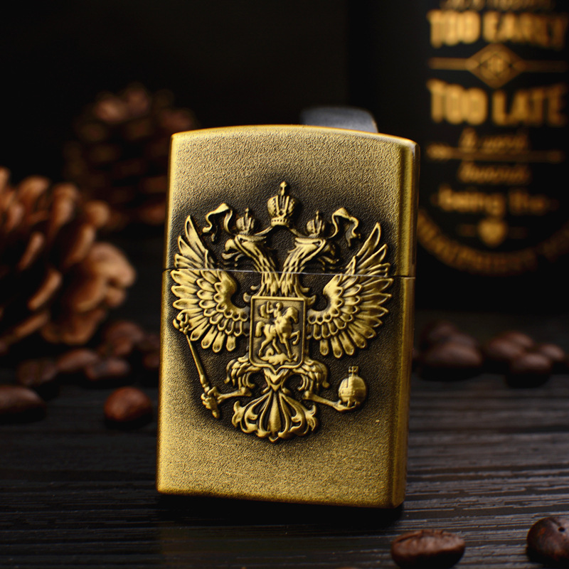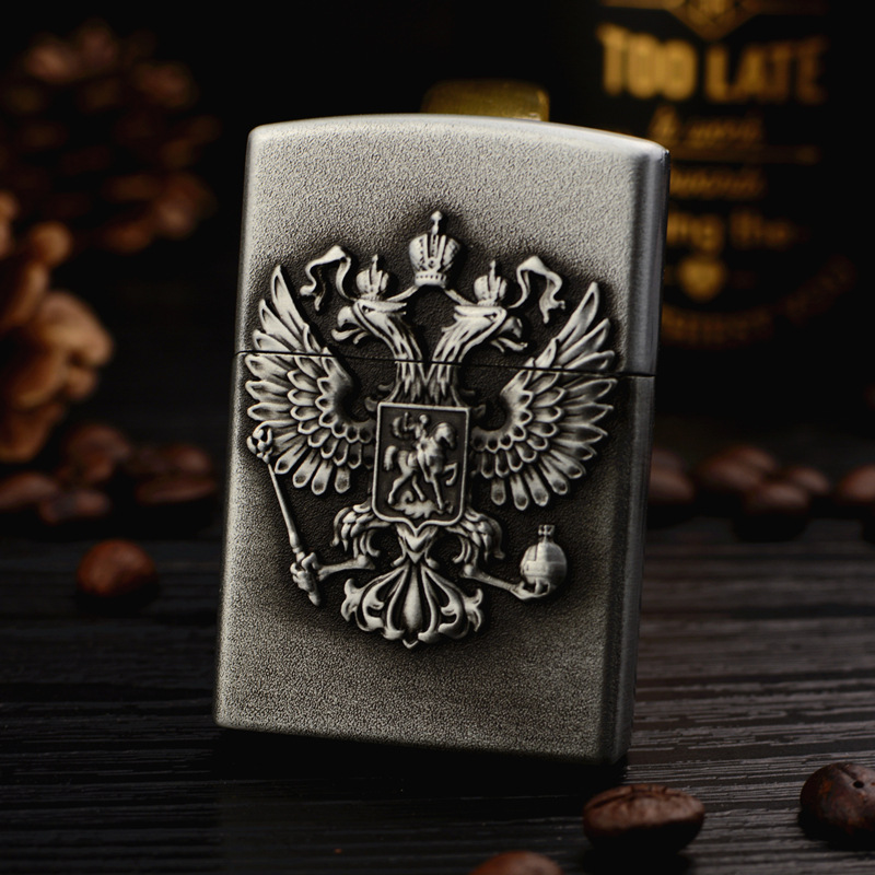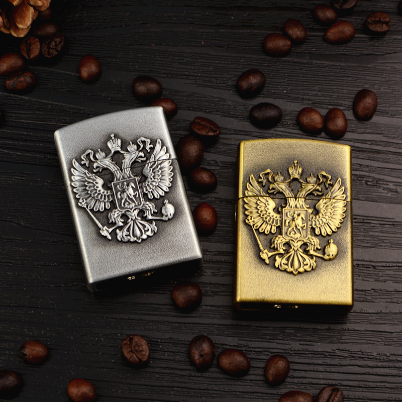 外贸俄罗斯双头鹰仿煤油金属气体创意浮雕高档礼品明火打火机厂家