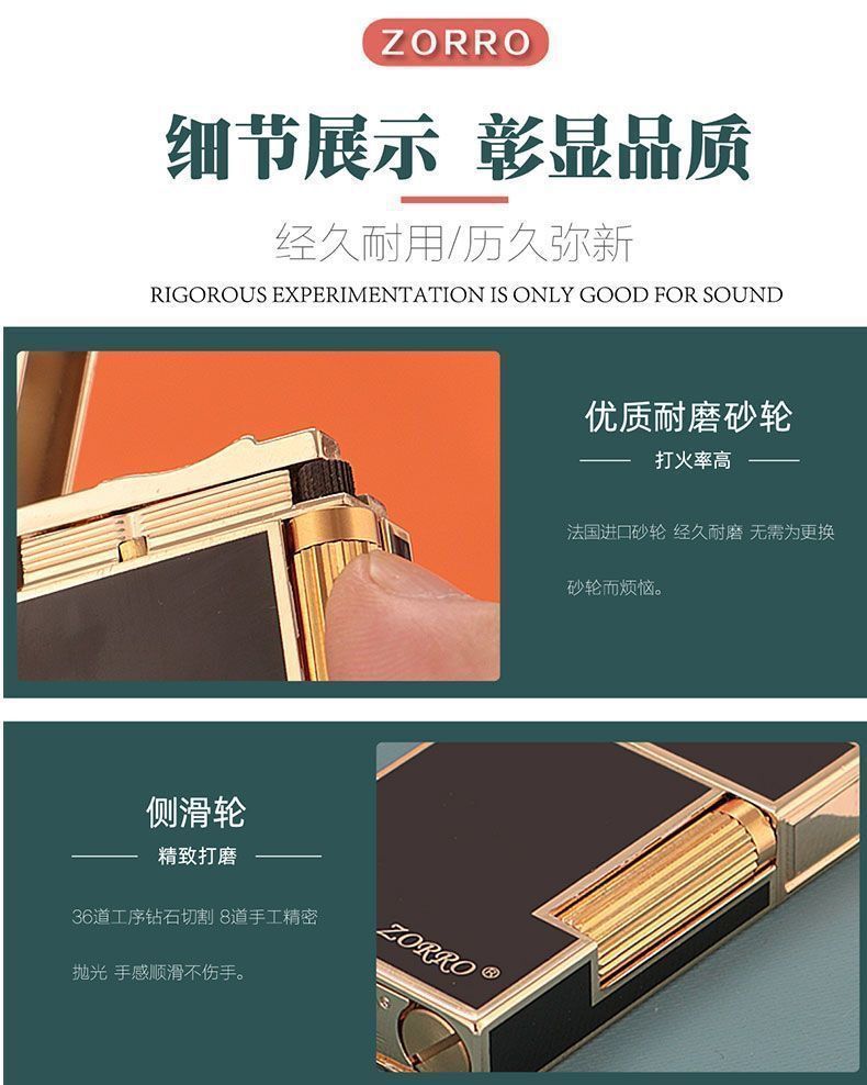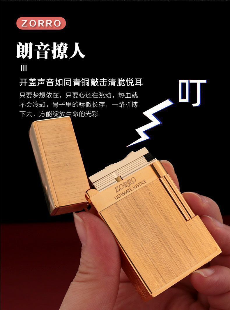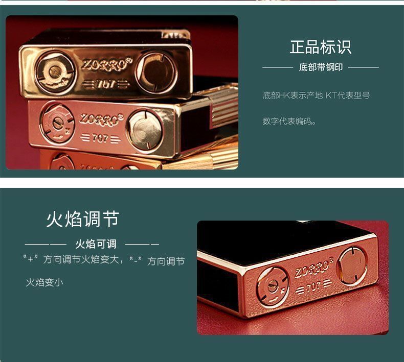 佐罗707朗声充气打火机高端钢琴音侧滑砂轮商务金属拉丝刻字正品