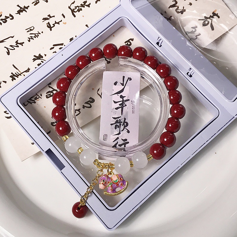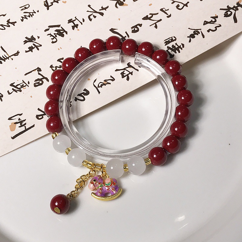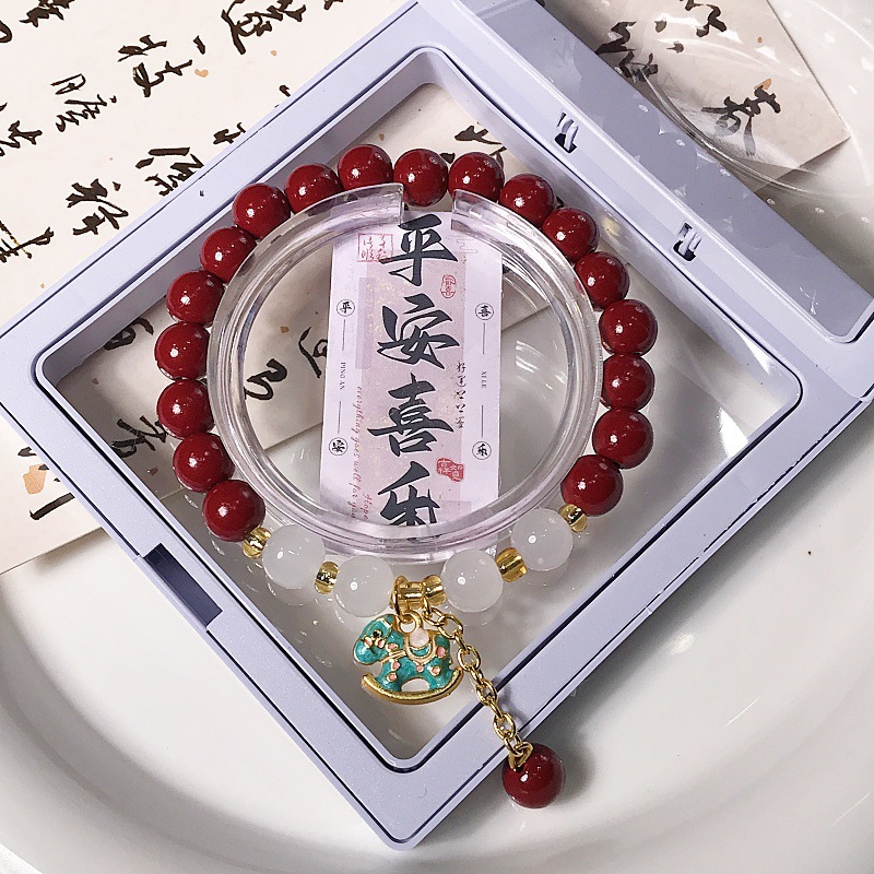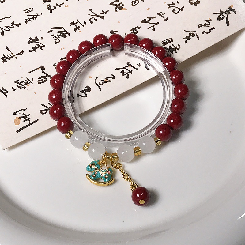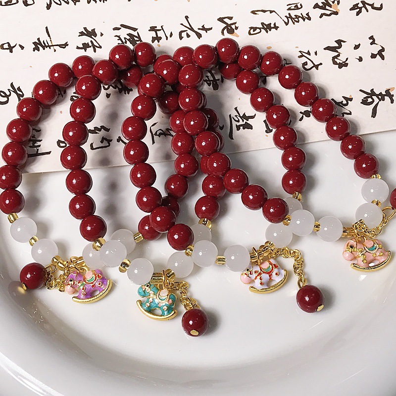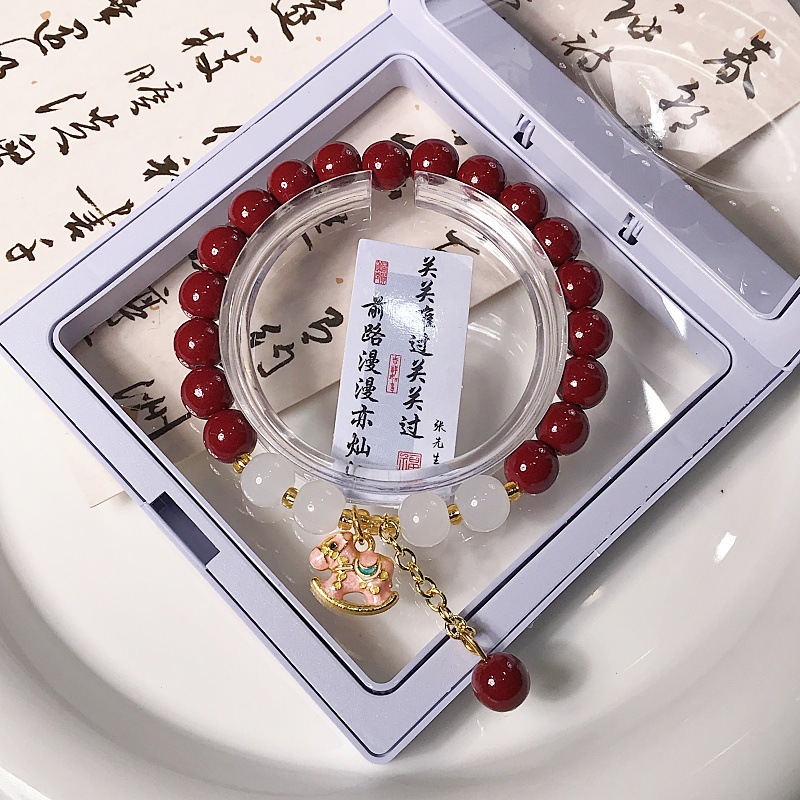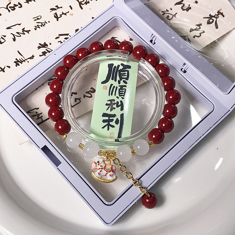 新款朱砂摇摇木马手链时尚百搭高级感学生手串景区热销手饰批发