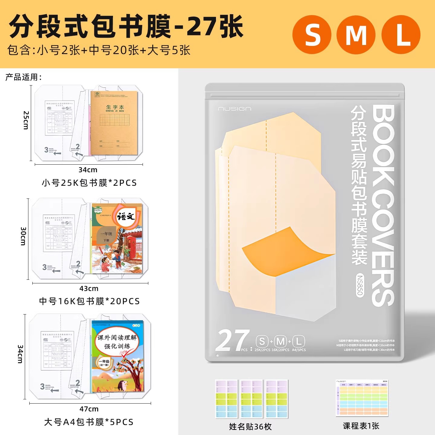 得力包书皮自粘透明磨砂包书膜包书套小学生学习用品课本保护套