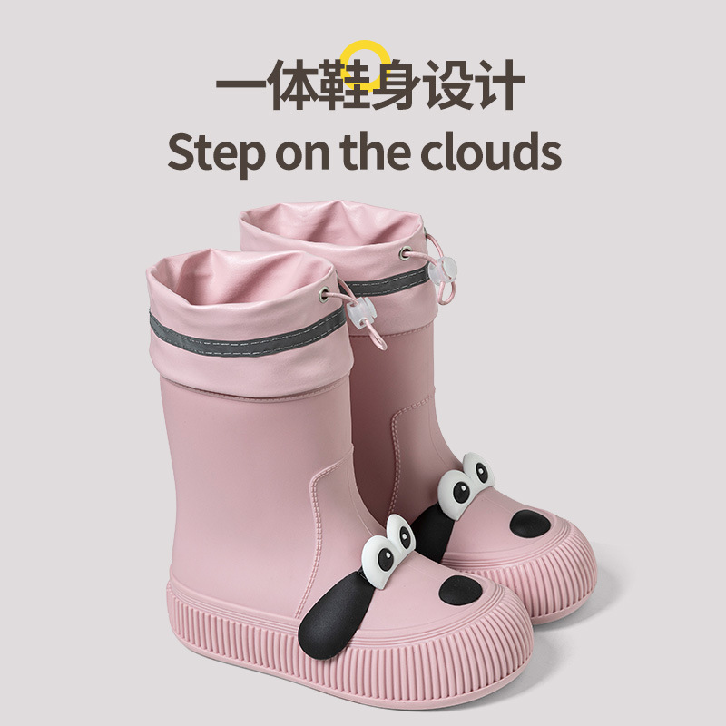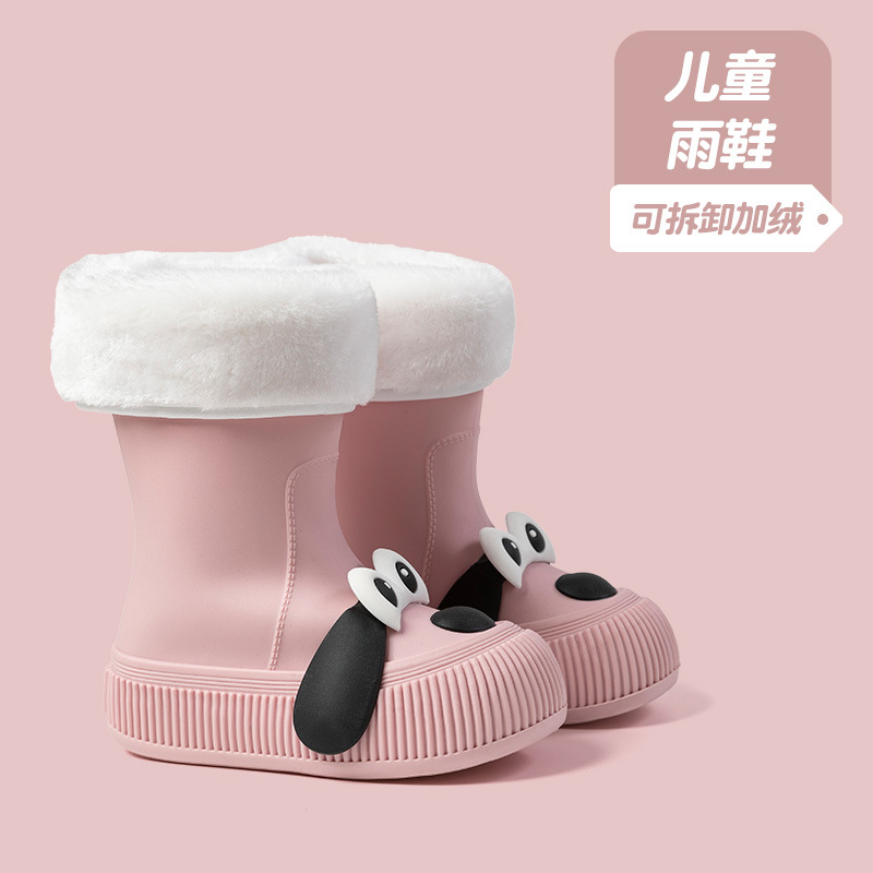 儿童雨鞋女童新款可爱卡通小狗雨靴室外防水男童四季加绒PVC软底