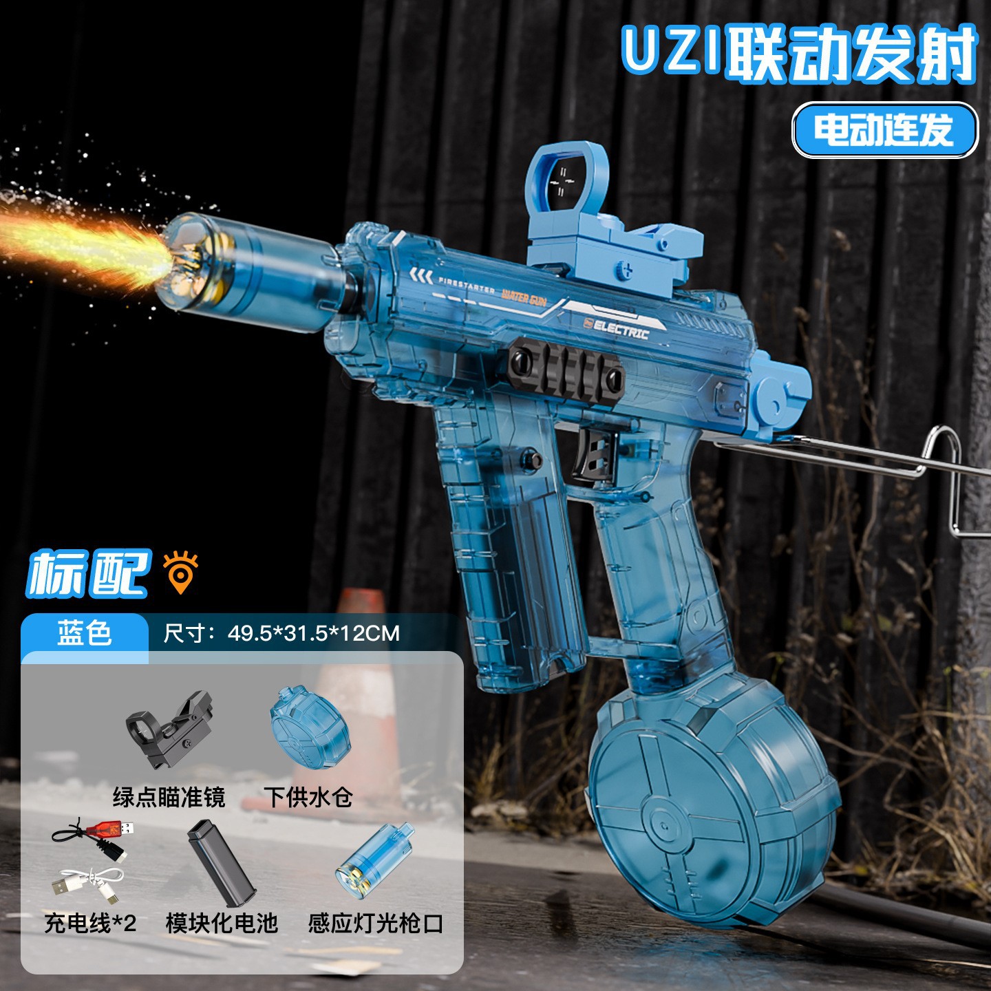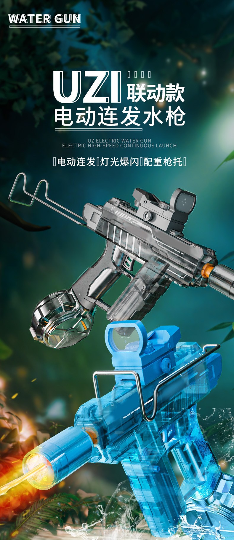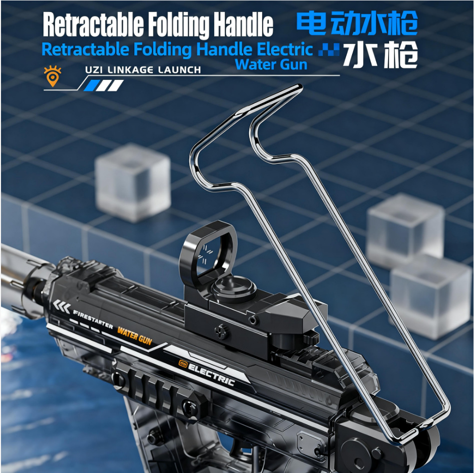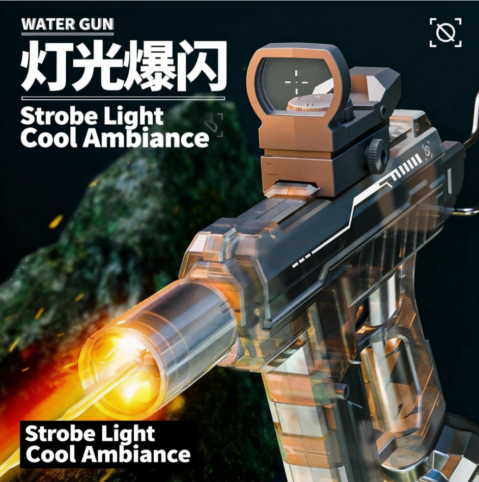 爆闪火光UZI电动水枪大容量联动回膛高压脉冲乌兹儿童全自动水枪