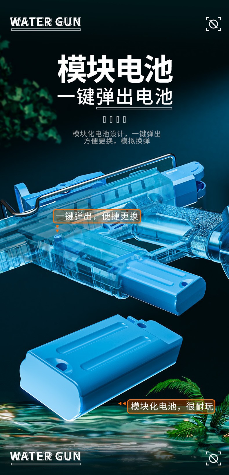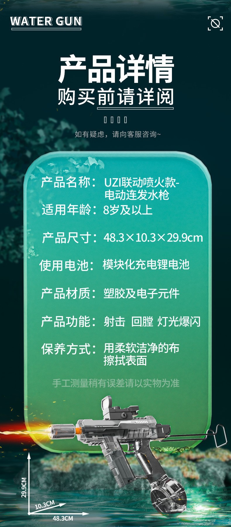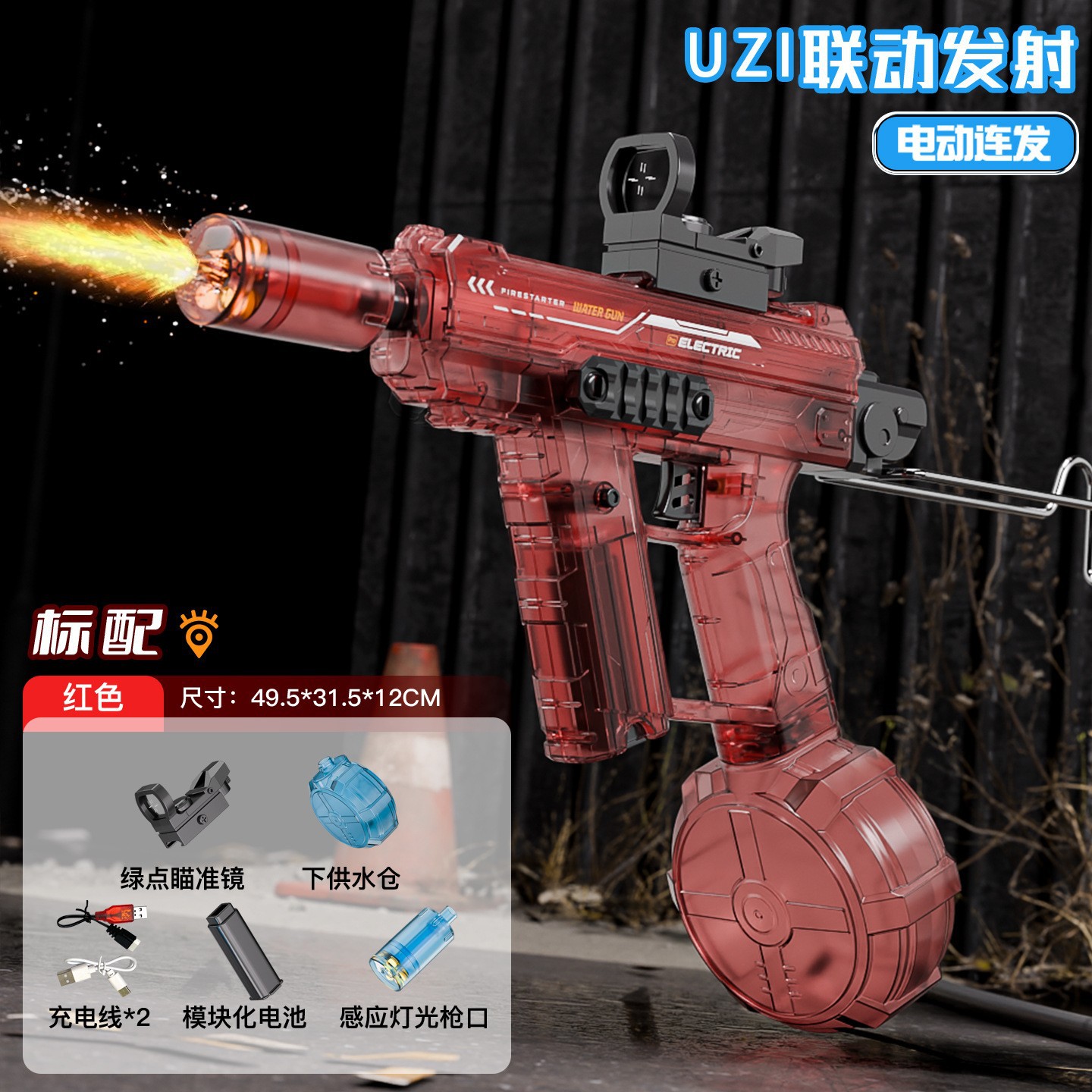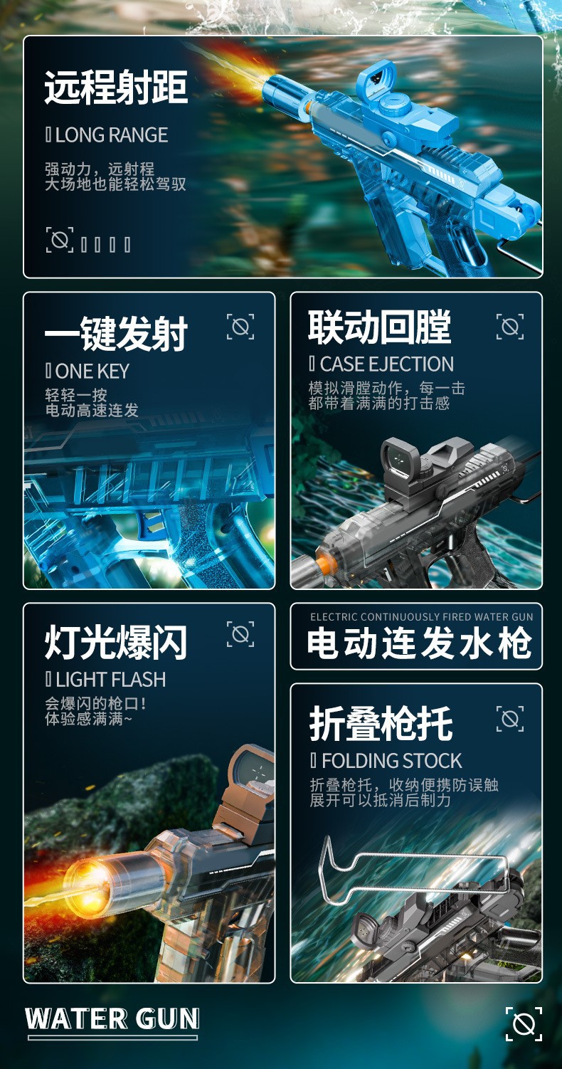 爆闪火光UZI电动水枪大容量联动回膛高压脉冲乌兹儿童全自动水枪